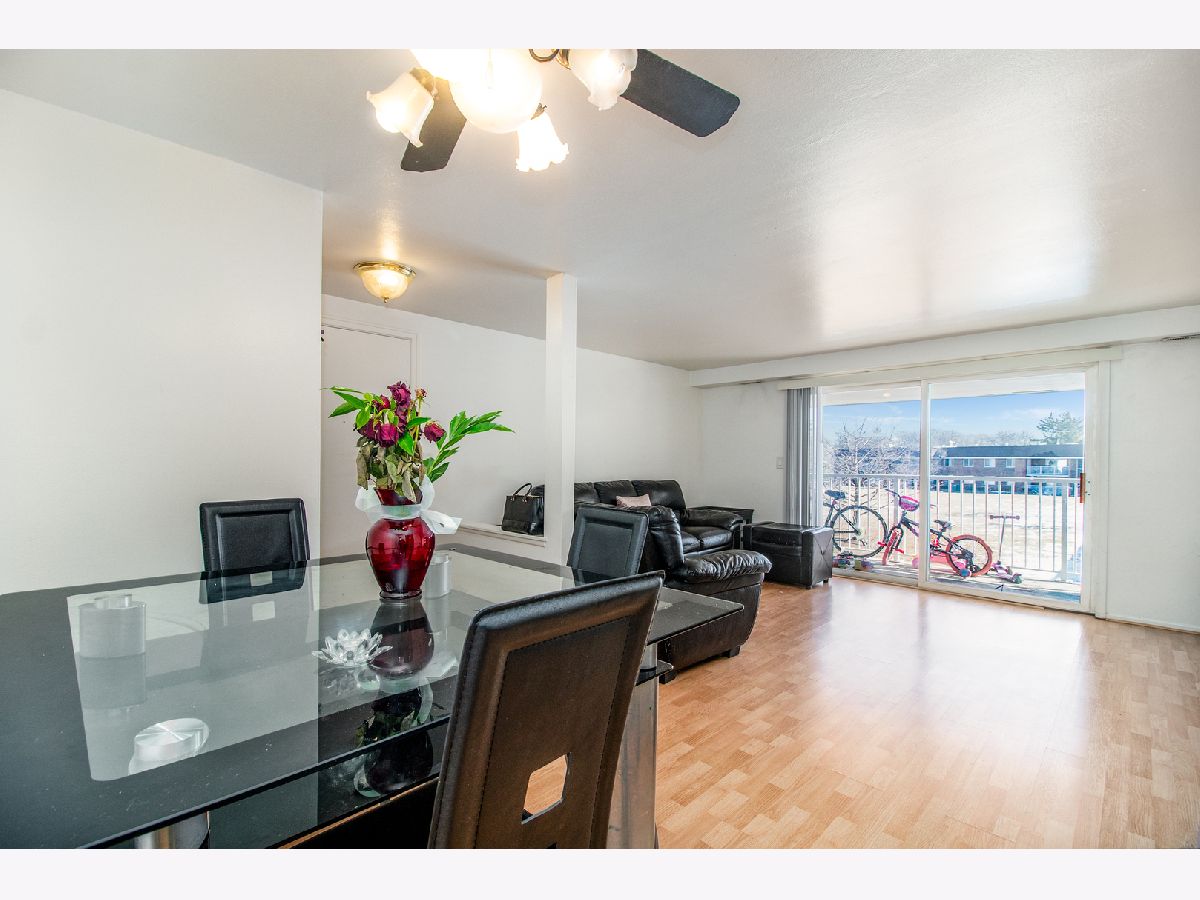 Why rent when you purchase for less than renting! Enjoy this beautiful condo with a large balcony and a beautiful view over looking the open green space! Newer laminate hardwood flooring in living room,dining room, halls and bedrooms. Nice new updated bathroom with ceramic tiles. This complex is close to everything, dining, convenience stores, grocery stores, banks, Starbucks, Culver's, gas station, car wash, and 3 parks nearby and just a little over 1 MILE to the Metra and less than 1 mile to Elgin-O'hare expresway!