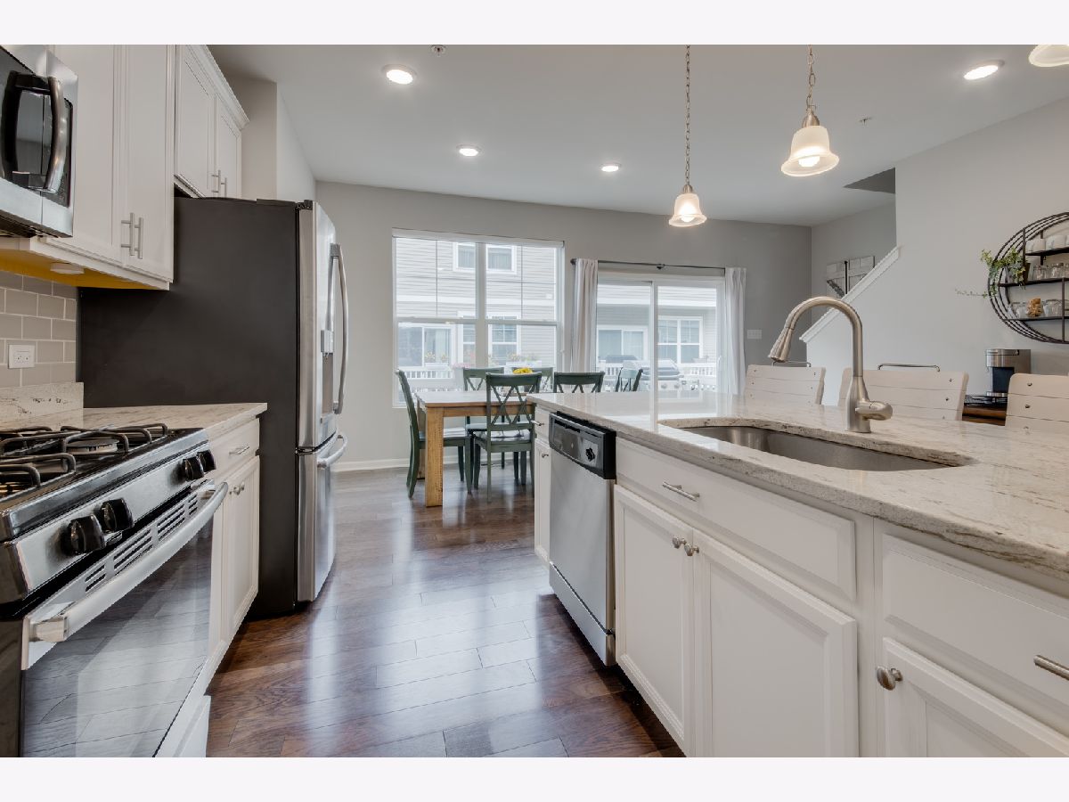 MUST SEE! Newer 2018 build. Step inside this pristine 2 bed/2.5 bath townhome in sought after Colfax Crossing subdivision. Captivating modern kitchen that includes white cabinetry, granite countertops, stainless steel appliances, breakfast bar, and space for dining room table. Spacious family room is complemented with natural light and see-through opening to kitchen creating an open concept feel. Updated main level powder room with custom woodwork and modern vanity. Gorgeous dark hardwood floors throughout main level. Large primary bedroom includes walk-in closet with en suite bathroom that enjoys double vanity and walk-in shower. Second bedroom also includes en suite bathroom with spacious walk-in closet. Enjoy a bonus room on the lower-level right off the garage that is perfect for home office or exercise area. Have a barbeque on the conveniently located balcony off kitchen. Second floor laundry. Large 2 car garage. Low monthly HOA. Excellent location close to transportation, restaurants, shopping, and schools. Move-in ready. Welcome home!