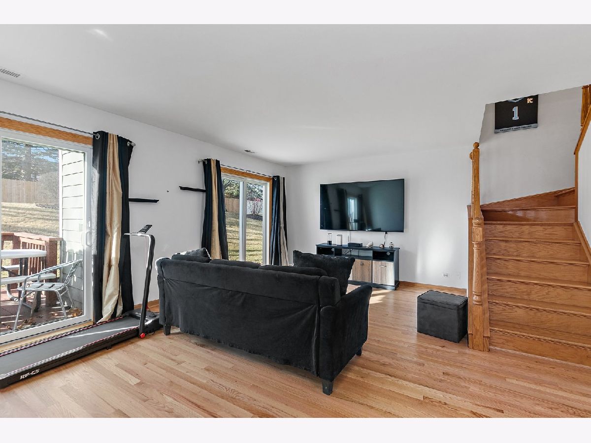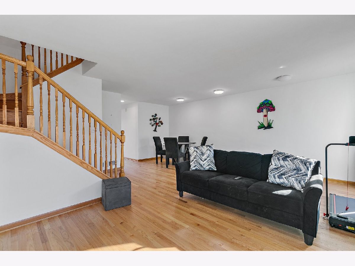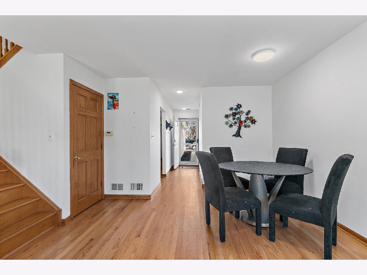Don't miss this open and bright 3 bedroom, 2.1 bath town home with loads of storage and refinished hardwood floors throughout in Palatine's Amber Ridge neighborhood. Foyer is spacious with access to half bath with ceramic floors and updated vanity. Large eat-in kitchen is roomy with wood cabinets, breakfast bar and access to garage, equipped with shelves for storage. Dining room is connected to open concept living room with two large sliding doors and open staircase to second floor. Sizable master bedroom boasts of 3 closets and attached master bath with updated vanity, ceramic floors and walk in shower. Down the hall find laundry, two additional bedrooms and full bath with ceramic floors and bathtub. Additional storage conveniently located under stairs. Outside enjoy both a patio and deck, separated by a large storage unit and backing up to the open, private common area. Updated water heater (2024). Close to schools, recreation, shopping, dining, transportation and more!