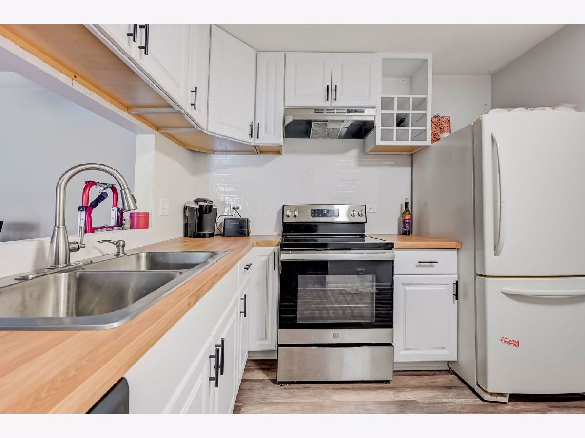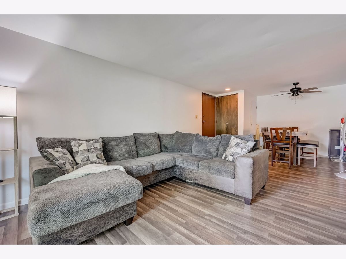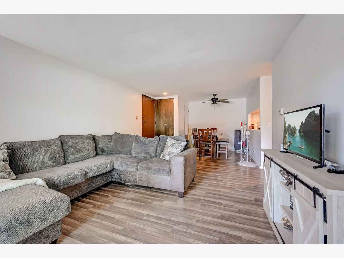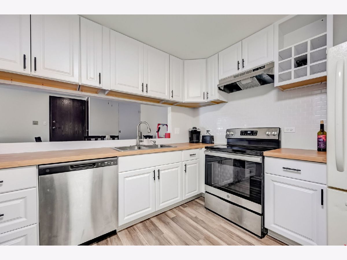 Welcome home to your newly remodeled 2BR, 1 Bathroom condo in the conveniently located Westbury community. The unit welcomes you into the living/dining room combo and offers continuous LVP flooring throughout the home. The kitchen boasts butcher block countertops, newer appliances (2022), backsplash, large pass-through window and plenty of white cabinets for ample storage. The home offers 2 generously sized BRs and a large shared updated bathroom. There is a full laundry in the unit and includes a storage locker. Enjoy the outdoors on your private patio, covered by the balcony above. Full remodel and appliances (2022/2023), Roof (2023), Water Heater (2019). So close to schools, shopping, paths/parks, entertainment, expressways, Metra and so much more!