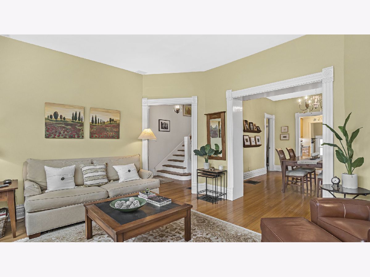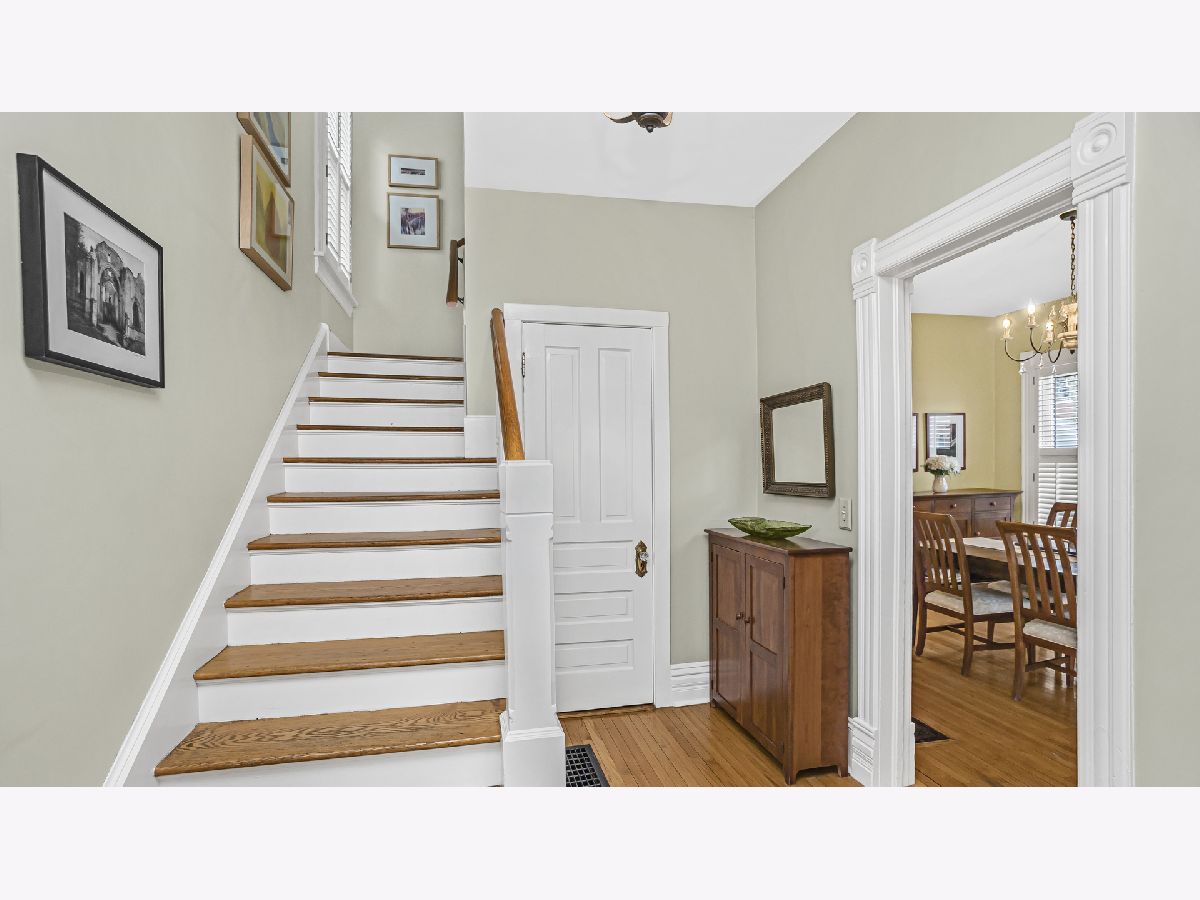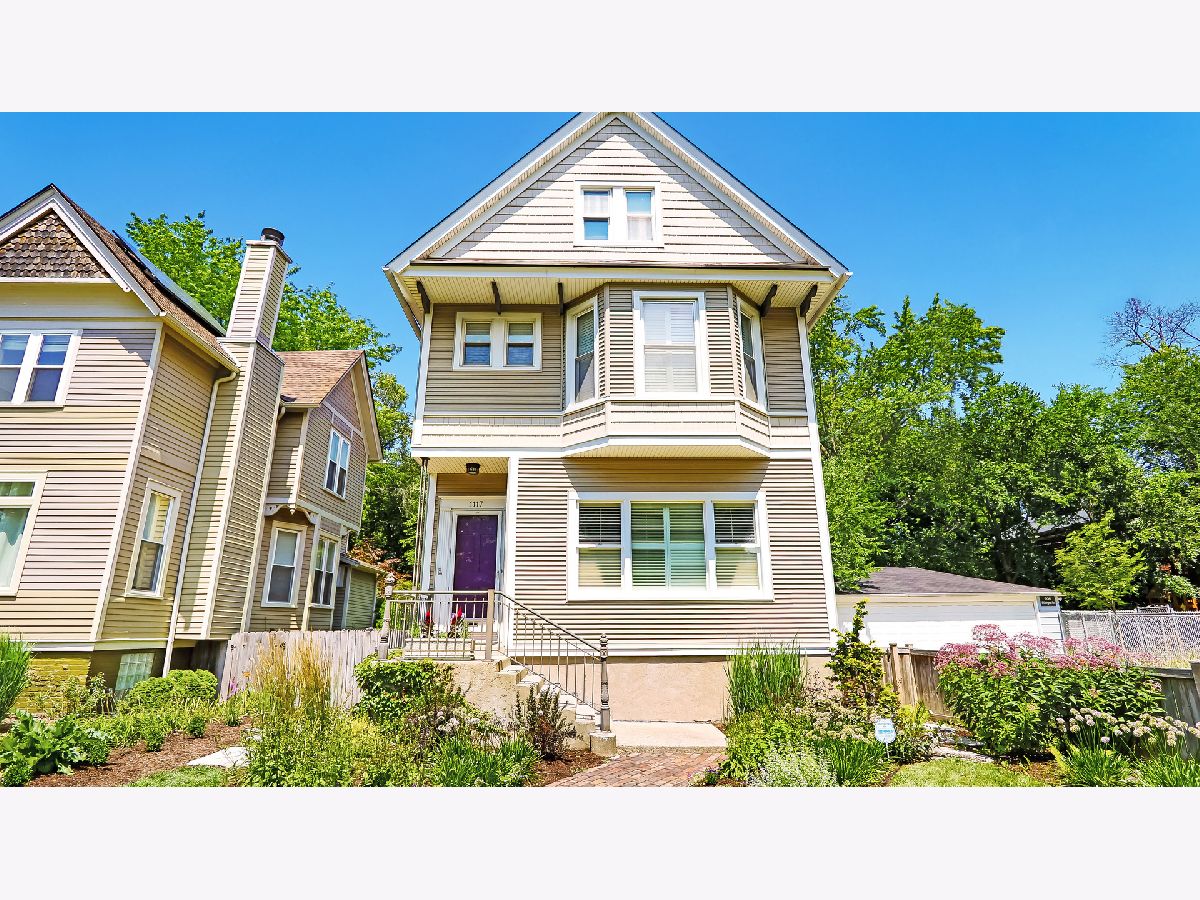 Classic Farmhouse updated for today's lifestyle. Wind your way to the front door and enjoy a piece of history on an antique Chicago brick walkway. The welcoming foyer showcases an original staircase and sizable coat closet. A charming living room with southern exposure is the perfect gathering space. It opens to a generous dining room with attractive built-in shelving and storage. A French door leads to a first floor office as well as a full bath. The kitchen, with updated electric and plumbing, is a cook's delight. Complete with solid surface counters, corner prep sink, tall cabinets, Viking range, newer Bosch dishwasher, LG refrigerator and plenty of outlets. Second floor has 3 gorgeous bedrooms. The gracious sized primary bedroom has a bonus dressing room and full primary bath. Two additional bedrooms with southern exposure have timeless detail and good closets. A hall bath features an original clawfoot tub. If this wasn't enough, the third floor has a vaulted ceiling and is a wonderful family room with additional office or guest space. The home has ample storage and new auxiliary HVAC (2021). The partially finished basement was rehabbed in 2010, with new floors, finished walls, and great lighting. It's a perfect spot for an office or playroom. Pocket doors open to the impressive laundry room with LG washer and dryer, great cabinetry and counter space and extra fridge/freezer. The basement also includes a pantry with a workout nook and unfinished space used for a workshop. Two newer electrical panels, hardwired built-in speakers, and custom window shutters throughout the house. New roof on house and garage (2020), Front yard professionally redone with trees, perennials, bulbs and flagstones (2021). Backyard fully fenced with a patio and landscaping. Two car garage and parking for 2 more cars. Walk to Main/Chicago area with great restaurants, coffee shops, Metra and CTA. Award winning Washington School. Close to the state-of -the-art Crown Center. Come see and fall in LOVE.