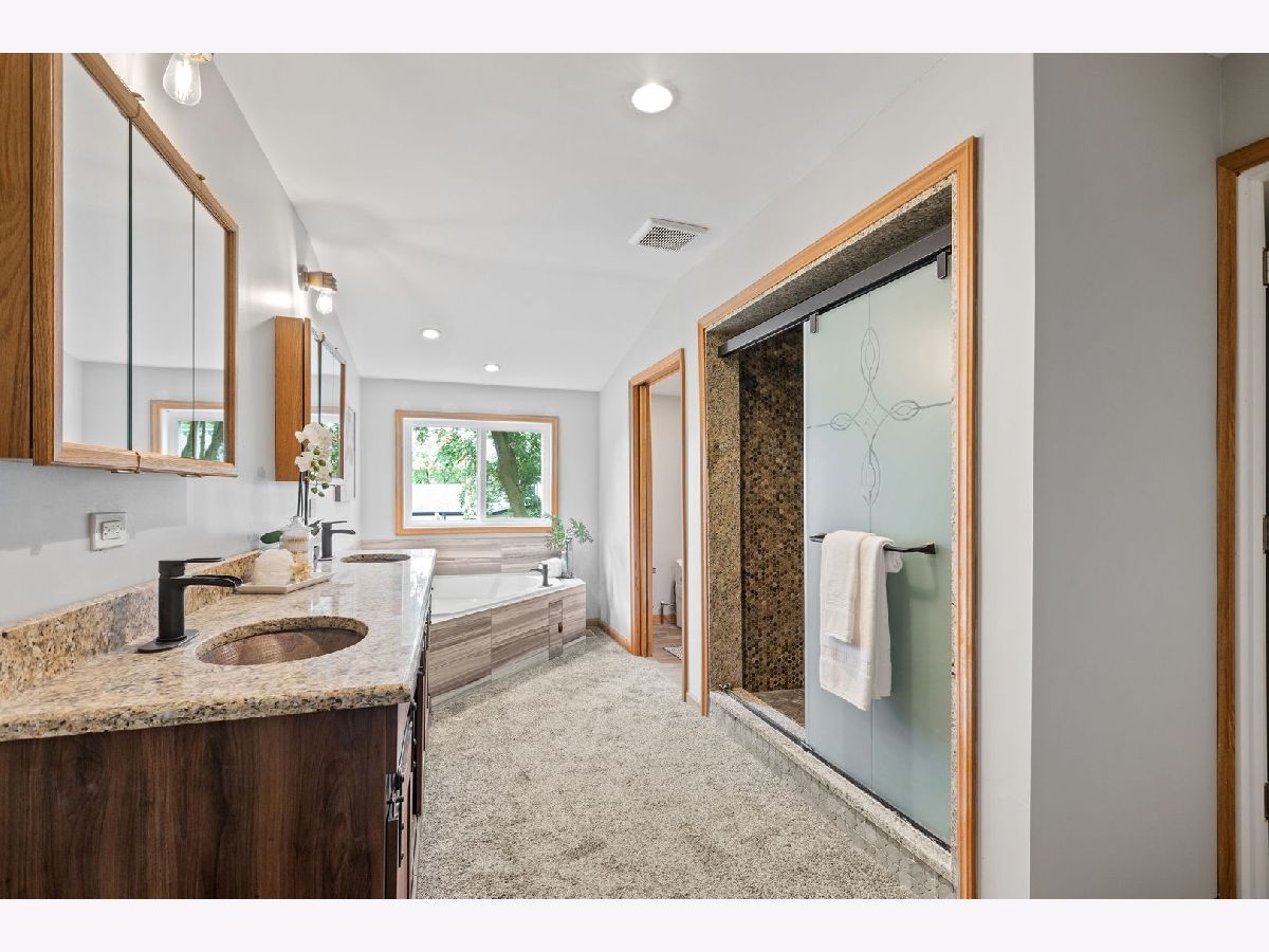 Great Fresh New Look!! Open floorplan perfect for entertaining with loads of space. Light, Bright & Customized 2 story with large yard & prime location. Living room with bright picture window, dramatic vaulted ceiling & designer staircase. Family room with views of backyard, open to eat in kitchen with white cabinets, all appliances included with sliders to deck & large private backyard. 1st floor bedroom/office with full bath adjacent. 2nd floor boasts Bonus luxury primary suite addition with huge walk in closet, custom built in organizers, private luxury bath w/separate tub & extra-large multi head shower, dual decorator sinks & cabinet, 2 additional good size bedrooms & open loft on 2nd floor share full hall bath w/ceramic tile floor & tub surround. 1st floor laundry rm, washer & dryer included. Freshly painted, upgraded 6 panel white doors & trim thruout, neutral decor, plush neutral carpet. Extra large 2 1/2 car garage with loads of space and storage shed in backyard. All appliances included with video doorbell & smart thermostat for extra energy efficiency. Top school district 96 elementary schools and dist 125 Stevenson High School! Don't miss!