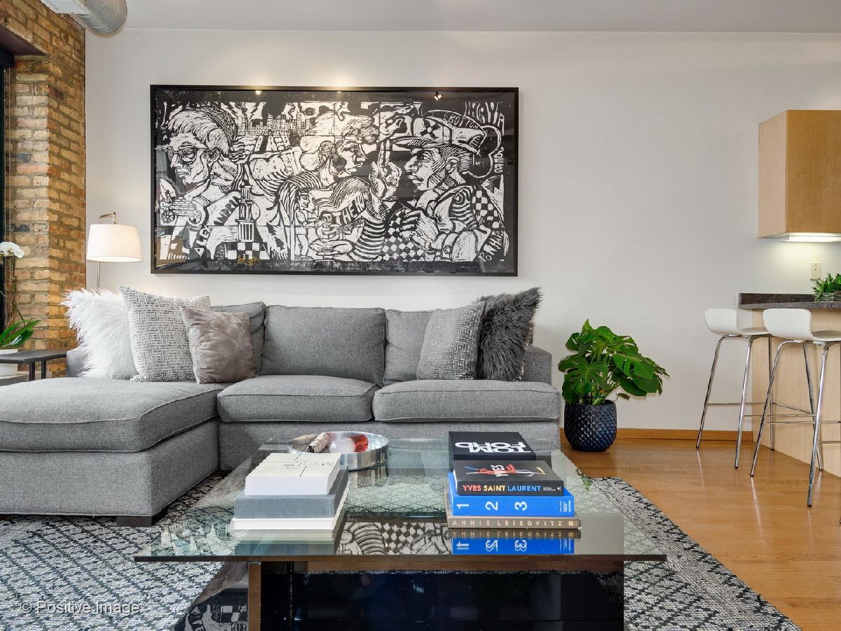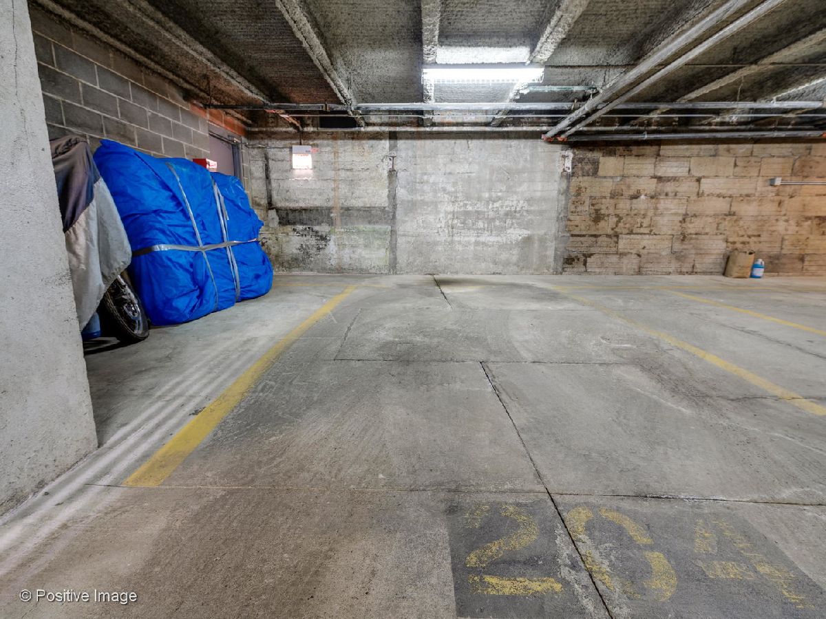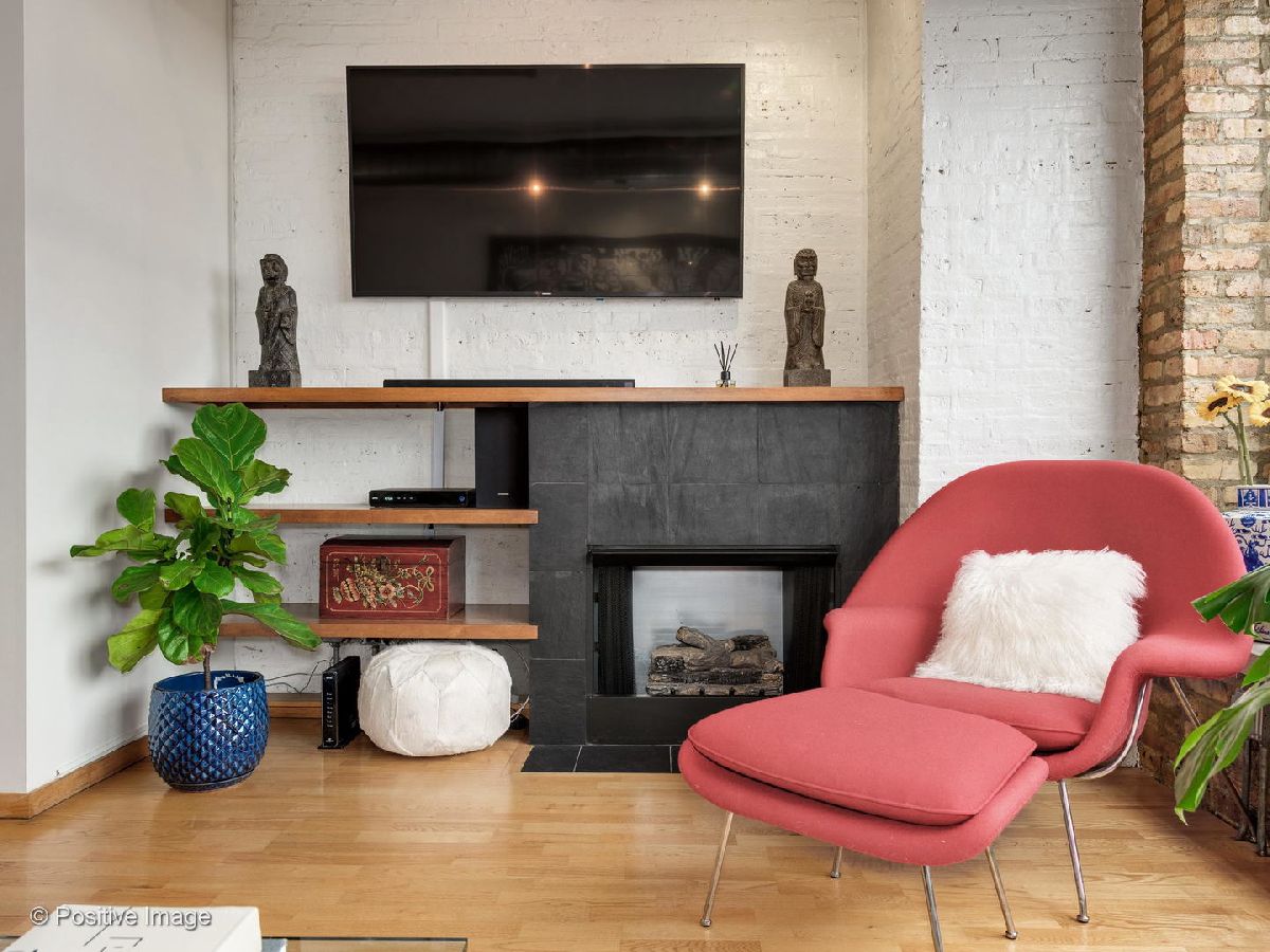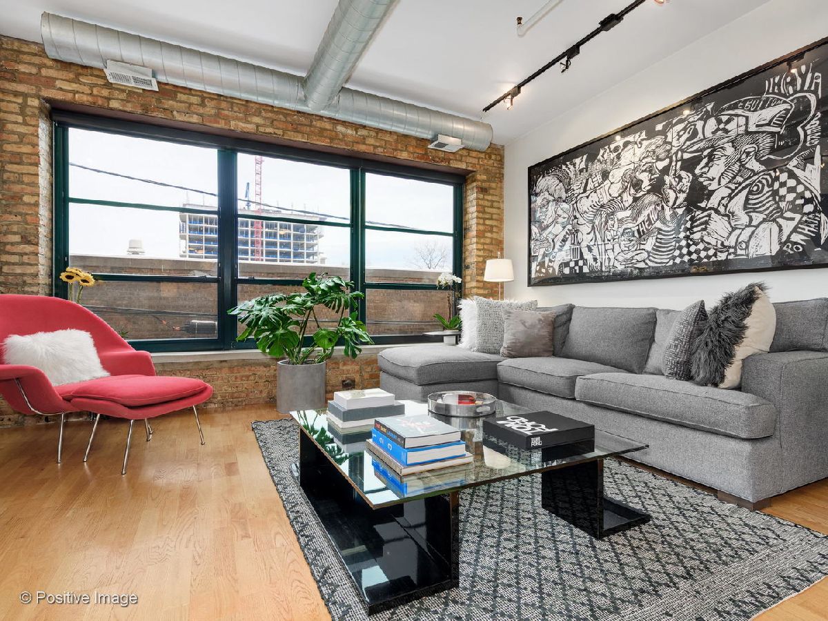 Situated within a stunning 17-unit boutique building in the heart of Fulton Market, this gorgeous 1 bed 1 bath residence is a secluded oasis away from the hustle and bustle of city living. With an open floor plan and sun-drenched interiors, this home features hardwood flooring and exposed brick and ductwork for a chic industrial feel. The open kitchen is a home chef's dream complete with granite countertops, maple cabinetry and stainless steel appliances. Designed with comfort in mind, the living space includes a gas fireplace with built-in shelving ideal for unwinding after a long day. With an expansive layout, the primary bedroom features a full wall of custom closet space from California Closets and a large custom built-in office station perfect for people working from home. Featuring natural stone and luxurious finishes, the bathroom includes a jetted soaking tub with a shower for the true spa experience. One large private storage locker included. Attached garage parking is an additional $25k. Building amenities include a common rooftop deck with grills and breathtaking skyline views. This location cannot be beat; walk to everything Fulton Market and the West Loop have to offer.