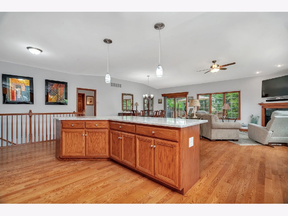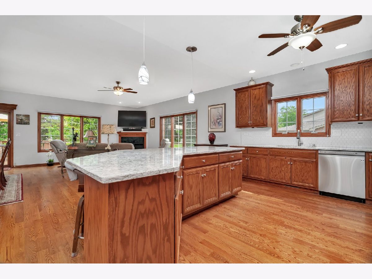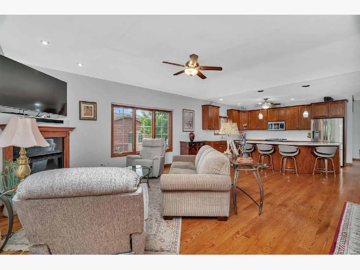MULTIPLE OFFERS RECEIVED Calling for HIGHEST AND BEST BY MONDAY 6/23/25 AT NOON. Beautifully maintained by the original owners, this spacious ranch-style townhouse offers 3 bedrooms, 3 full bathrooms, and a full finished basement complete with a second kitchen-perfect for a family member looking for private space. This meticulously cared-for, open-concept home is ideal for entertaining. The main level showcases dark hardwood floors and a generous kitchen with pull-out shelving, newer stainless steel appliances, a large island with seating, and stunning white quartz countertops-the true heart of the home. The kitchen flows effortlessly into the warm and inviting living room with an electric, no-maintenance fireplace and a dining area ideal for hosting larger gatherings. The main floor primary suite features vaulted ceilings and a private en-suite bath with dual sinks, a walk-in shower upgraded with sleek black hardware, and a relaxing soaking tub. A second bedroom, full bathroom, and laundry room with a newer pedestal washer and dryer (2024) are also conveniently located on the main floor. Step outside to a spacious, maintenance-free deck surrounded by mature greenery-perfect for summer BBQs or quiet mornings outdoors. The patio table, 4 chairs, and tan cantilever umbrella are all included! Recent updates include a new roof (2020), electric stove (2023), dishwasher and microwave (2023), pedestal washer and dryer (2024), and a new garage door opener system (2024). The HOA reseals the asphalt driveway every two years and is scheduled to do so this year. Conveniently located less than 2 miles from the Metra station and Clancy Bros Coffee Shop in downtown Mokena, this home offers space, style, and convenience all in one!