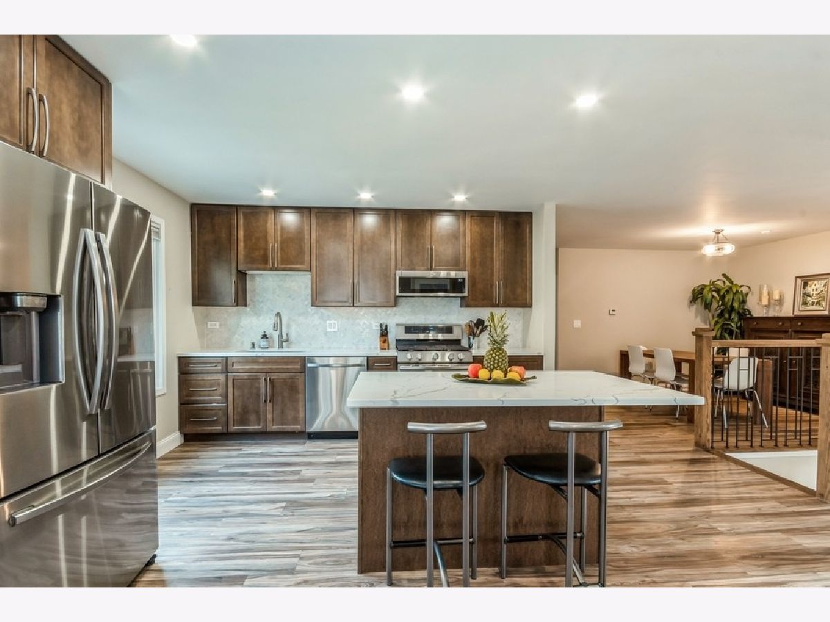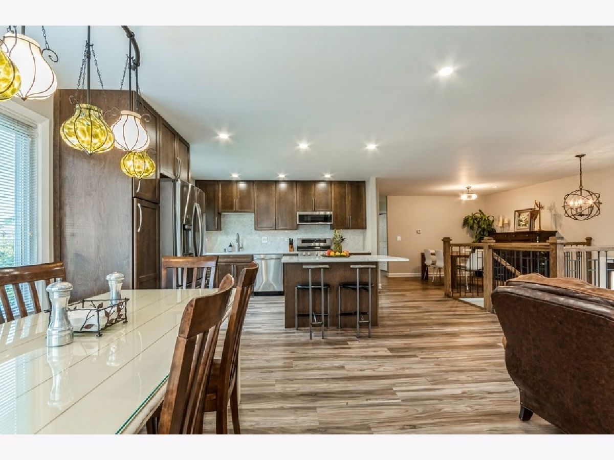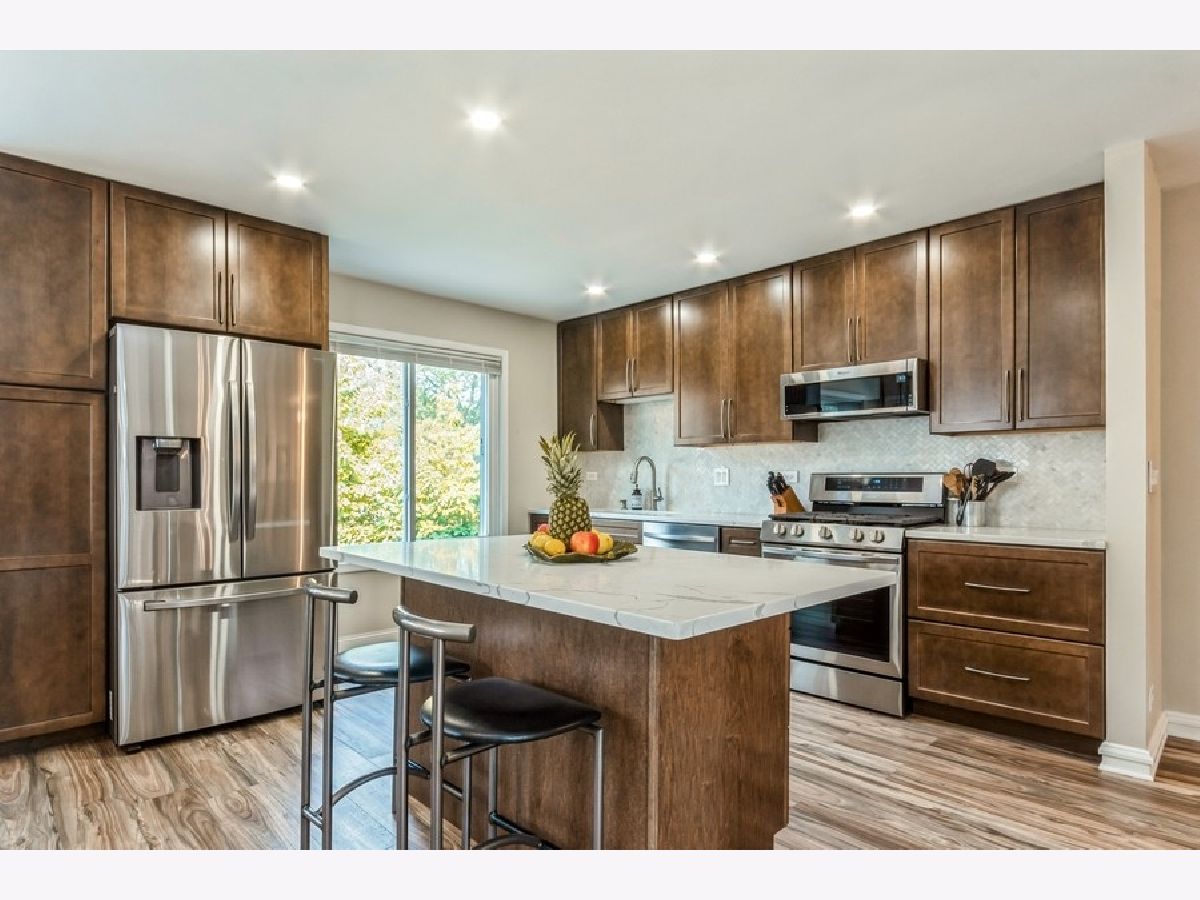 Recently renovated to perfection and situated on one of the best interior lots in all of Deerpath this Cypress model has undergone a complete transformation in the past 12 months! Newly poured concrete steps lead you to a beautiful, new, front door. Once inside you are greeted by an exquisitely redone staircase with wood and iron railings. The kitchen was reconfigured to open up the floor plan to take full advantage of the living space and then it was remodeled from top to bottom - quality 42 inch soft close cabinetry providing tons of storage to include two extra deep drawers ideal for pots and pans, gorgeous quartz counter tops, center island with breakfast bar seating, stainless steel appliance package, herringbone tile backsplash, under cabinet lighting, oversized stainless steel sink with disposal and several large windows between here and the spacious eating area that allow natural light to pour in and provide views of the backyard. New beautiful luxury vinyl plank flooring runs continuously throughout both levels of the home. You will also find an ample amount of new LED recessed lighting throughout the home. All 3 full bathrooms have been tastefully updated in the past year to meet the expectations of today's buyers. The primary bedroom suite complete with its remodeled bath has lots of closet space and great backyard views. The lower level family room has a new gas fireplace with a new chimney liner and recently tuckpointed chimney. It is ready for you to enjoy. Adjacent is a charming sun room that steps right out to the fully fenced backyard oasis with its paver brick patio and walkway, professional landscaping and cute storage shed. The lower level is rounded out by a very practical office space, a fourth bedroom, a third full bath and the laundry room. This floor plan offers a ton of flexibility! Other significant new items in the past year are the roof, the windows, the washer and dryer, the electrical panel and the water heater!