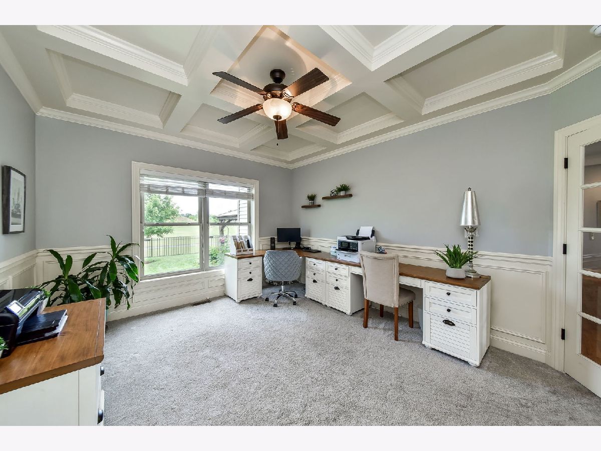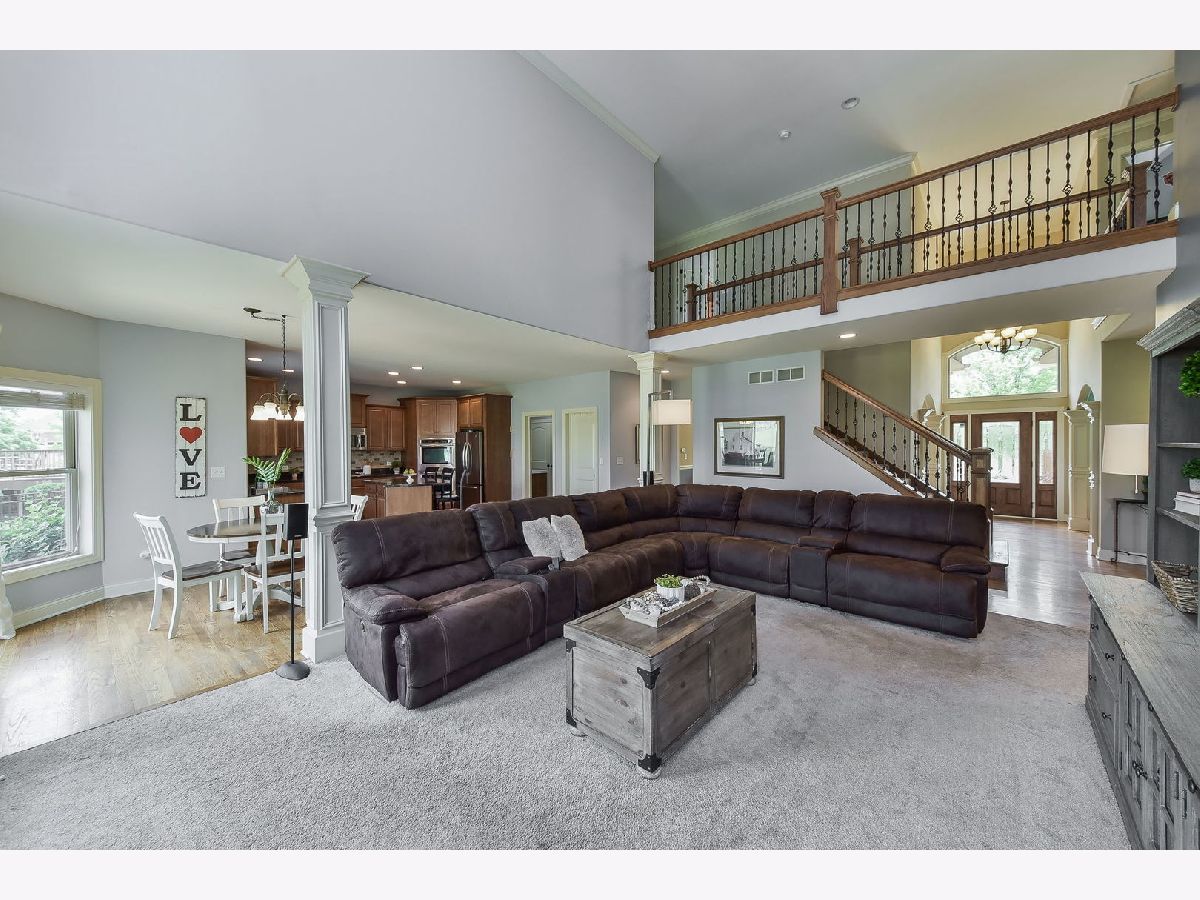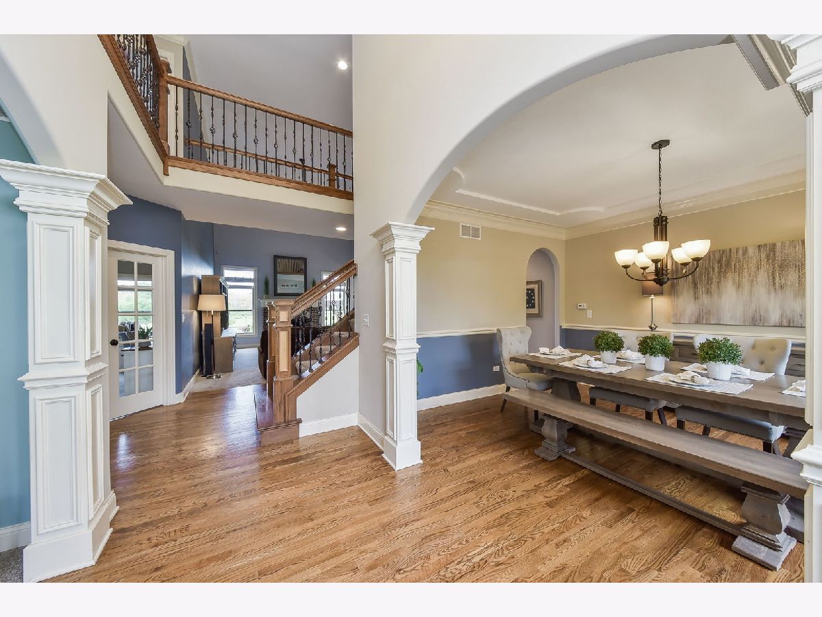 This is it... the one you have been waiting for! Backing to nature, this Deerpath Trails stunner is located on a premium lot & features a boxed beamed ceiling, wainscoting, crown molding, hardwood floors, vaulted ceilings, a skylight & so much more. A chef's dream kitchen boasting double ovens, cooktop, stainless steel appliances, walk-in pantry, island with seating & eating area with access to your impeccable backyard. Airy & bright family room with crown molding, brick surround fireplace, columns & views of your kitchen & backyard. French doors lead you into your executive office with a boxed beamed ceiling, wainscoting & a closet... could be a main floor bedroom. An arched entryway leads you into your living room with crown molding & your dining room with a chair rail, decorative ceiling & crown molding. A grand, two story foyer with chandelier greets you! Expansive master suite with a vaulted ceiling & room for a seating area. Luxurious master bath with double sinks, skylight, separate walk-in shower & whirlpool plus walk-in closet. Additional bedrooms (one with en suite bath), hall bath, linen closet & walkway overlooking your family room complete your second level. Unfinished basement with bath rough-in just waiting for your finishing touch. A picturesque backyard backing to nature that will not be built on and offers a stamped concrete patio, pergola, fire-pit & fenced backyard. Welcome home.