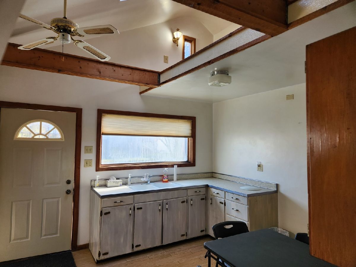 Unique and affordable 1 bedroom 1 bathroom 1.5 story home in Kingston with one car attached garage and 16' x 26' detached garage. The detached garage is partially insulated has electric. The attached garage has electric and a custom metal fabricated door. This home features an eat in kitchen with partially vaulted ceilings, skylight, and loft area. The kitchen leads to the living room with hardwood floors with a custom access point to the partial basement eliminating the need to go outdoors for entry during inclement weather. The living room is open to the first floor master bedroom which includes a closet and innovative "open bathroom" design complete with shower curtain door (no shower, just curtain) with jetted tub. Benefits of the open bathroom design include being able to relax in the tub and enjoy your favorite show on your bedroom or living room tv and with regular bathing the steam will help humidify the home during the dry winter months reducing the need for a humidifier. This open bathroom concept is sure to be the next big thing in home design, however if this forward thinking concept is not to your taste, an additional shower curtain door could be easily installed between the first floor master bedroom and living room. If you prefer a traditional design a regular mundane door and wall setup could be placed there as well. From the living room there is access to a whimsical spiral staircase that leads to a large 13' x 17' room on the second level. The electric has been updated with wiring in conduit and most of the windows have been replaced with newer wood windows. There is a good size yard with mature fruit trees. This home was truly customized to the previous Owners wants and needs, schedule a showing to come see how you can put your own spin on this property and make it your own. Property is being sold as is.