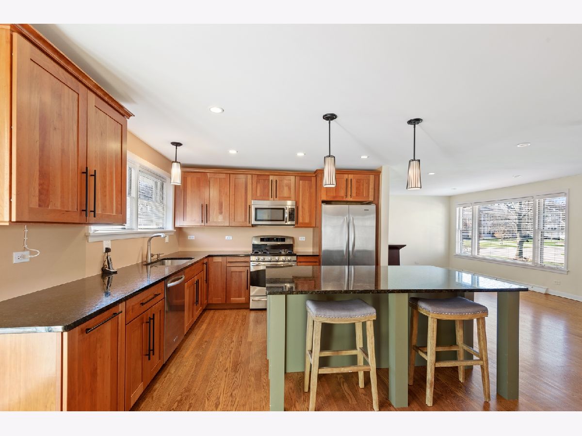 Awesome Value! Do not miss this wonderful 3 bedroom, 2.1 bath brick ranch home on an expansive corner lot! Renovated and expanded in 2012 by current owner includes the master suite, open living area floor-plan, finished lower level with new staircase. You will love the light filled living room and dining area overlooking the newer kitchen. Special features featuring hardwood floors, beautiful cabinetry, large granite island seats 4 , stainless steel appliances with sliding glass doors all lead to a deck that is perfect for outdoor entertaining! Enjoy the newer spacious primary retreat with private primary bathroom and a huge walk in closet with sliding doors to rear deck. The first level also offers 2 additional private bedrooms with ample closet space, a full family bath and powder room. On the lower level you will find an amazing family room, cedar closet, laundry room with chutes and tons of storage with additional opportunity to refinish. Desirable 2 car attached garage with additional East yard. An excellent location near transportation, Edens' Plaza shopping, restaurants, Loyola and New Trier HS and more make this a very special opportunity!
