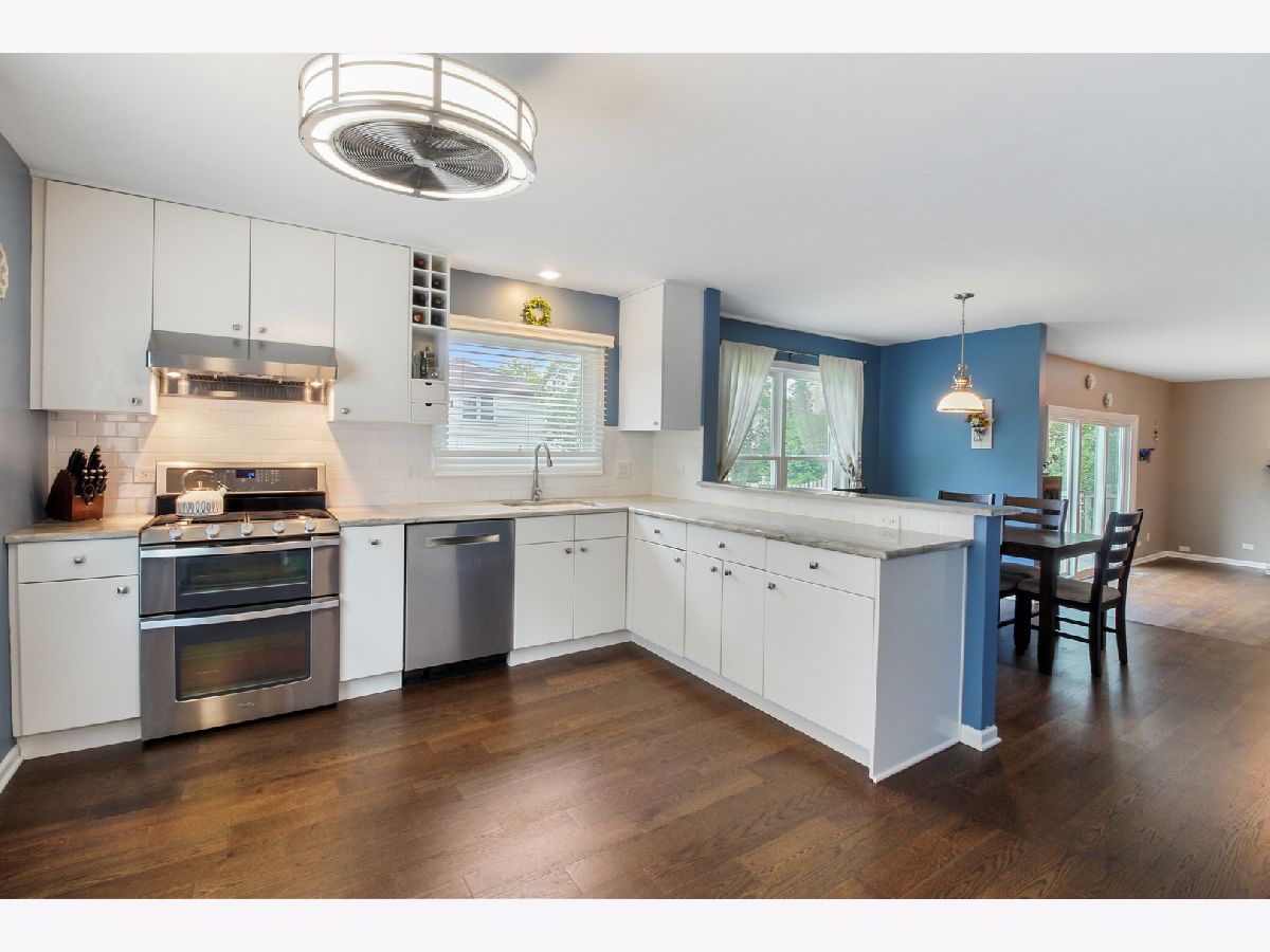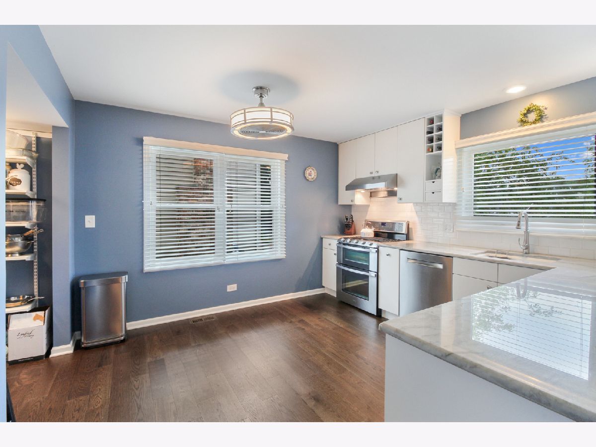 Welcome to this charming and modern 2 story home in the heart of Arlington Heights! Once you step inside, an outstanding floor plan with 3 levels of living space awaits you! White trim, neutral tones, and updates galore carry you throughout. The sun-filled living room with vaulted ceilings and an abundance of natural light opens up to the kitchen, making for an easy entertainment access! Enjoy prepping and cooking in the updated kitchen with an abundance of white cabinetry, subway tile backsplash with accenting quartz countertops, stainless steel appliances, pantry, breakfast bar, and dining area. Continue to the cozy family room that features a beautiful brick fireplace and a new sliding glass door that leads you to the backyard. Ascend up the stairs and find the spacious master bedroom complete with vaulted ceilings, 2 closets, built-in bookcase and private bathroom. 2 additional generously sized bedrooms and full bathroom complete this level. Descend to the basement and find a large family room, bonus den that is currently staged as a 4th bedroom, full bathroom and laundry room with brand new washer and dryer (2021). 2 car attached garage allows for additional storage. The space continues outside in the expansive fenced-in backyard with a large patio area with plenty of room to entertain and enjoy the summer months on! Many updates include brand new furnace A/C 2021, new windows in 2020, new fascia and gutters, new carpet in basement 2018. Located on a quiet tree lined street, this home is right across the street from walking trails and golf course! Award winning school districts. Truly move-in ready!