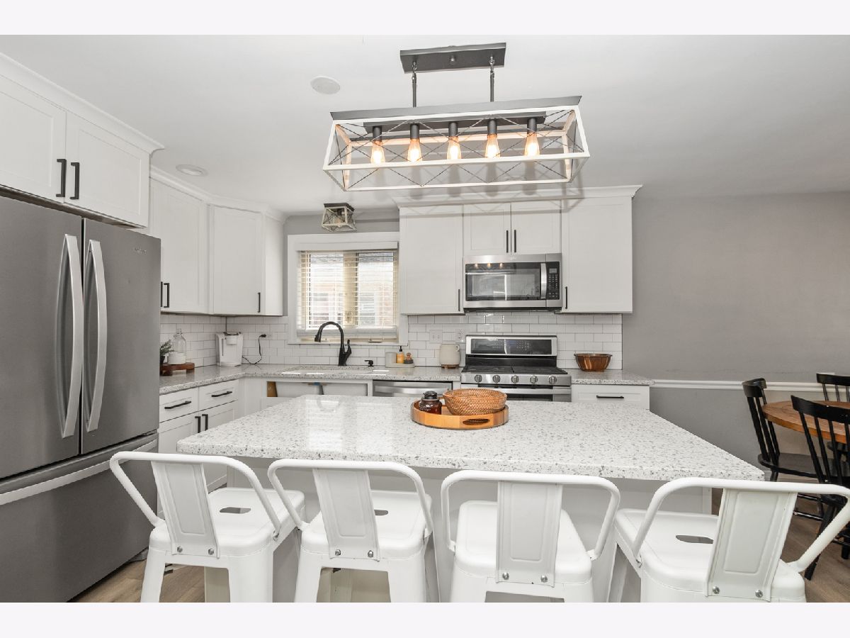 Beautifully Updated Raised Ranch in Highly Sought-After Mt. Greenwood! Move right into this charming, turnkey home featuring a spacious living room with gleaming hardwood floors, an electric fireplace, and abundant natural light. The updated (2021) eat-in kitchen showcases white cabinetry, a subway tile backsplash, stainless steel appliances, quartz countertops, and matching wood laminate floors. The main level offers three generous bedrooms, each with ample closet space and hardwood flooring throughout. The expansive basement spans the full footprint of the home, offering endless possibilities-create a family room, home office, gym, guest suite, or all of the above! Updates include a new furnace and central air (2021). Perfect for city workers-this beautifully maintained Mt. Greenwood home is ready for you to move right in!