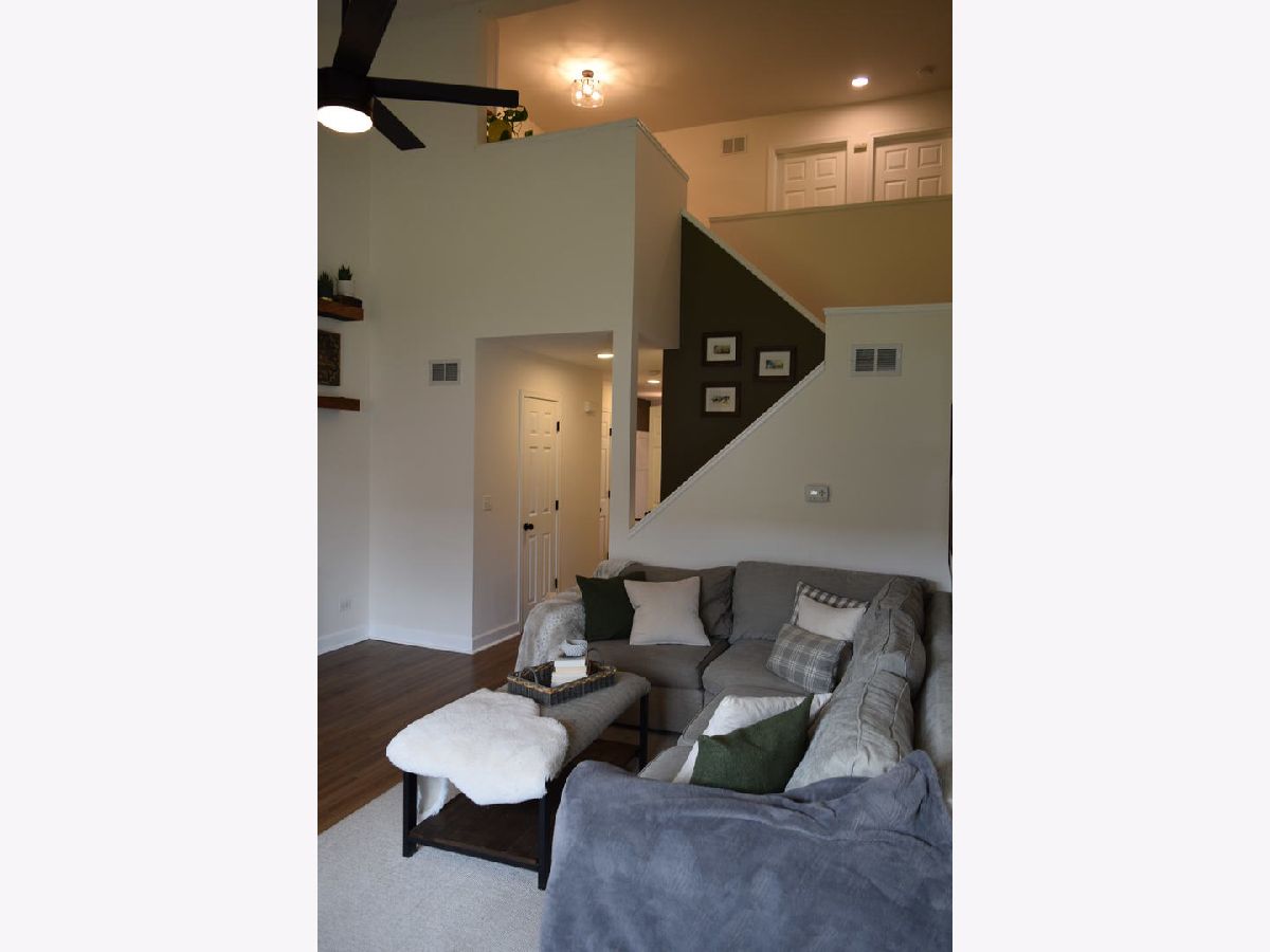 WECOME HOME! LOCATED NEAR DOWNTOWN HUNTLEY, LIBRARY AND PARKS. ENJOY WALKING THROUGH THIS QUIET NEIGHBOORHOOD BENEATH THE TREES. THIS TOWNHOME IS MOVE IN READY! FRESHLY PAINTED, NEW LVP FLOORING THROUGHOUT,OAK STAIRS,BOARD AND BATTEN WALLS,LOFT, UPDATED LIGHT FIXTURES, UPDATED BATHROOMS,VAULTED CEILING,QUARTZ COUNTERTOPS,STAINLESS STEEL APPLIANCES, NEW DISPOSAL, NEW KITCHEN FAUCET,DEEP SINK, FINISHED BASEMENT WITH HALF BATHROOM, BEAUTIFUL GAS FIREPLACE,4 YEAR OLD WINDOWS, SLIDING GLASS DOOR, WASHER ,DRYER, AND PLENTY OF STORAGE. GARAGE IS DEEP AND TALL WITH SHELVING INSTALLED.ROOF REPLACED IN FALL 2016, EJECTOR PUMP 3 YEARS OLD.GET READY TO FEEL HOME!