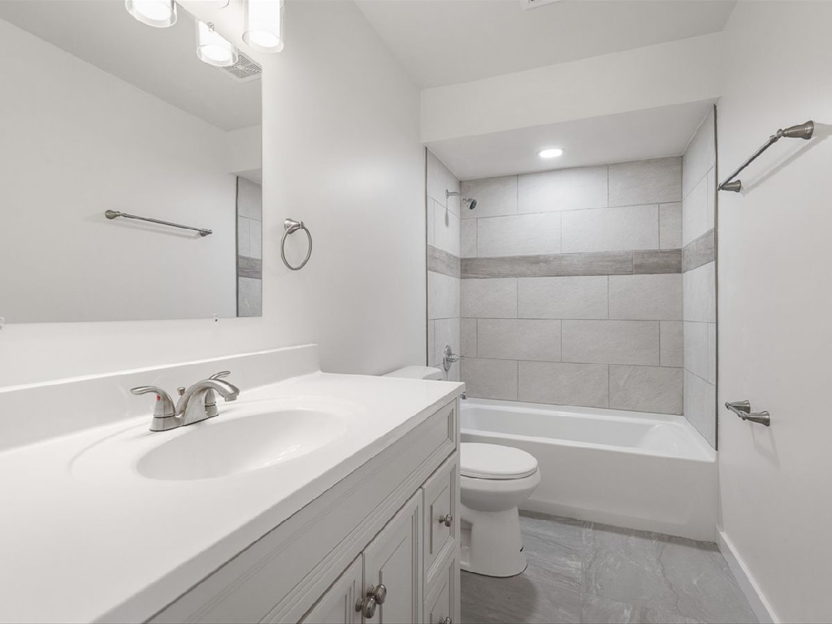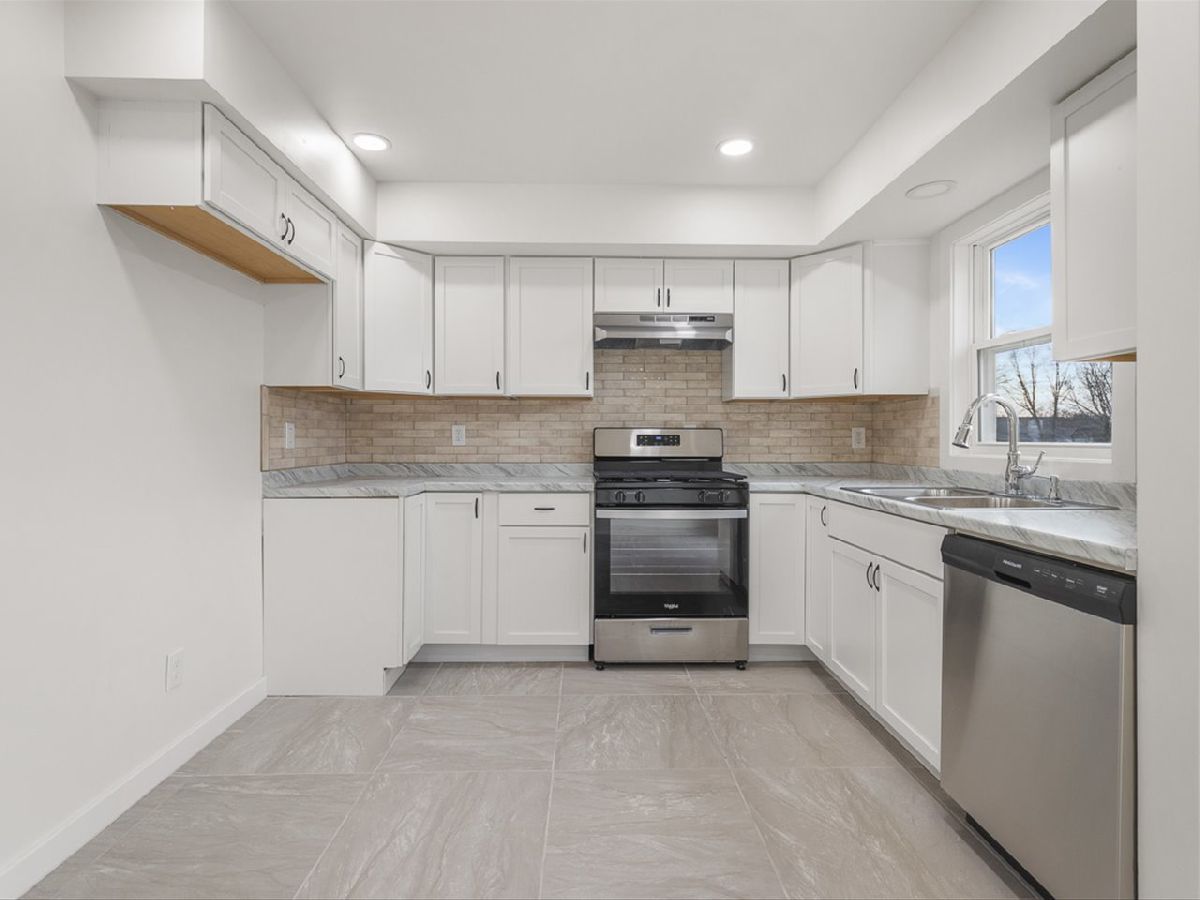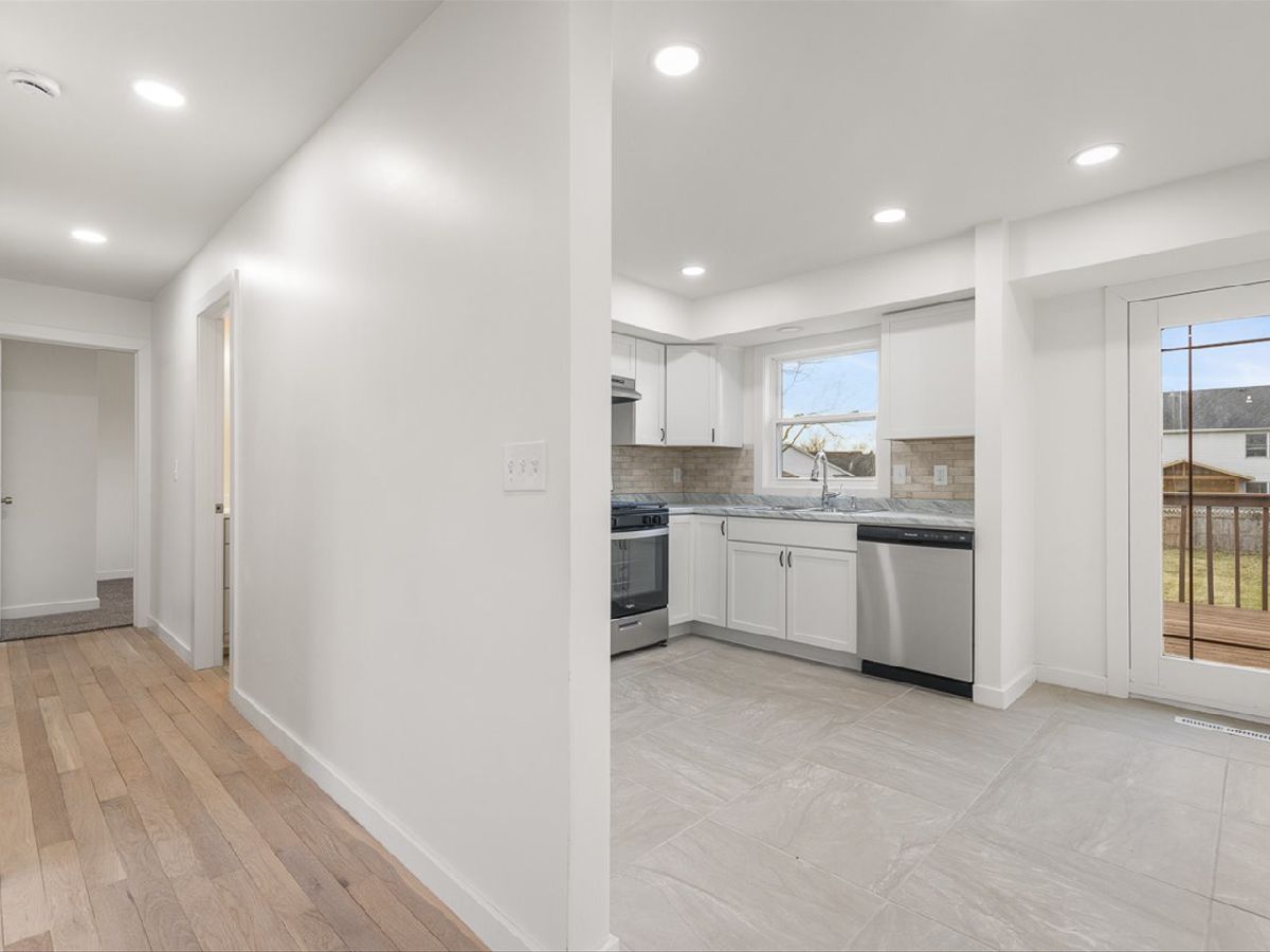 Remodeled down to the studs - completely new inside! Light and bright open concept 3 bedroom 2 bath home with large eat-in kitchen, formal living room, and family room with fireplace. The two-story foyer leads to a main level with a large eat-in kitchen with stone tile, white cabinets, tile backsplash and new appliances. The formal living room is has wood flooring and leads to two bedrooms with new carpet and updated full bath. The lower level has an additional bedroom, connected to updated full bath. Massive family room with hardwood floors and wood burning fireplace for cozy winter nights. Large deck overlooks fenced backyard. White woodwork, trim and recessed lights. throughout. New central air, water heater, plumbing, electric, drywall, insulation, new windows, new doors.
