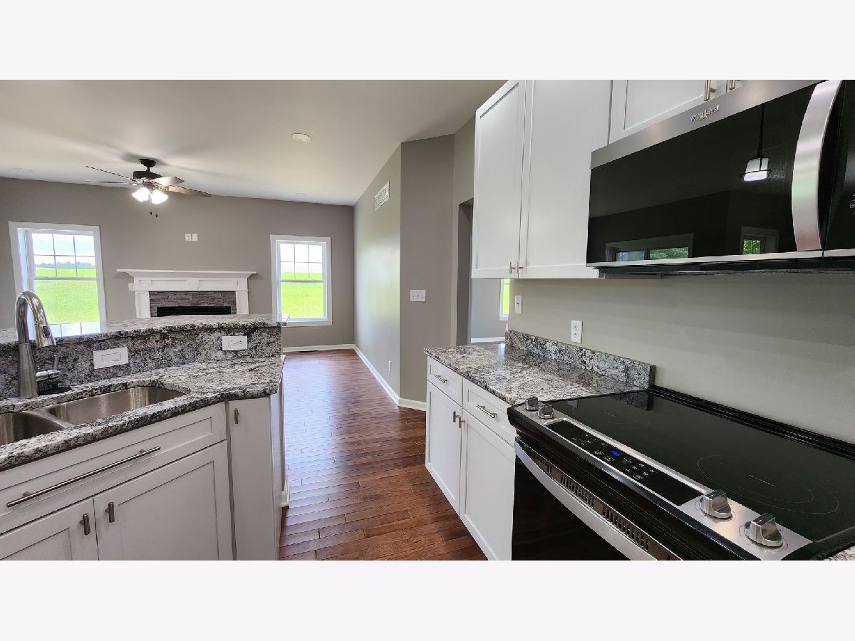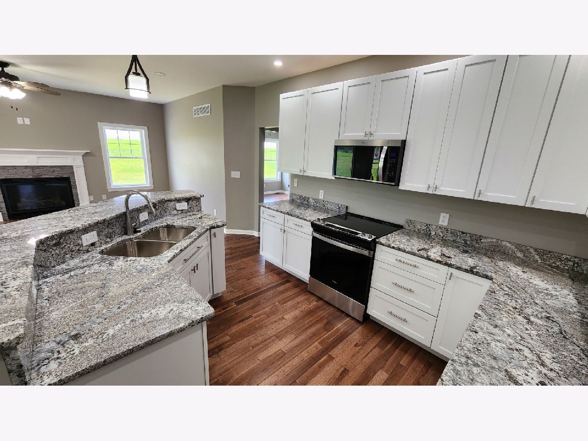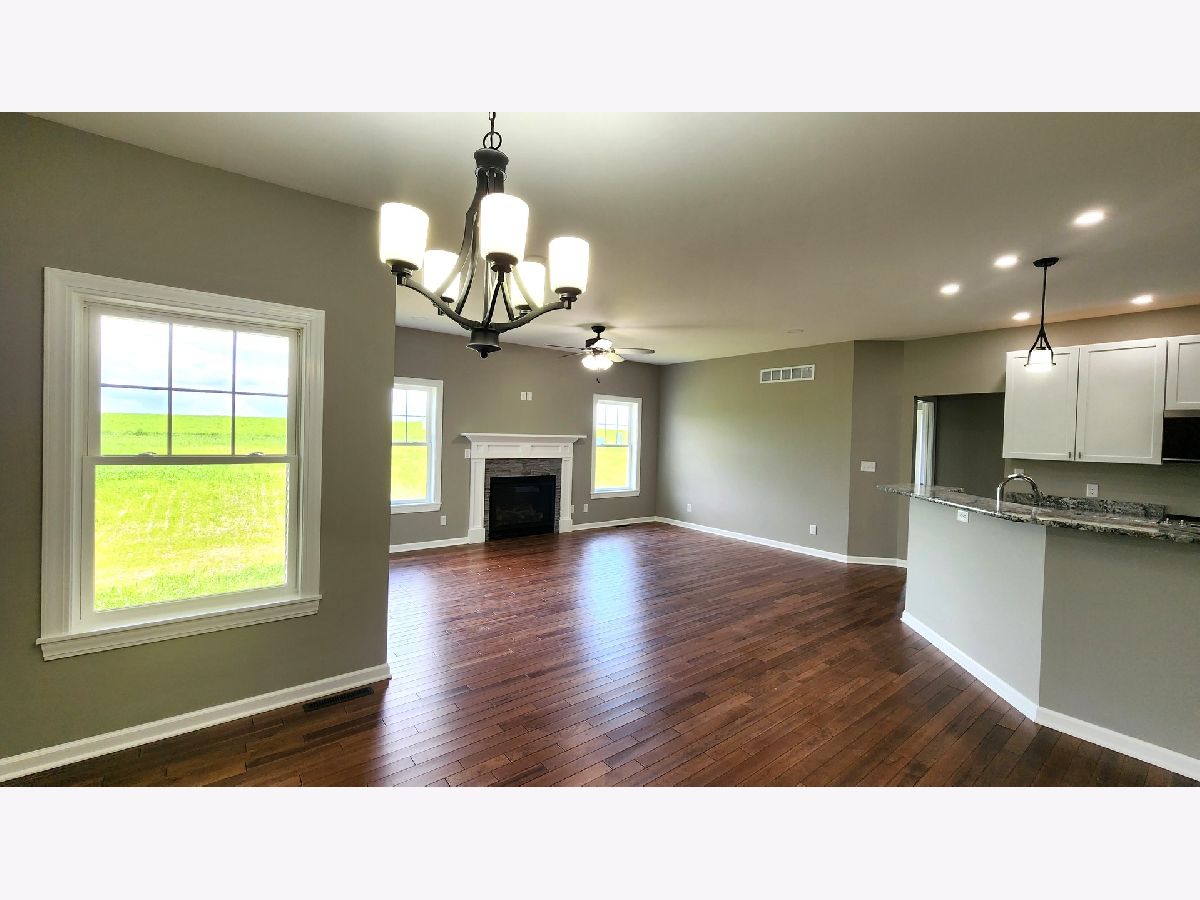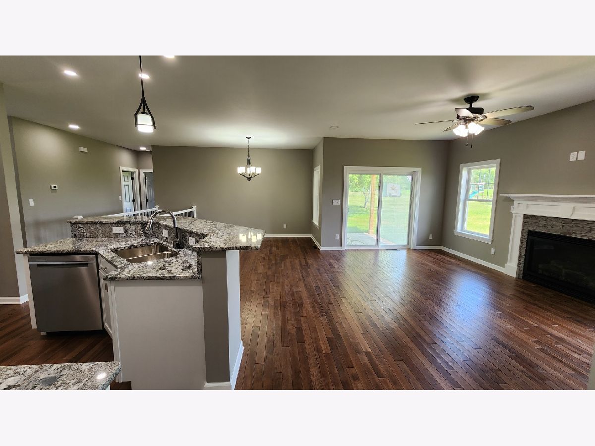 Brand new construction - NO waiting, ready to move in now ! Large lot. Small town. Sought after school district. Views for miles. Many builder upgrades. Stone & vinyl exterior , ranch style 3 bedroom open floor plan. Large covered patio . 9' ceilings. 6 " exterior walls. Solid core doors . Wood trim. Hickory hardwood floors and stairs. Granite kitchen c-tops and vanities. Soft close kitchen drawers. Master has large bath w / walk in closet, tiled shower , 4' vanity . The other two bedrooms and full bath are perfectly layed out for office, family or guests offering both tub and shower, vanity, stool. There is another 5' x 6' walk in closet. All closets have adjustable wire closets organizers . Main floor laundry offers both gas or electric dryer hookup. Gas fireplace. Adjustable blinds in glass on patio sliding door. Garage is a spacious 3 car with a door going into the home and one to the yard. The basement is a weekend away from 640 sqr ft more of finished space. There is a 32' x 20' unobstructed area with a large escape window and a stubbed in bathroom just screaming to have a job. If that's not enough, there is another 400 sqr ft available. The area under the stairs is already a finished storage space and the duct work in the basement all have dampers . There is both pex and copper, AO Smith hot water heater, water softener, Goodman gas furnace and AC , April Aire 600 with exterior sensors. This property is on the edge of the town of German Valley. There is a sidewalk and its walking distance to the park and town. Why wait to find and buy a lot, deal with the cost for a new home and wait all that time for it to be built when you can be living in this one by August !