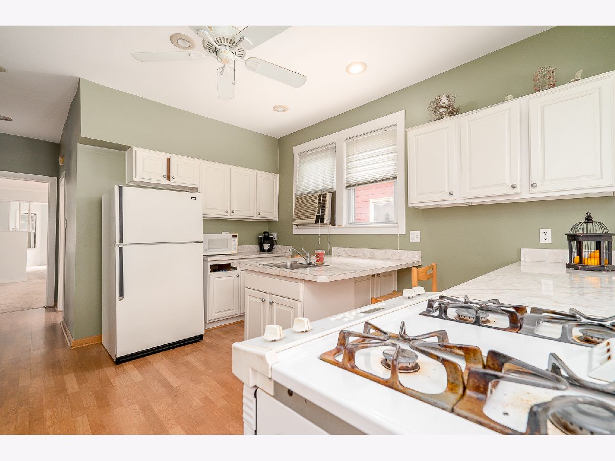 Conveniently located near the conservatory, Blue line, Rehm Park and pool, and Southtown Oak Park shops and restaurants. Great living space with good income potential for an investor or occupying owner. Welcoming front porch leads to a two-unit conversion featuring a finished basement with exterior access. Home is equipped to be separate units or large single family home. Two enclosed staircases on each end of the property. Tons of sunlight and open kitchen with enclosed rear porch and staircase. Updated electric throughout, Harwood floors under carpet in living & dining room most of second floor. New Roof, Electric has been updated throughout. Newer 2.5 car detached garage. A lot of space and many options. Sold As Is