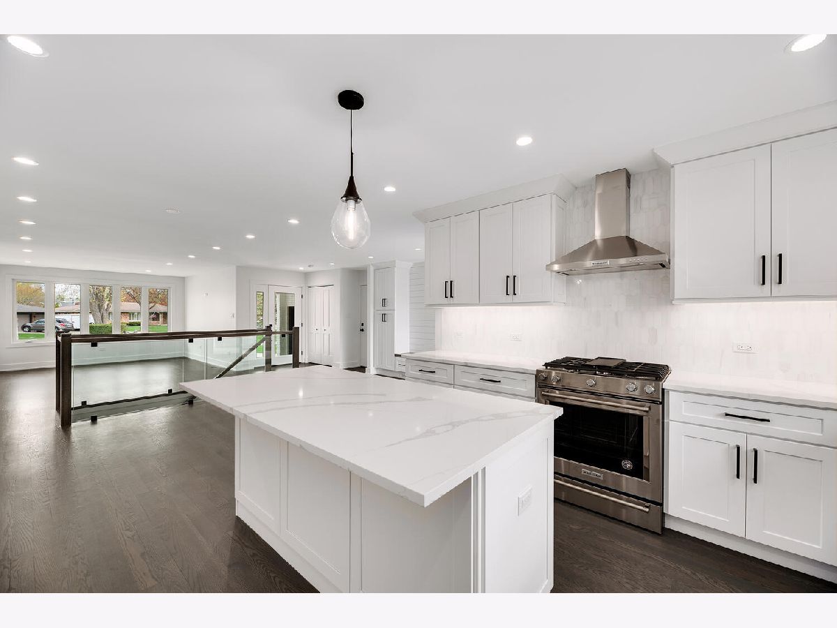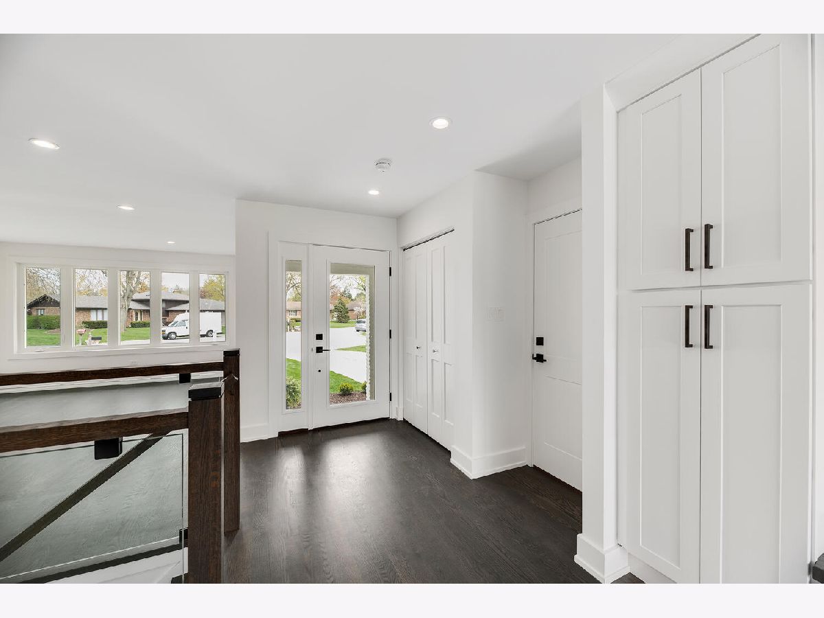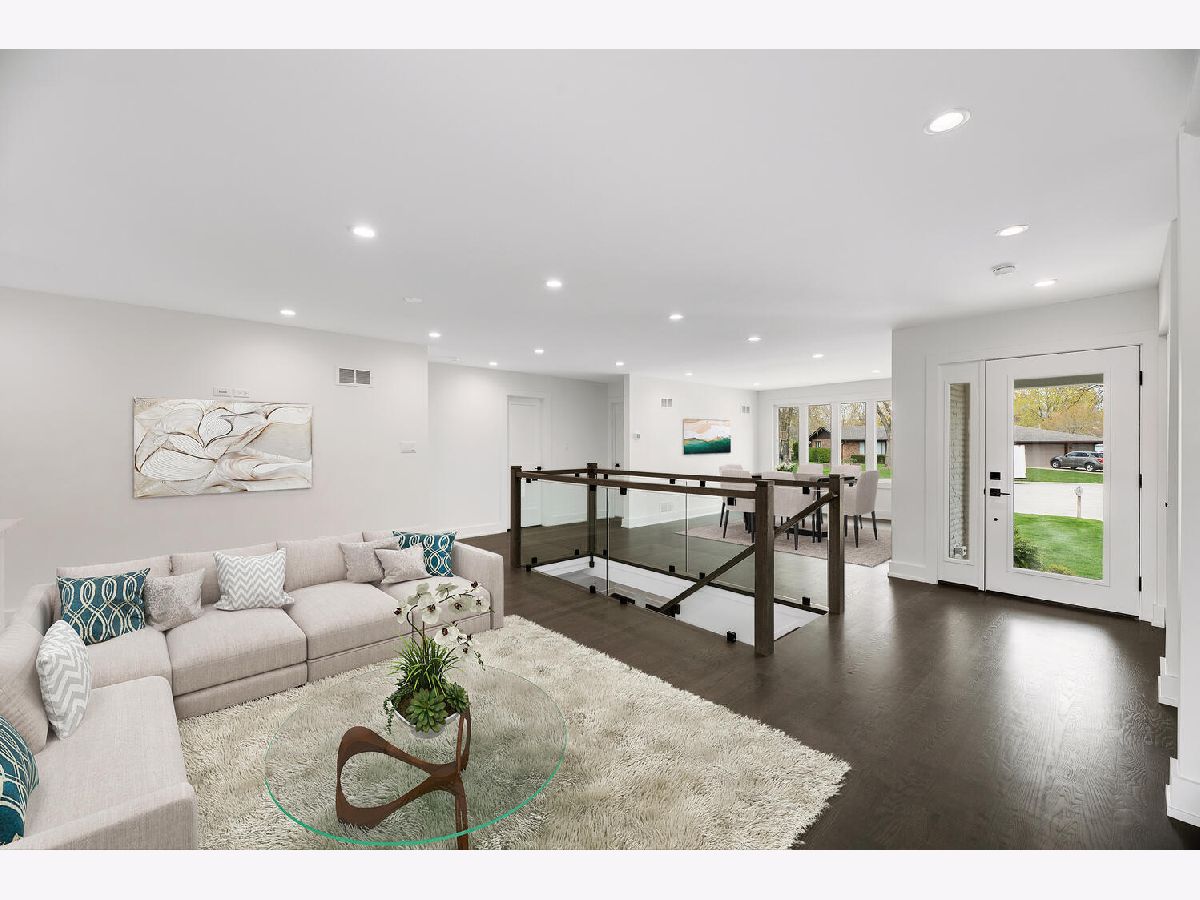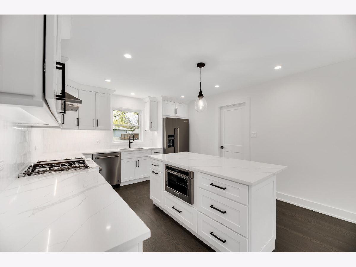 Shows like new construction! This stunning sun-drenched ranch home offers an open floor plan and is completely renovated from top to bottom. Gorgeous hardwood floors on the first floor, generous base molding throughout and designer light fixtures. Foyer entry with guest closet and direct access to attached 2.5 car garage with epoxy floor, attic access and new storage cabinets. Bright living room with views of the tree lined street and gorgeous contemporary glass rail around the basement staircase. Dining area open to kitchen with white Craftsman style cabinets, quartz countertops, stainless steel appliances, center island breakfast bar and gorgeous Carrara marble backsplash. Three main floor bedrooms including master bedroom suite and two spa inspired main floor bathrooms. Master bathroom features roll in shower and double vanity. Mud room area with built-in boot bench, storage cabinet and sliding glass doors to the covered concrete patio - perfect for morning coffee. Huge finished basement with family room, rec room, office nook, fourth bedroom with egress window, laundry room, 3rd full bathroom and large walk-in storage closet! Award winning schools including Lyons Township High School and convenient cul-de-sac location! There is literally nothing to do but move in and enjoy this jaw dropping home!