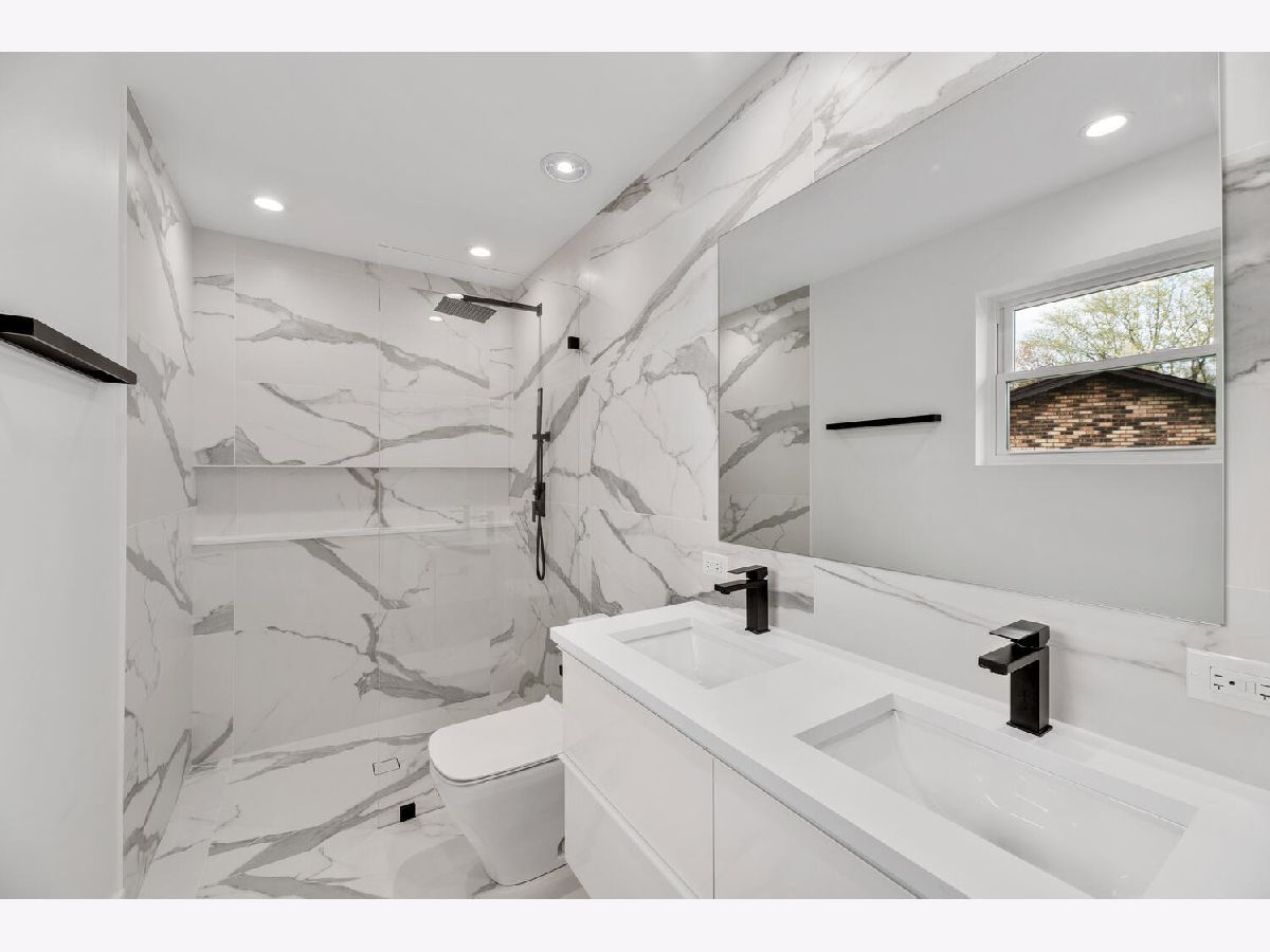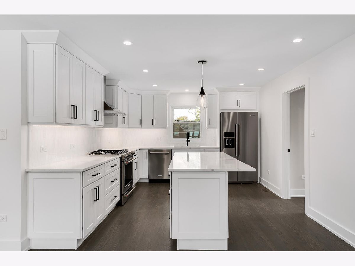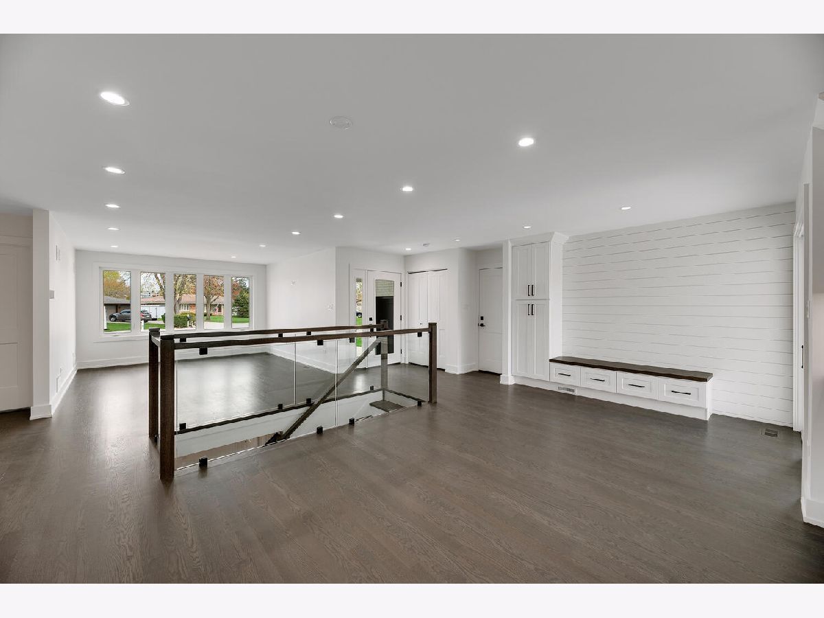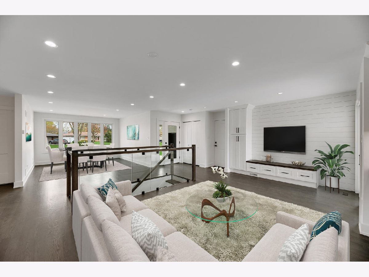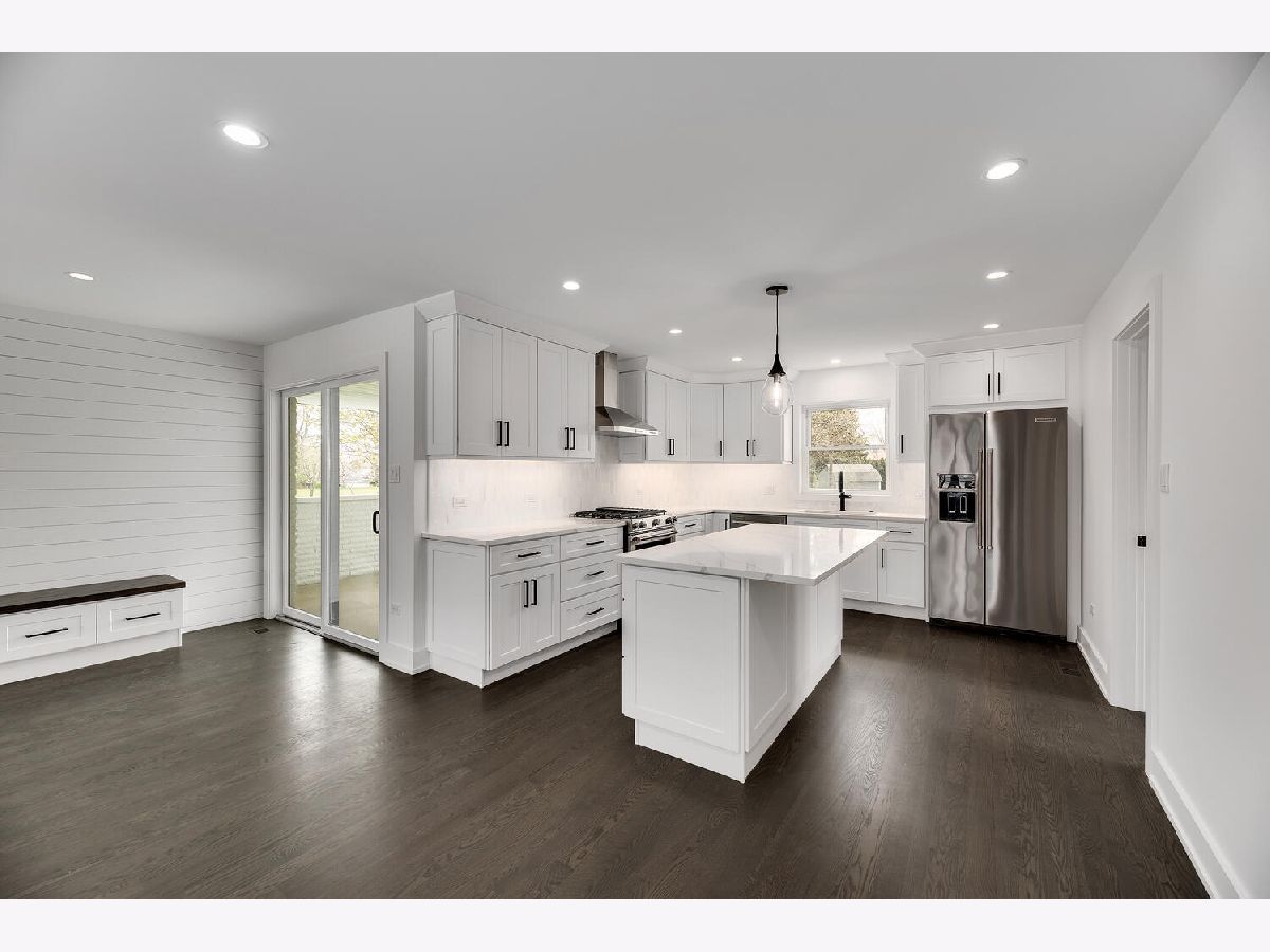 Shows like new construction! This stunning sun-drenched ranch home offers an open floor plan and is completely renovated from top to bottom. Gorgeous hardwood floors on the first floor, generous base molding throughout and designer light fixtures. Foyer entry with guest closet and direct access to attached 2.5 car garage with epoxy floor, attic access and new storage cabinets. Bright living room with views of the tree lined street and gorgeous contemporary glass rail around the basement staircase. Dining area open to kitchen with white Craftsman style cabinets, quartz countertops, stainless steel appliances, center island breakfast bar and gorgeous Carrara marble backsplash. Three main floor bedrooms including master bedroom suite and two spa inspired main floor bathrooms. Master bathroom features roll in shower and double vanity. Mud room area with built-in boot bench, storage cabinet and sliding glass doors to the covered concrete patio - perfect for morning coffee. Huge finished basement with family room, rec room, office nook, fourth bedroom with egress window, laundry room, 3rd full bathroom and large walk-in storage closet! Award winning schools including Lyons Township High School and convenient cul-de-sac location! There is literally nothing to do but move in and enjoy this jaw dropping home!