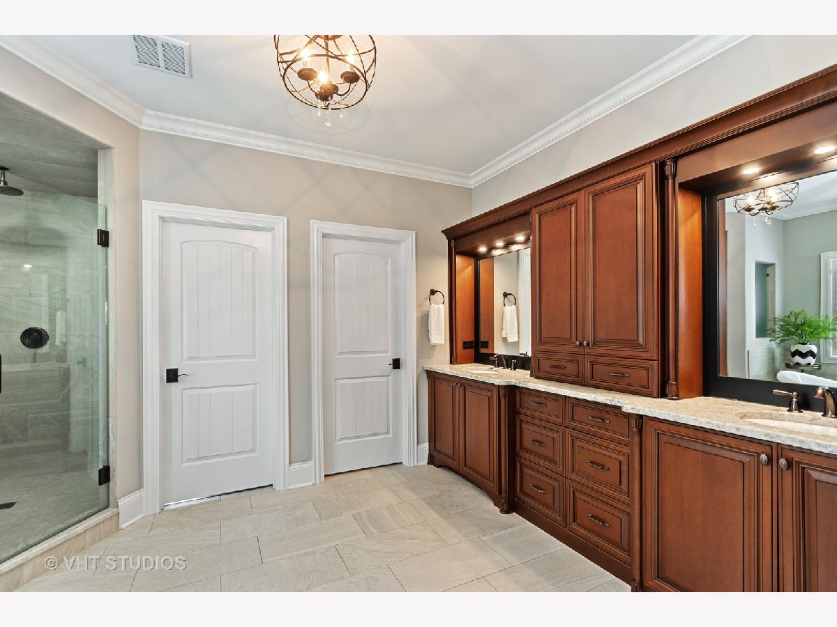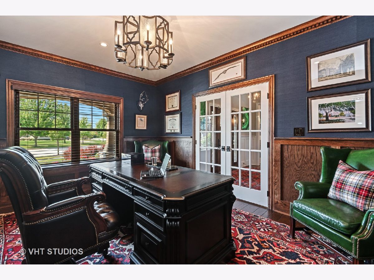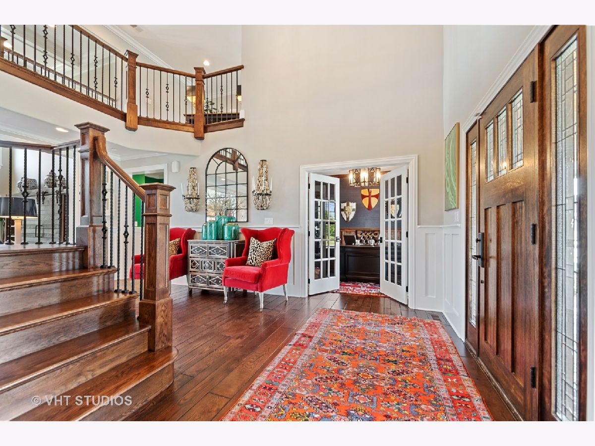 Exquisite custom home in exclusive Olde Stone Village of Frankfort greets you with a welcoming front porch with a tongue and groove ceiling and the extraordinary floor plan features a two story foyer, hand scraped character oak floors. You will love to entertain in your Chef's kitchen with Custom Cabinetry, exotic granite counter tops, massive island with a mitered edge top, Wolf/Subzero appliances, full size SubZero wine cooler, walk-in pantry and butler's pantry. The dramatic two story great room is light-filled with a coffered ceiling and craftsman style fireplace. The stunning dining room features wainscoting and beautiful Magnolia Home wallpaper, the formal study with french doors is rich with custom millwork and woven textiles. You will love the MAIN LEVEL MASTER suite with tray ceilings and a spa bath with a massive shower, soaking tub and custom closet. Attention to detail and an eye for design is evident throughout, plantation shutters, NuVo P3100 whole house audio system with surround sound, massive basement with 9' ceilings, roughed in radiant heat. The second level features 3 large bedrooms, a loft, and bonus room perfect for movie night. Set on a spacious .49 acre lot with plenty of room for a pool, stone driveway, stone patio and custom landscape lighting and more, the best of the best, moments from downtown Frankfort and award winning Frankfort Schools!