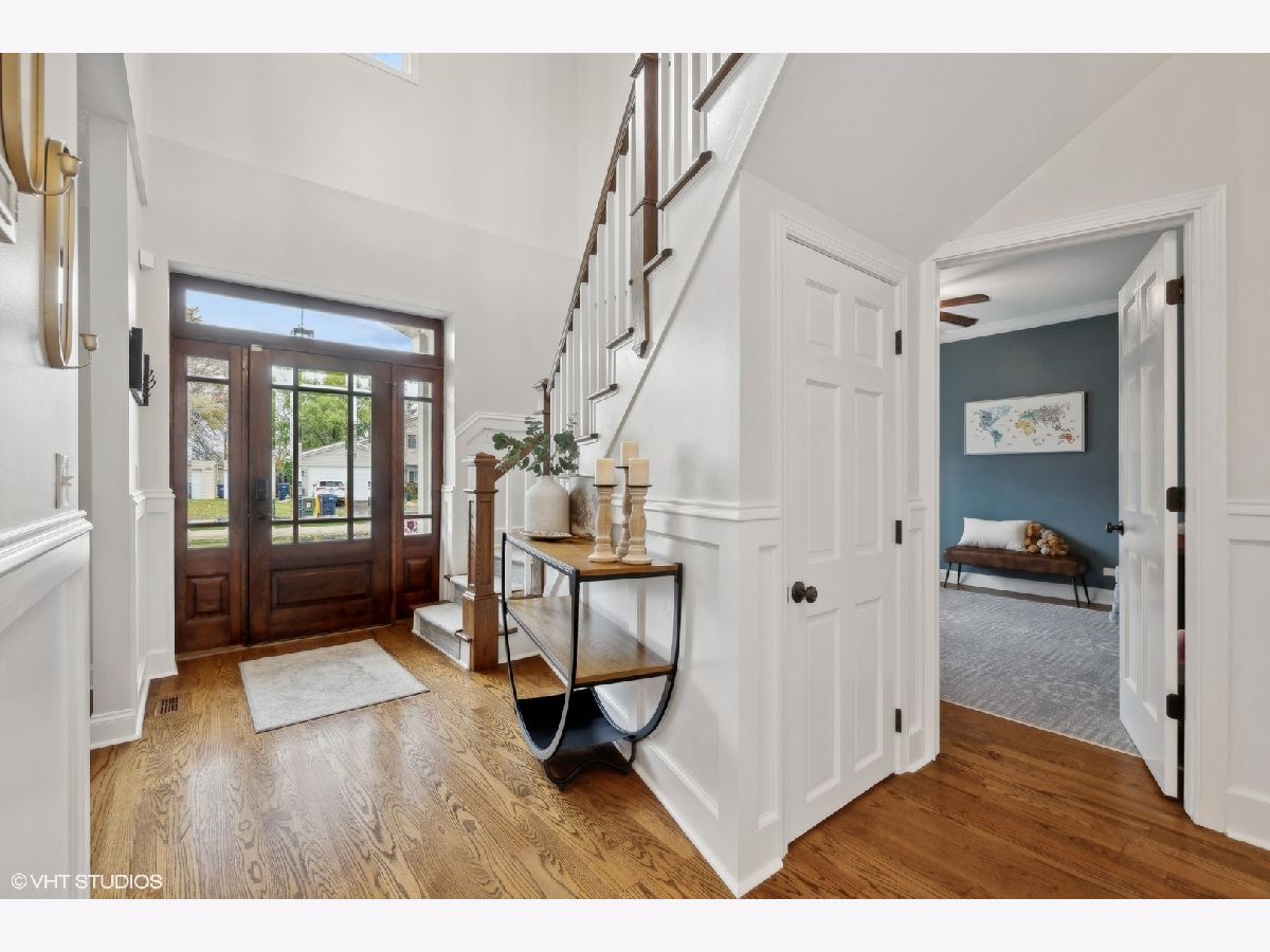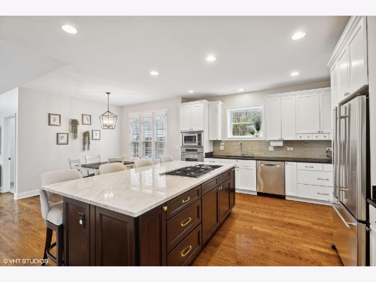 Welcome to this stunning home heart of East Northbrook! Rebuilt in 2007, this meticulously maintained 4-bedroom, 2.5-bathroom home is a true masterpiece exuding a newer construction feel with the perfect combination of a modern layout and high end finishes. As you step inside, you're greeted by a breathtaking double-height open foyer with custom Wainscoting, that sets the tone for the rest of the home. The open concept kitchen is an entertainer's dream, featuring a large eat-at quartzite island with room for 4 people, double ovens, high end appliances, and custom cabinetry and an attached breakfast nook. The kitchen seamlessly flows into the expansive two-story family room, adorned with double-height windows that flood the space with natural light. A slider door from the family room leads to the outdoor Trex deck and beautifully fenced and landscaped yard, perfect for entertaining or relaxing. Adjacent to the family room, you'll find a well-appointed mudroom with a built-in bench and lockers, offering convenience when coming in from the detached 2-car heated garage, with plenty of storage. The first floor boasts wide plank red oak hardwood floors, 9-foot ceilings, and oversized windows with transoms, enhancing the home's bright and airy feel. Additional first-floor features include a private dining room, versatile office/living rooms, a bedroom, a powder room, and a large entry coat/storage closet. Upstairs, discover two additional bedrooms that share a full bathroom, along with a luxurious primary suite. The primary suite offers a spacious walk-in closet, tray ceiling and a recently partially updated full bathroom. The second floor also includes a large laundry room for added convenience. The unfinished basement, partially drywalled and with a bath rough-in, presents endless possibilities. It could be transformed into a playroom, workout room, or even an additional bedroom. This home is in the sought after D28 schools and conveniently located near highways, shopping, restaurants, Life Time Fitness, theaters, the mall and a brand new park, making it an ideal location for all your needs. Don't miss the opportunity to own this gorgeous home that perfectly combines modern luxury, comfort, and convenience.