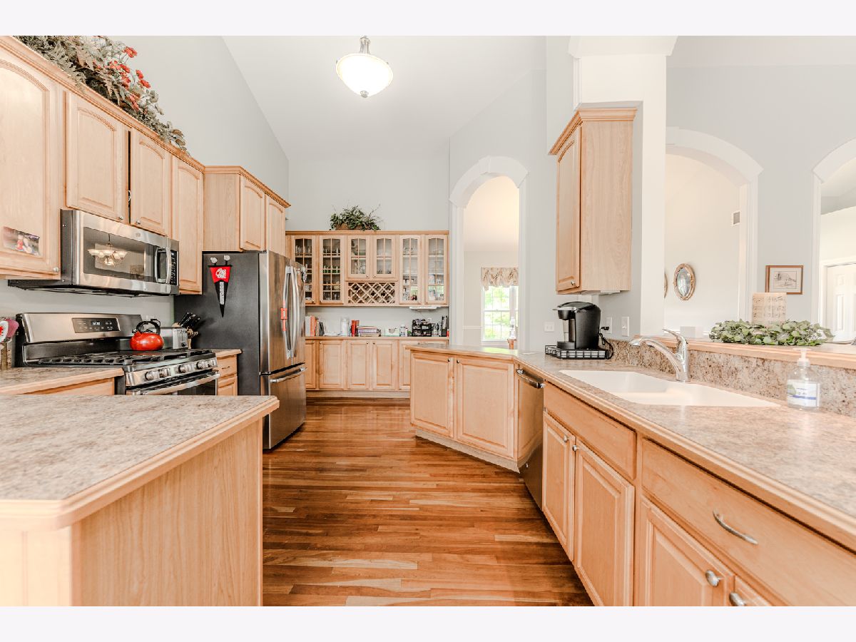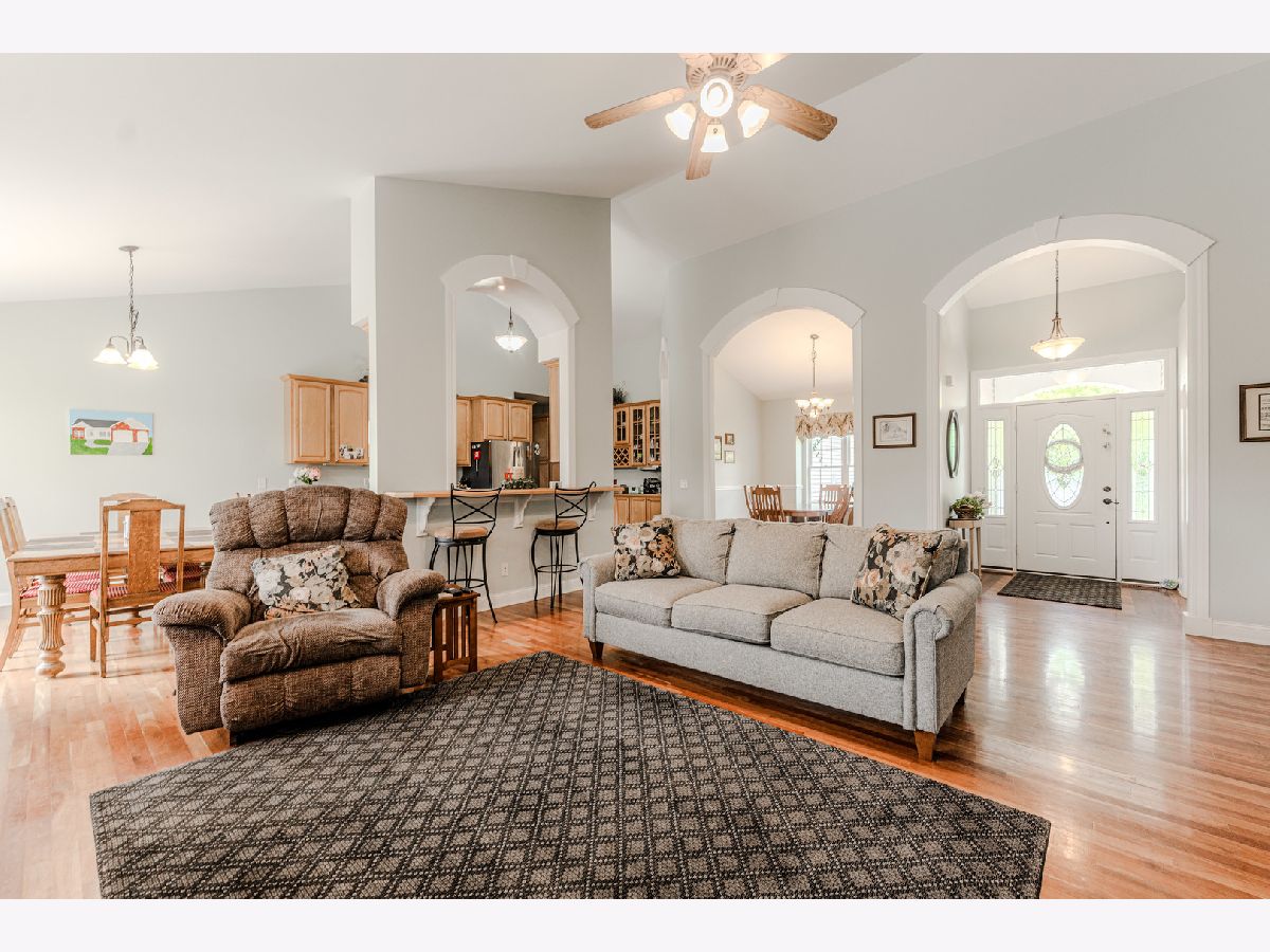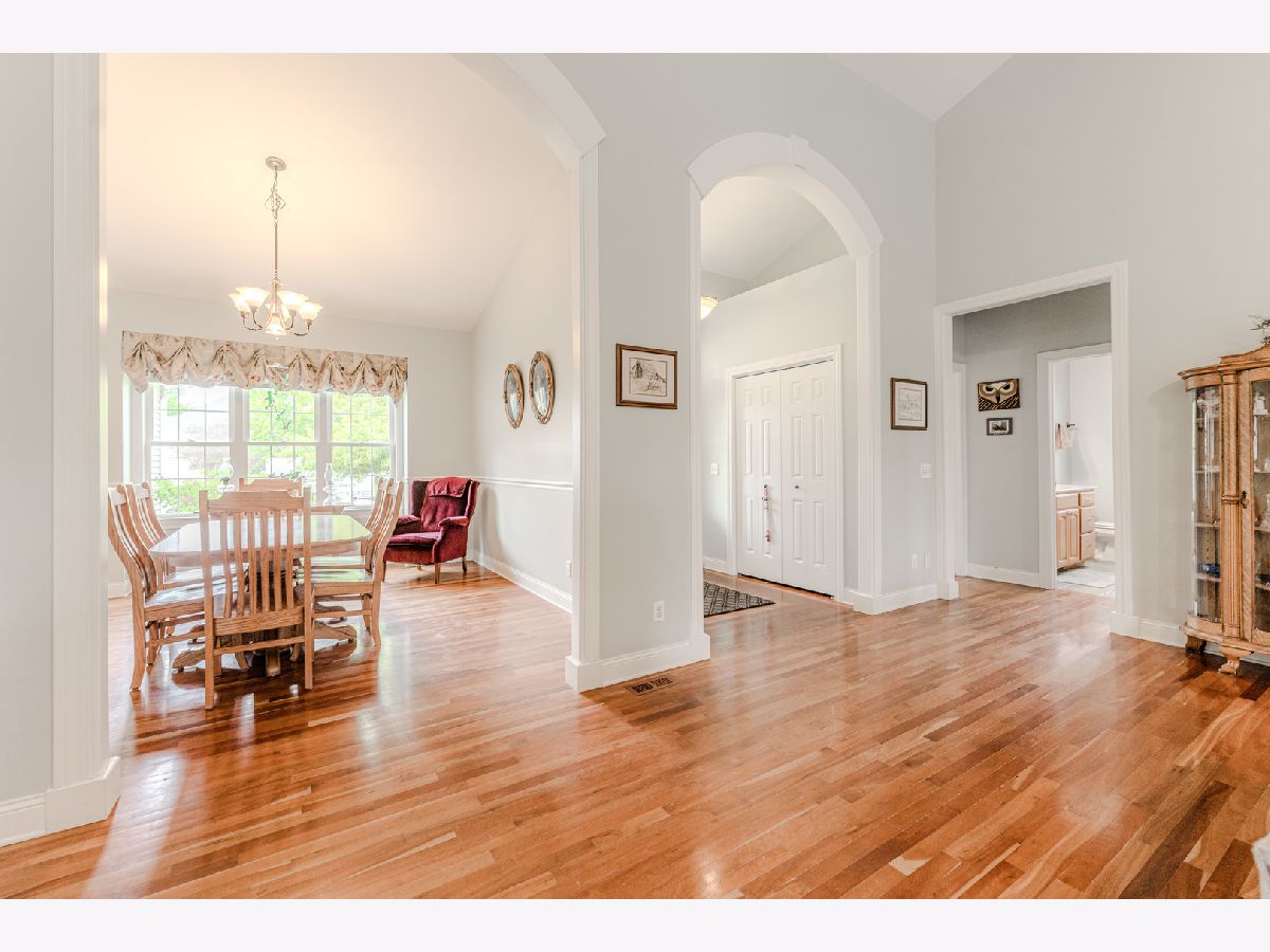 Welcome to your oasis in Townsend Woods! This charming ranch-style home boasts an abundance of space and modern amenities, nestled in the serene neighborhood of Townsend Woods. Step inside to discover a warm and inviting atmosphere, with rich Brazilian hardwood floors and abundant natural light streaming through the windows. The heart of the home is the gourmet kitchen, featuring 42" maple cabinetry, offering ample storage space for all your culinary needs. With three bedrooms upstairs and an additional bedroom in the basement, along with a convenient office space downstairs, there's plenty of room for the whole family to spread out. The spacious primary suite is a true retreat, complete with a large closet and luxurious bath, providing the perfect sanctuary after a long day. Entertain guests or cozy up by the gas fireplace in the family room, creating memories that will last a lifetime. The main floor also features 2.5 baths, while a convenient half bath is also located in the basement. Outside, the private backyard awaits, offering tranquility and space for outdoor gatherings or simply enjoying the peaceful surroundings. The oversized 3-car garage provides ample room for vehicles and storage, while the professionally landscaped yard adds to the home's curb appeal. With a large laundry mudroom combo, this home combines practicality with luxury, making daily living a breeze. Don't miss your chance to own this exquisite home in Townsend Woods - schedule your showing today!