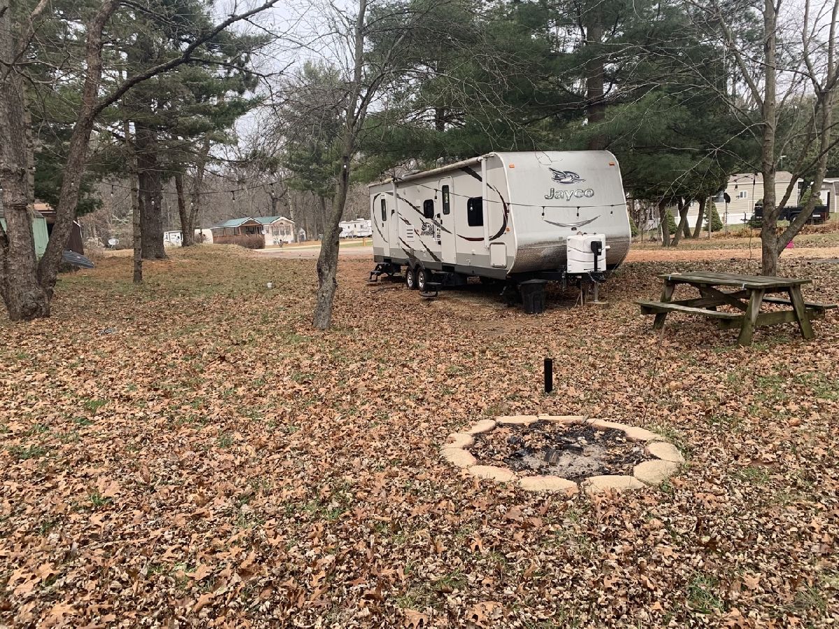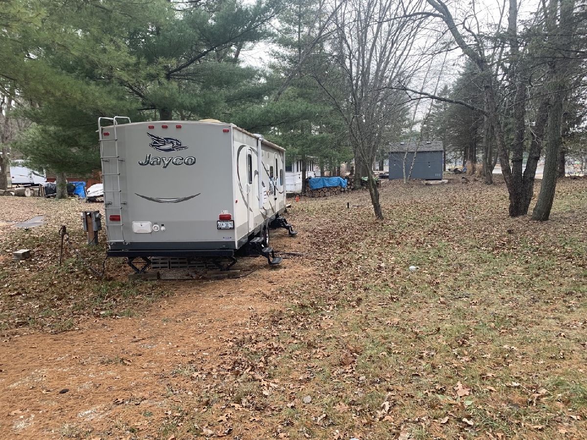 Location, location, location! This listing offers a shaded pie shaped, sewered lot located in a quiet cul-de-sac just inside of the Main Gate. You will have close lake access without the lakefront taxes! Just a stone's throw away from the back of the lot is access to both Bass Lake and Black Oak Lake. Included is a 2015 Jayco Jayflight 28BHBE travel trailer with lots of sleeping space and an outdoor fire pit. Call today for a showing don't miss out on this location! Gated facility - must be accompanied by a Real Estate Broker. Property owner is responsible for yearly assessments. This is not a homestead property.