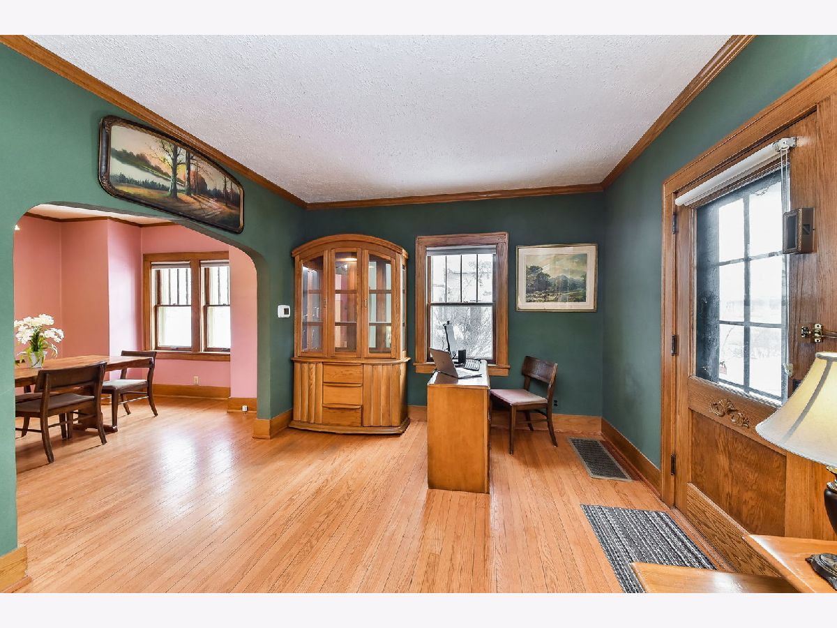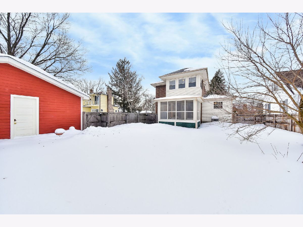 If you're looking for your "Happy Place", you'll love this GORGEOUS BRICK 2-Story home with everything on your wish list! Beautiful oak front door welcomes you with an original hand-pull door chime, and that's just the beginning! Charming corner, wood-burning fireplace accents the large living room with hardwood floors and natural woodwork which flows into the formal dining room with waterfall staircase to the second level. Before you head upstairs, check out the huge UPDATED 20x12 kitchen with brand new vinyl flooring, white shaker cabinets with slow-close drawers and lots of built-in shelving, drawers, and niches that will store and display all of your favorite things! Vintage center island adds more workspace and storage, and stays if you like! Enjoy the warmer weather (it's coming!) in the 3-season screened porch, perfect for dining and relaxation. Second floor features an expansive 21x11 Master bedroom with hardwood floors and 2 closets! 2nd bedroom offers hardwood floors AND a second-story "sleeping porch/sunroom" providing a birds eye view of the sky & 70x160 fenced yard with 5' cedar fence and 2-car garage. Many IMPORTANT UPDATES include: Tuckpointing 2014, roofs over kitchen & garage 2014, water heater 2015, electrical 2015, utility sink 2017, kitchen cabinets 2017, dryer 2018, fence w/steel posts 2018, furnace & central air 2018, water main 2019, sidewalk 2019, garage door opener 2020, interior paint 2021, vinyl flooring 2021. Impressive condition and quality craftsmanship make this home exceptional! Come see!