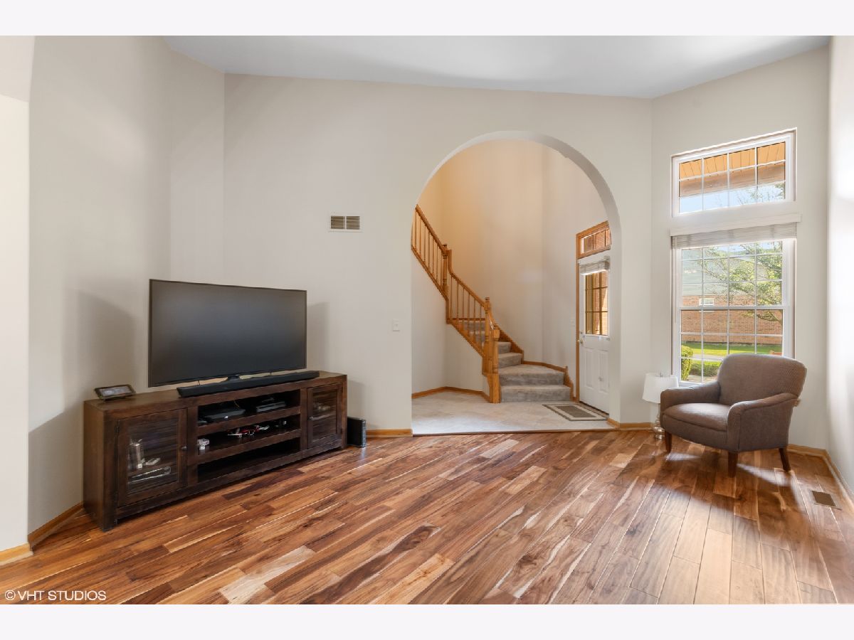 Beautiful townhouse in Hamilton Crossing. This charming 2/3 bedroom has living room with volume ceiling and arched alcove. Large eat in kitchen with breakfast bar. 2 large bedrooms up with shared master bath. Primary bedroom has large walk in closet and linen closet. 2nd bedroom also has large walk in closet. Finished basement with family room, bedroom/office and plenty of storage space. Great green space views! All new windows in 2019. Close to Metra, shopping, forest preserve. Quick access to I-80 and I-355.