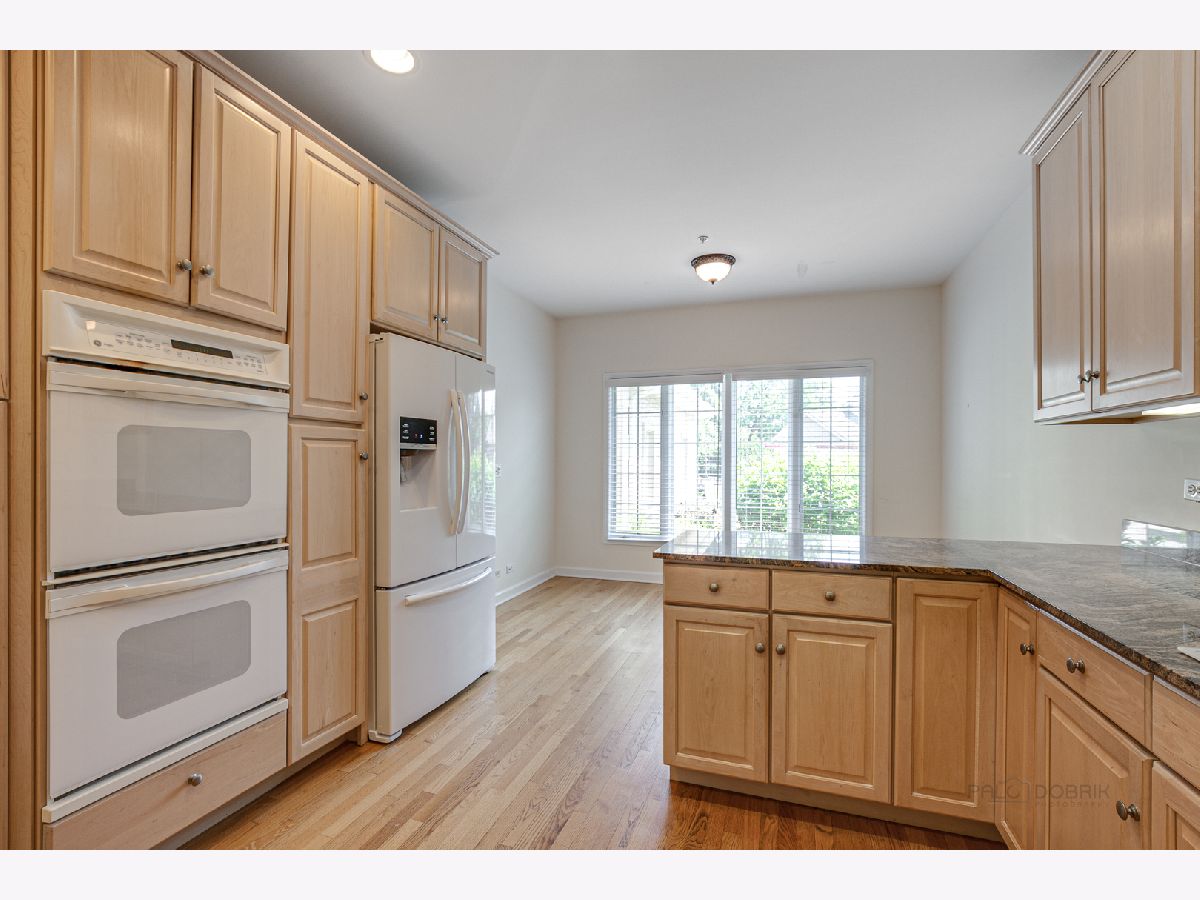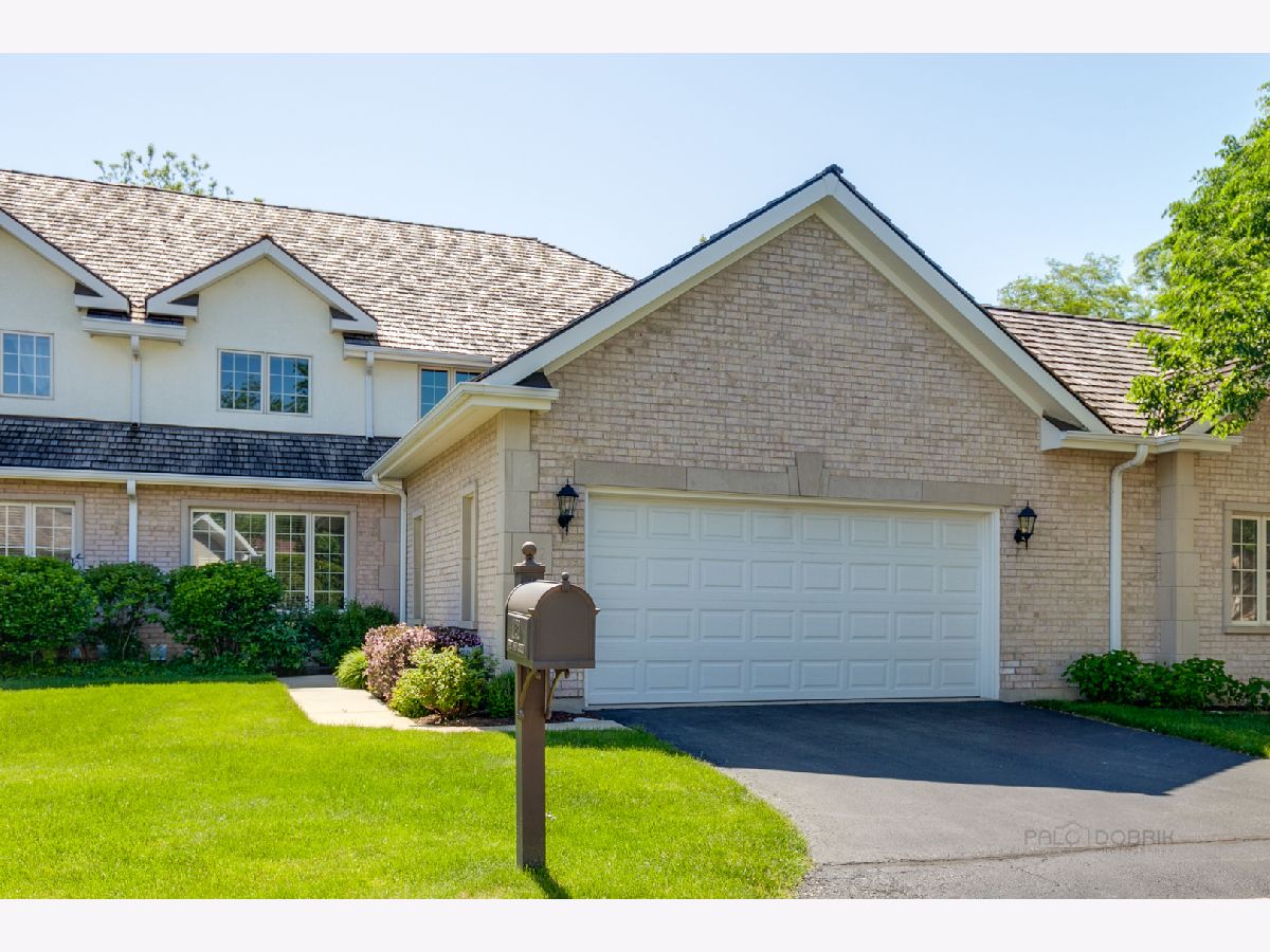 Delightful brick and stucco Pine Oaks Circle townhome ready for your fussiest buyers. Maintenance free living at its best. First floor master bedroom w/generous closets & nicely appointed bath w/shower & tub, open living/dining room w/cathedral ceiling, fireplace, hardwood floors and access to the back patio, spacious kitchen with granite counters, tons of storage and cozy eating/sitting area. First floor mud room/laundry conveniently located off the two car garage. The second floor features two nice size bedrooms and a full bath. Full unfinished basement. This immaculately maintained unit is move in ready. Walk to shopping and train.