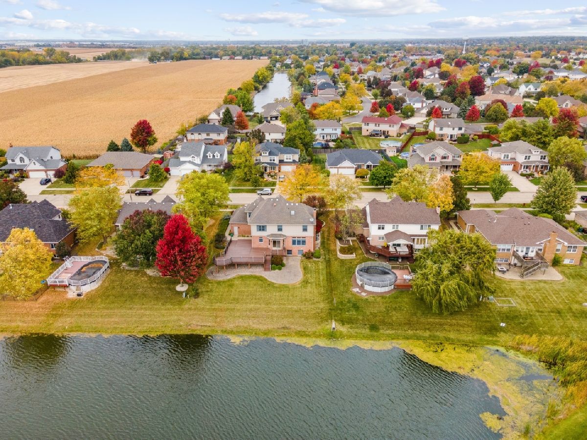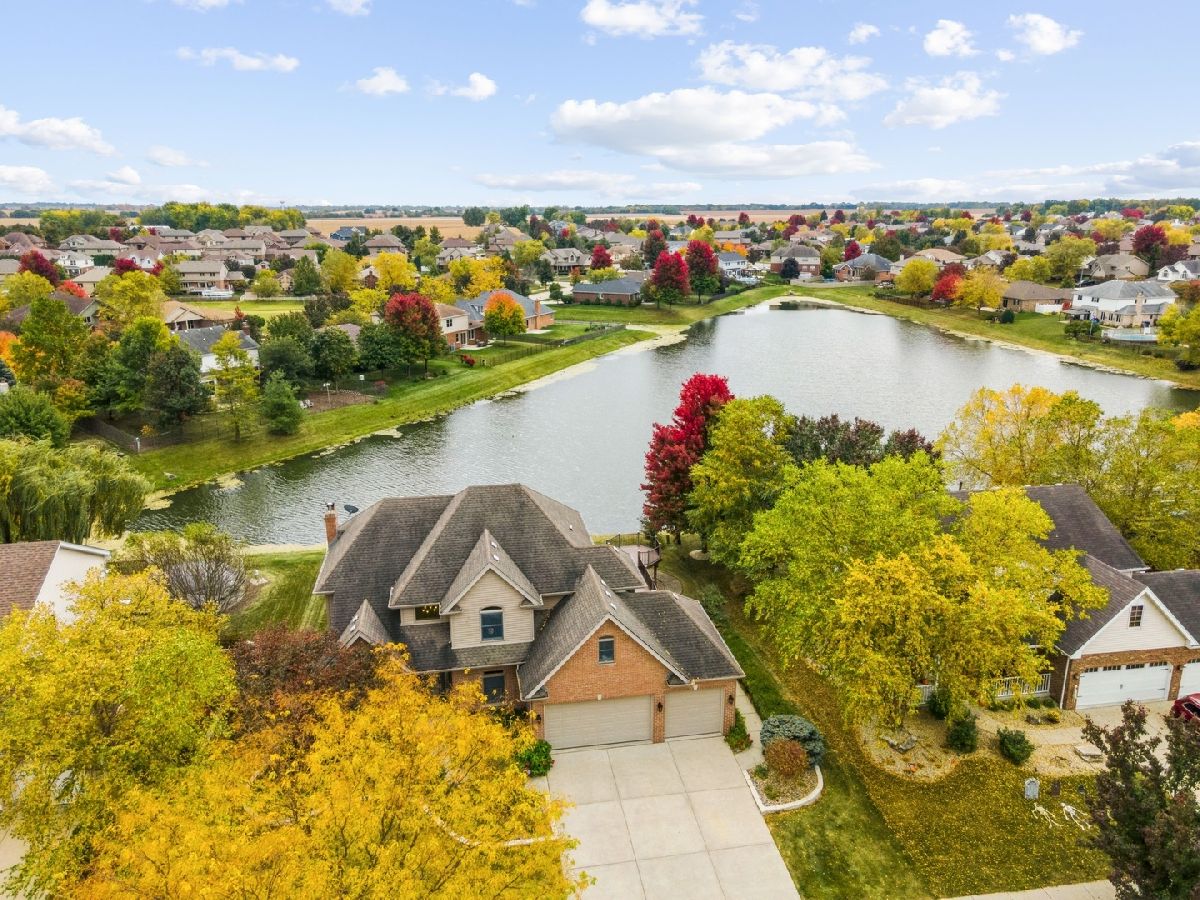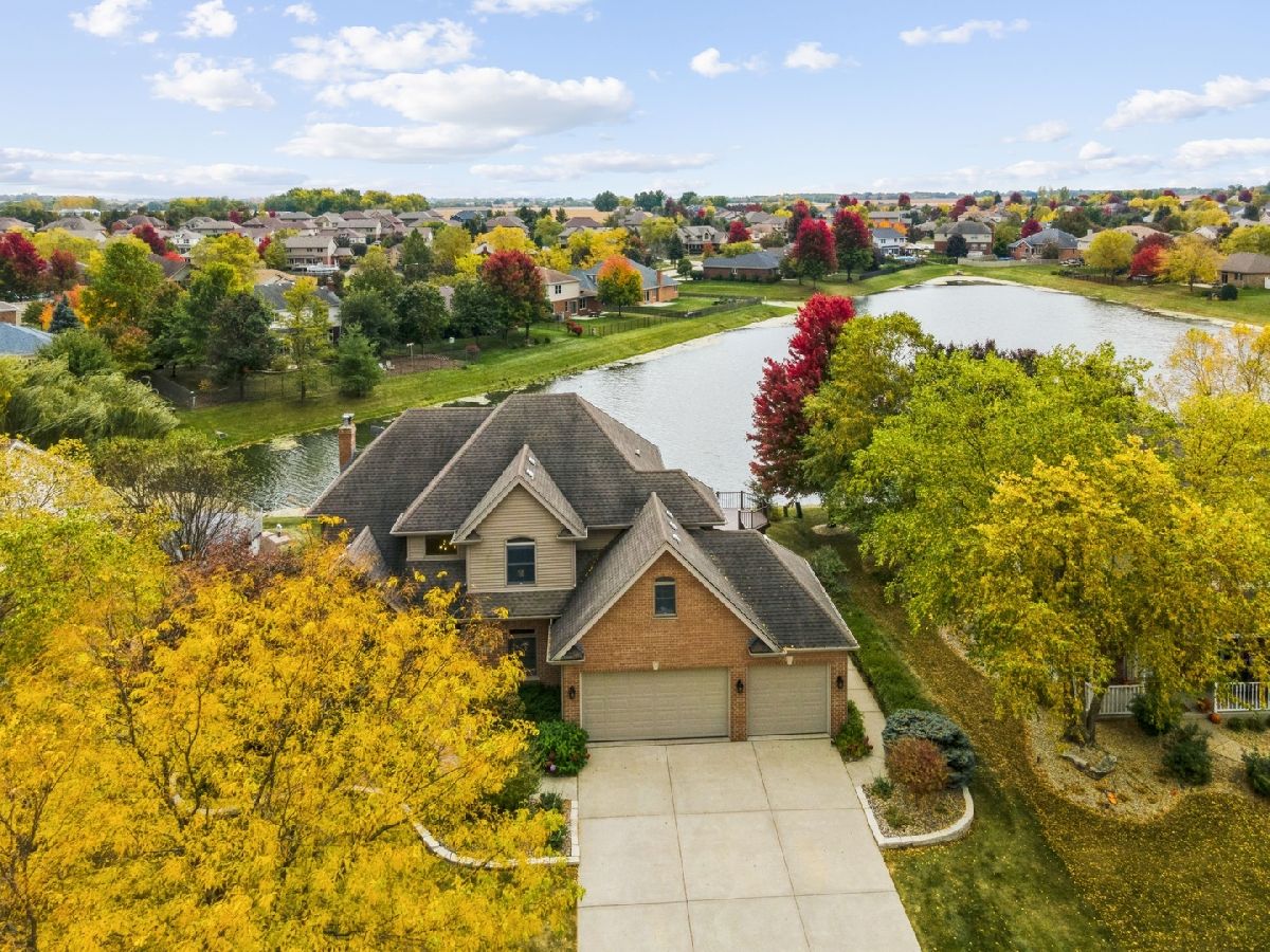 Impressive two-story custom-built home with attached three car garage in the sought-after Palmer Ranch Subdivision. Walk into an inviting and outstanding two-story foyer with nine-foot ceilings throughout. The main level boasts hardwood flooring including a formal living and dining room that were freshly painted. The family room is perfect to relax and unwind overlooking the breathtaking pond. Also features an all-brick gas fireplace with ceramic logs. Parallel to the family room is your spacious eat in kitchen with an island. The sliding doors take you to your composite deck with over 1,500 square feet to relax or entertain with views of the water. The backyard also includes a sprawling brick paver patio. Upstairs you will find all four bedrooms, three of which have stunning views of the water. The primary bedroom presents an updated primary bathroom with floor to ceiling porcelain tile, whirlpool tub, separate shower, and large walk-in closet. The fully finished basement with eight and half foot ceilings, 16x16 porcelain tiles, windows that look out to the water is the perfect spot to entertain with the custom-built wet bar including a wine cooler. Full bathroom with a large linen closet, additional storage room, and furnace room also downstairs. This spectacular home is located just one block from desirable grade schools, Palmer Valley Park, minutes away from the local high school, Metra and everything New Lenox has to offer!