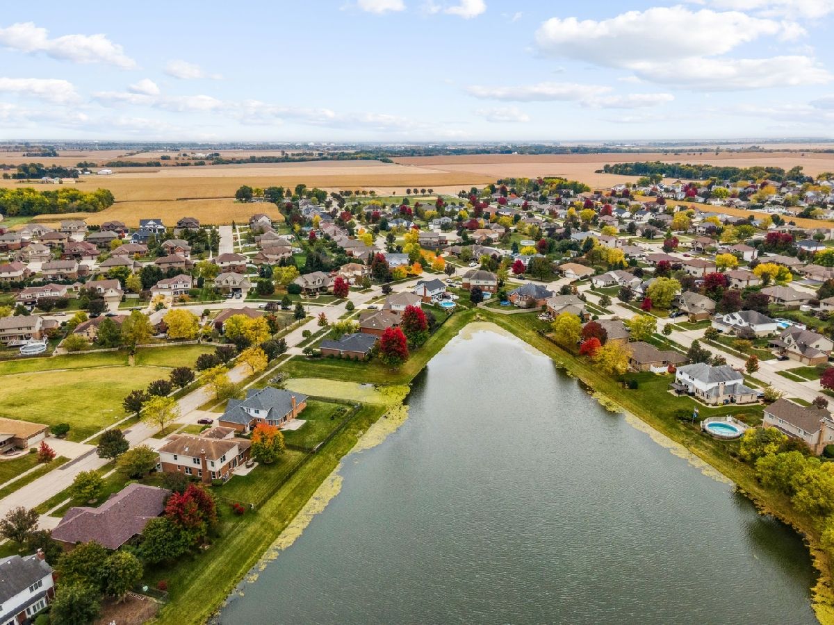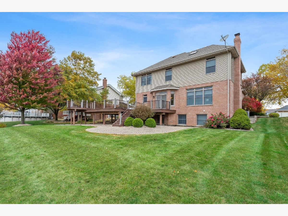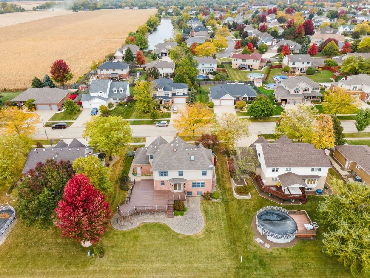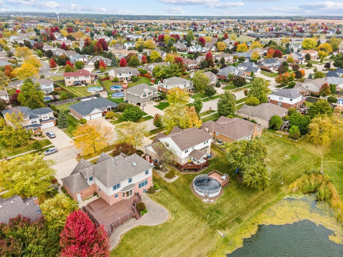 Impressive two-story custom-built home with attached three car garage in the sought-after Palmer Ranch Subdivision. Walk into an inviting and outstanding two-story foyer with nine-foot ceilings throughout. The main level boasts hardwood flooring including a formal living and dining room that were freshly painted. The family room is perfect to relax and unwind overlooking the breathtaking pond. Also features an all-brick gas fireplace with ceramic logs. Parallel to the family room is your spacious eat in kitchen with an island. The sliding doors take you to your composite deck with over 1,500 square feet to relax or entertain with views of the water. The backyard also includes a sprawling brick paver patio. Upstairs you will find all four bedrooms, three of which have stunning views of the water. The primary bedroom presents an updated primary bathroom with floor to ceiling porcelain tile, whirlpool tub, separate shower, and large walk-in closet. The fully finished basement with eight and half foot ceilings, 16x16 porcelain tiles, windows that look out to the water is the perfect spot to entertain with the custom-built wet bar including a wine cooler. Full bathroom with a large linen closet, additional storage room, and furnace room also downstairs. This spectacular home is located just one block from desirable grade schools, Palmer Valley Park, minutes away from the local high school, Metra and everything New Lenox has to offer!