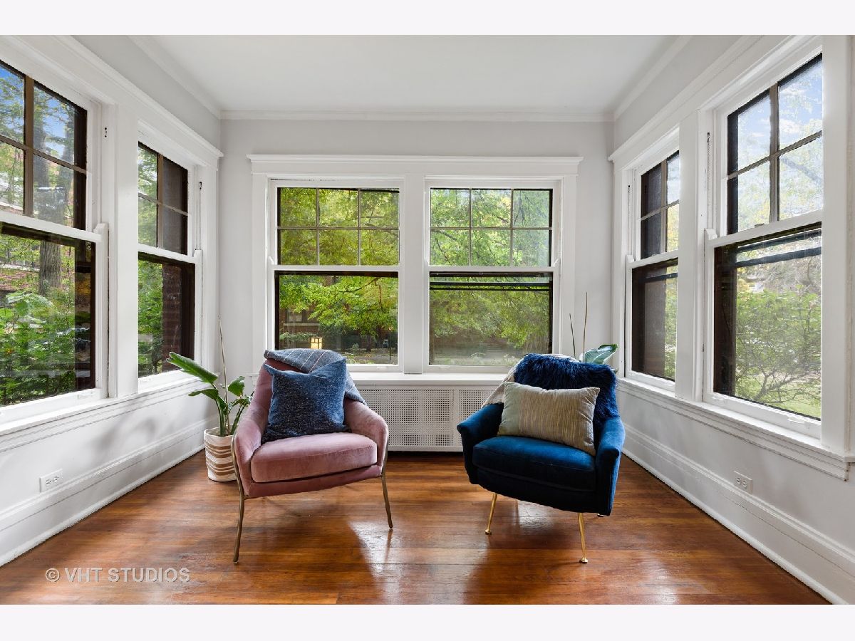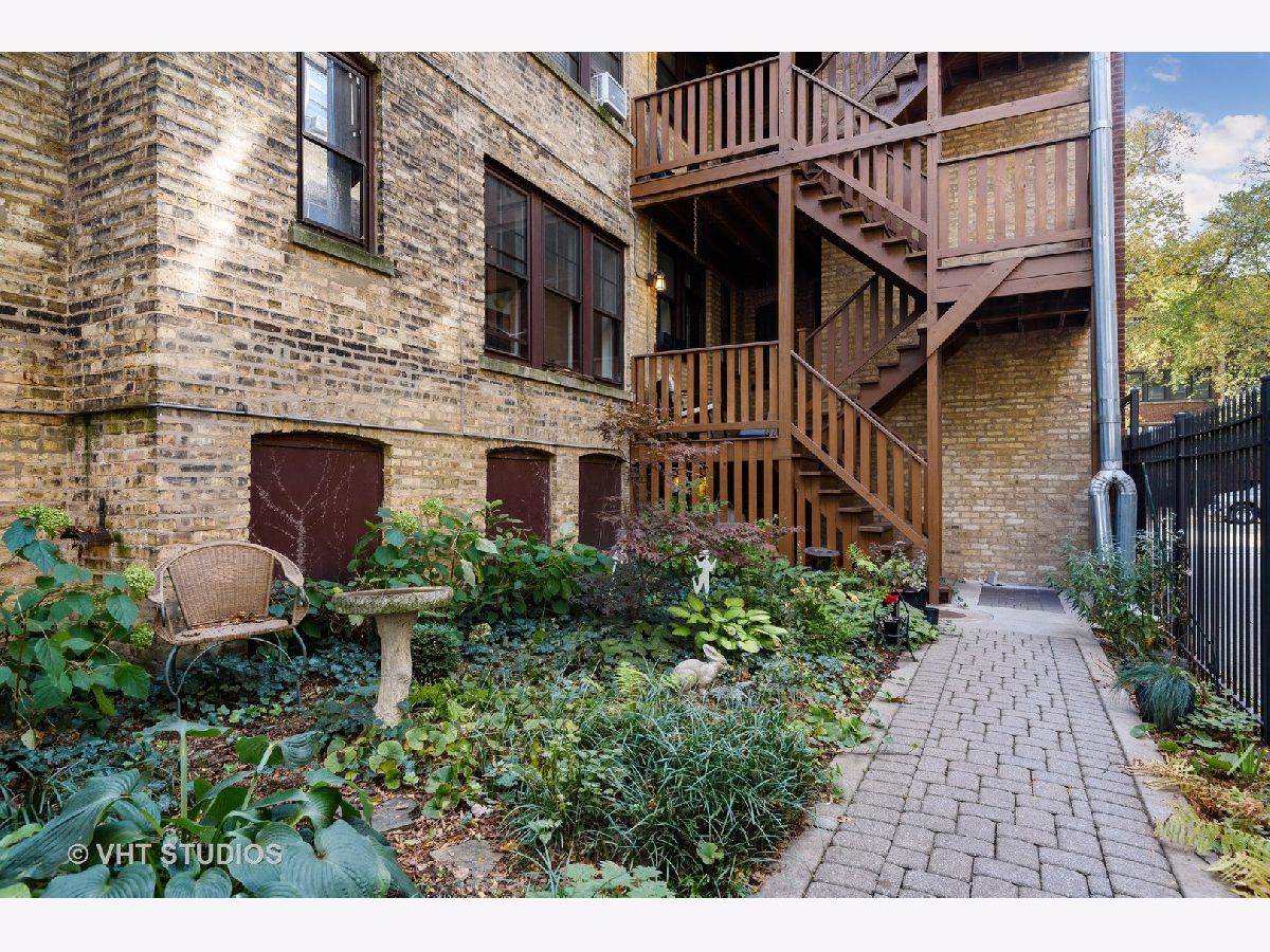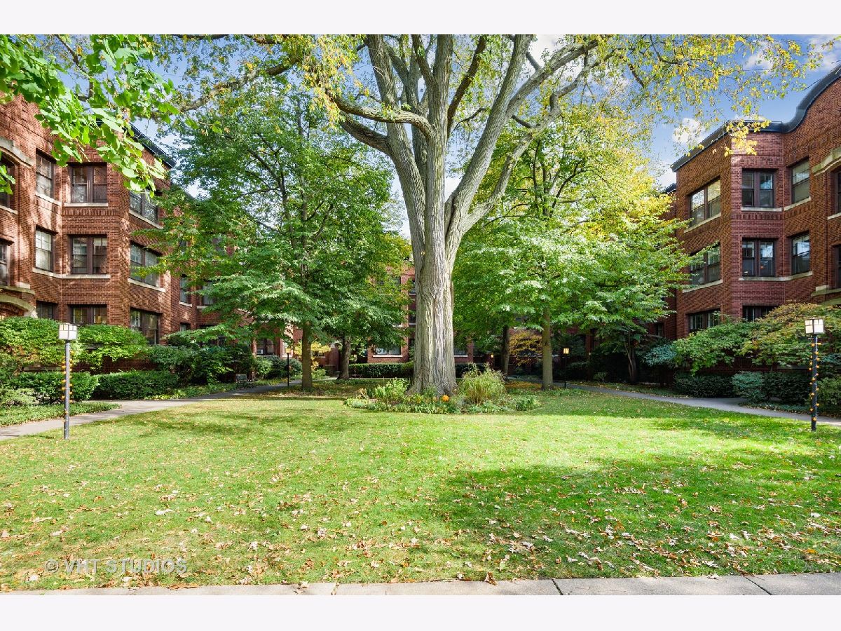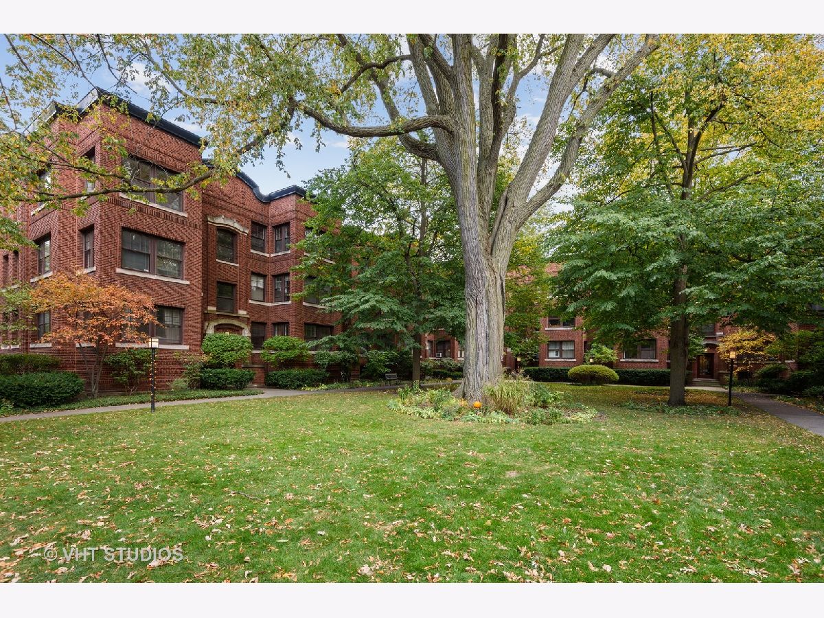 Rarely available, charming one bedroom condo in Maple Court. Easy access to this high first floor unit. Tons of natural light overlooking a beautiful, manicured courtyard. Spacious sunroom, living room and gracious separate dining area provide ideal flex space for entertaining and work from home options. Gleaming hardwood floors, high ceilings and crown molding. Updated bath with new vanity and floor, new lighting and freshly painted throughout. Glorious sunlight fills this unit throughout with windows in every room including the kitchen. Charming patio overlooking professionally landscaped side yard with metal sculptures and bird baths. This incredibly well-located property is situated within walking distance to Trader Joe's, train, coffee houses and all downtown Evanston and Main Street shops and restaurants have to offer. Beautiful tree-lined street filled with single family homes. Maple Court is part of the National Register of Historic Places. Don't miss out on this great opportunity. Pet and investor friendly!