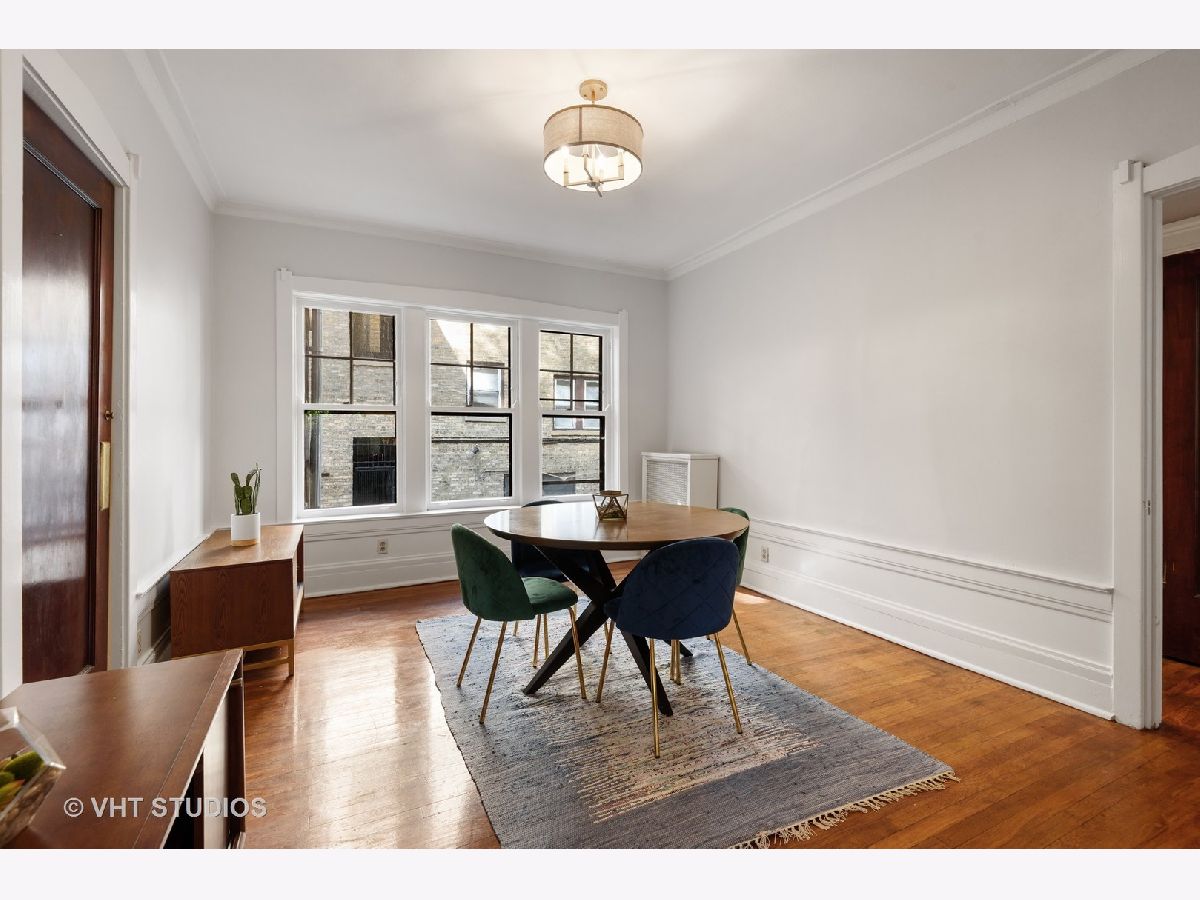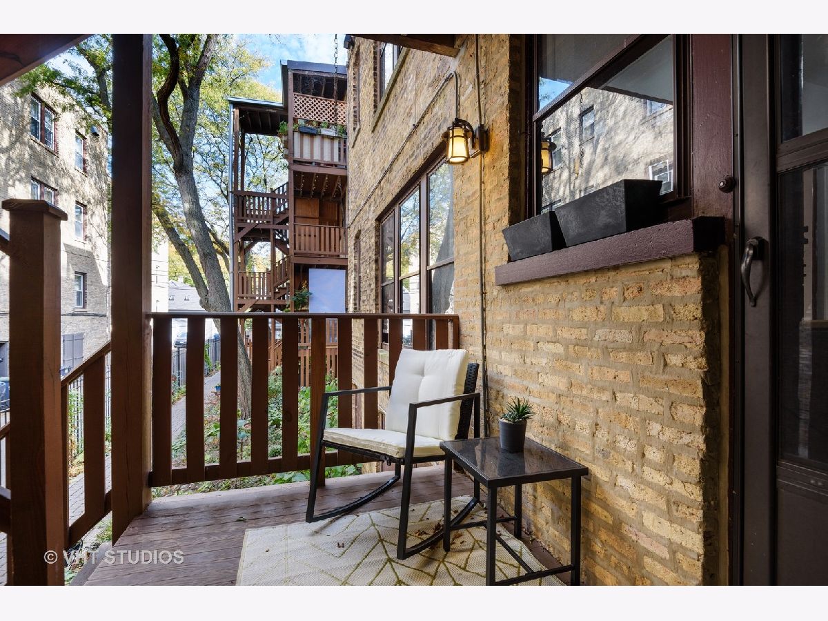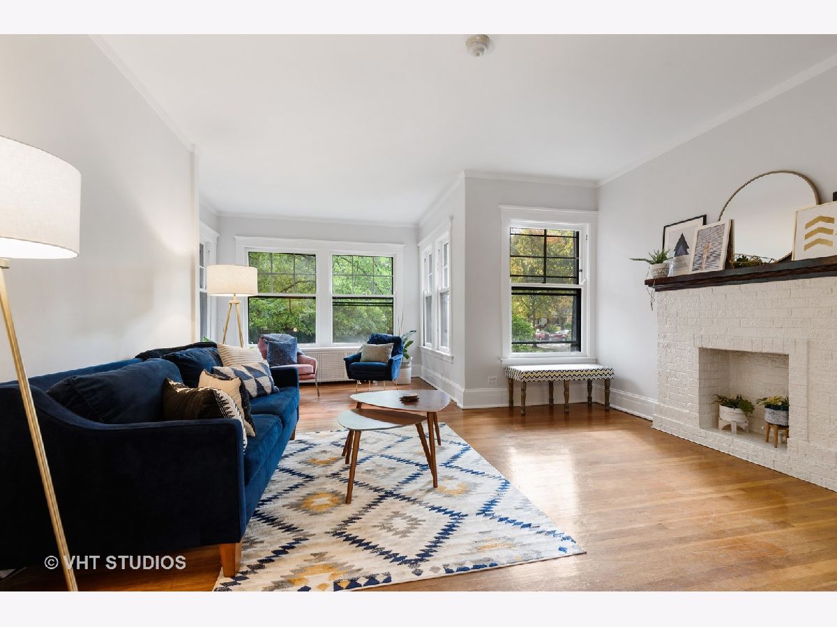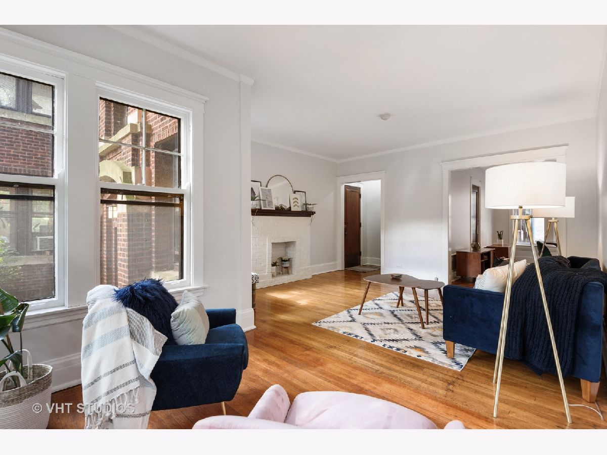 Rarely available, charming one bedroom condo in Maple Court. Easy access to this high first floor unit. Tons of natural light overlooking a beautiful, manicured courtyard. Spacious sunroom, living room and gracious separate dining area provide ideal flex space for entertaining and work from home options. Gleaming hardwood floors, high ceilings and crown molding. Updated bath with new vanity and floor, new lighting and freshly painted throughout. Glorious sunlight fills this unit throughout with windows in every room including the kitchen. Charming patio overlooking professionally landscaped side yard with metal sculptures and bird baths. This incredibly well-located property is situated within walking distance to Trader Joe's, train, coffee houses and all downtown Evanston and Main Street shops and restaurants have to offer. Beautiful tree-lined street filled with single family homes. Maple Court is part of the National Register of Historic Places. Don't miss out on this great opportunity. Pet and investor friendly!