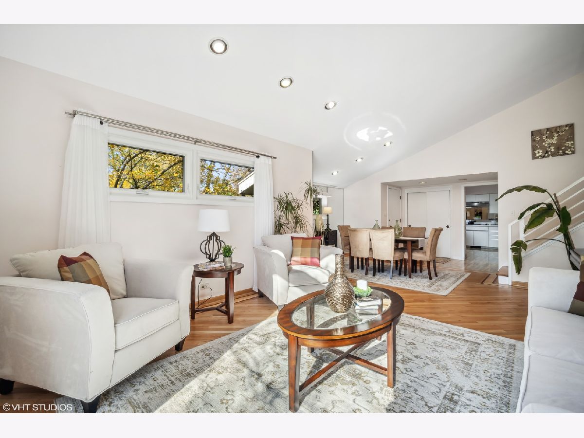 Fantastic opportunity to purchase a beautiful home in East Glenview backing up to Avoca elementary school. Bright light, airy and open space unfold as soon as you enter this lovingly maintained 3 bedroom, 2.1 bath split level home with a family room off the kitchen. 1st flr features include gorgeous living/ dining rm combination with hardwood floors and beautiful big windows and vaulted ceilings, eat-in kitchen with an island and adjacent family room, which could also be an office or a playroom. Mudroom and attached 2.5 car garage and brand-new patio off the family room. 3 spacious bedrooms on the 2nd floor with hardwood floors, updated windows and a shared bath. Awesome finished lower level extends your living space and allows for flexibility - great light and a full bathroom too. Quiet back yard completes the picture. All nestled in an award-winning New Trier School District and Avoca Elementary School next door. Close to Forest Preserve, shopping, expressway, and 2.6m to Glenview Metra Station.