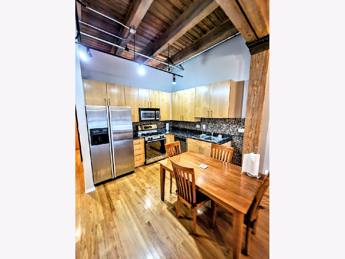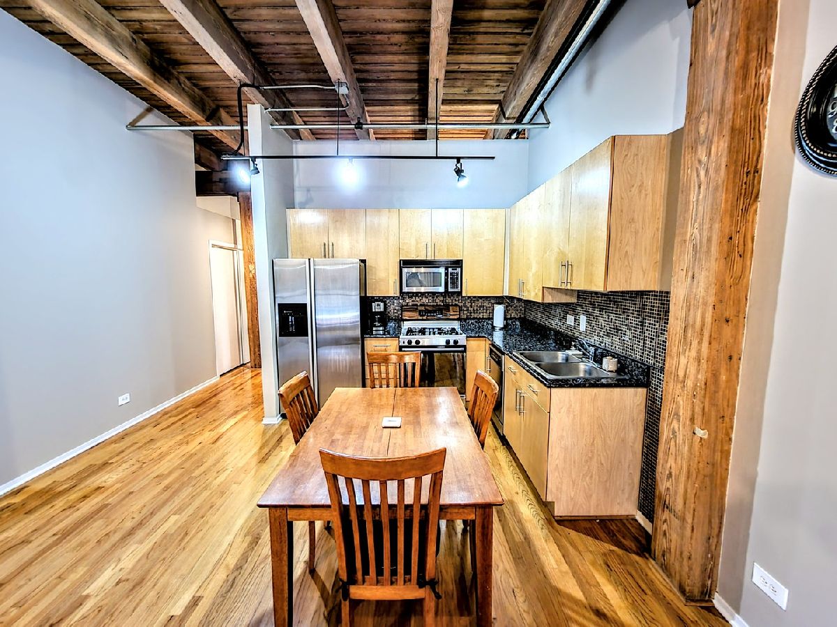 This fantastic one bed one and a half bath loft has it all! Exposed brick walls, soaring timber ceilings, ceiling to floor windows, hardwood floors thru-out, a kitchen with flat panel 42" maple cabinets, stainless appliances, and granite counters, a full bath with a large soaking tub, an additional powder room, a home office nook, in unit washer/dryer, a large balcony and garage parking is an additional 25k. All walking distance to the El, Grant Park, Museum Campus and some of the best shopping and restaurants in the city. THIS IS AN ESTATE SALE WHICH IS WHY IT'S PRICED SO LOW!