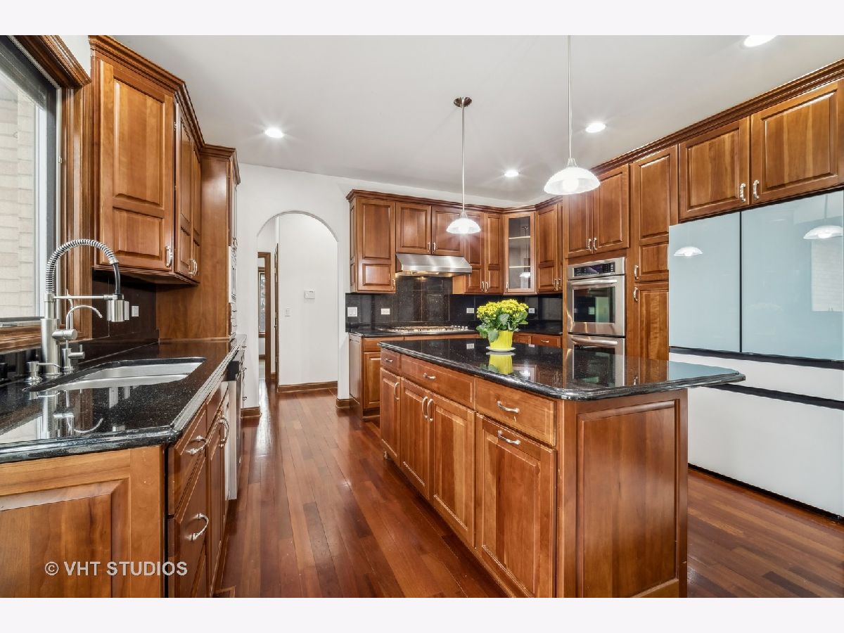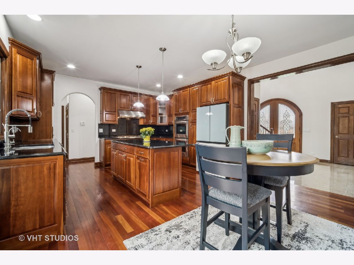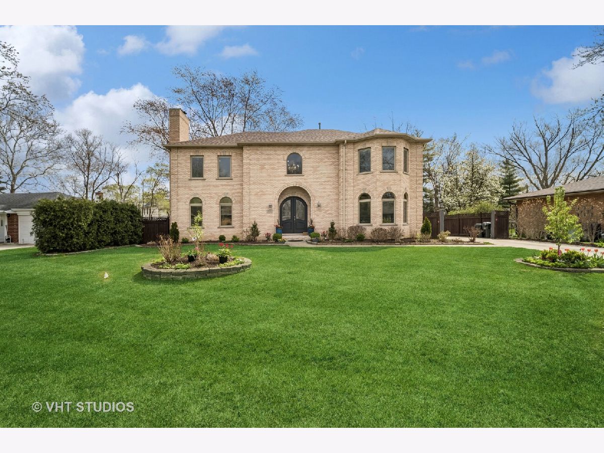 ** MULTIPLE OFFERS RECEIVED -- HIGHEST/BEST 4/22 @10:00 AM ** Welcome to this spacious 6-bedroom, 5 1/2 bath home located on a quiet street in a wonderful Glenview Location! Gorgeous custom-built, all-brick home with expansive floor plan flooded with natural light! Grand 2-story foyer with crystal chandelier that can be lowered for cleaning/bulb changes. So much attention to detail here ~ high ceilings, crown moldings, & Brazillian cherry hardwood floors throughout. Formal living room with wood burning fireplace. Separate formal dining room w/bay windows. 1st floor family room and eat-in kitchen make this the perfect home for entertaining! The gourmet kitchen is a focal point of the home, boasting top-of-the-line stainless steel appliances, custom cabinetry, granite countertops, a center island with seating, loads of cabinets for storage and an eating area which overlooks the backyard, providing a serene spot for enjoying your morning coffee. Main level offers 5th bedroom/office with private full bath plus a powder room. Large laundry room off garage with new washer/dryer (2023) and utility tub. The open floor plan seamlessly connects the living spaces, creating an ideal setting for entertaining and family gatherings. The primary suite is a luxurious retreat, complete with a spa-like ensuite bathroom featuring a soaker-jacuzzi tub, walk-in shower, and dual-sink vanity. A sizable walk-in closet provides plenty of storage for clothing and accessories. Three additional bedrooms and two full baths on the second level. The finished basement offers an extended family living situation with large recreation room w/wood-burning fireplace, gym area, 6th bedroom, full bathroom w/jacuzzi tub and a 2nd kitchen. There are stairs from the basement leading to the 3 car attached garage. Many egress windows for safety. Solid Brick construction with two zone heat and air, whole-house generator, sprinkler system and central vacuum. High ceilings on all 3 levels. Custom Pella windows w/built-in blinds, all solid 6-panel oak doors throughout. Wide fully-fenced, nicely-landscaped lot. Maintenance-free composite deck off kitchen for your alfresco dining. Tear-off roof in 2023. Conveniently located just minutes from top-rated Glenview schools, parks, shopping, and dining options. Just 2 miles to Metra. Enjoy all that Flick Park has to offer ~ just a few blocks away!! Overall, this newer construction home, combines luxury, functionality, and modern design, providing an exceptional living experience in a highly desirable school district!