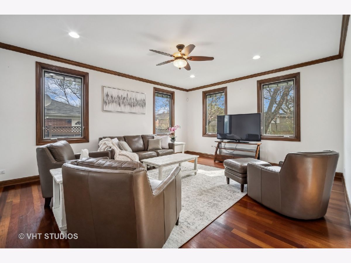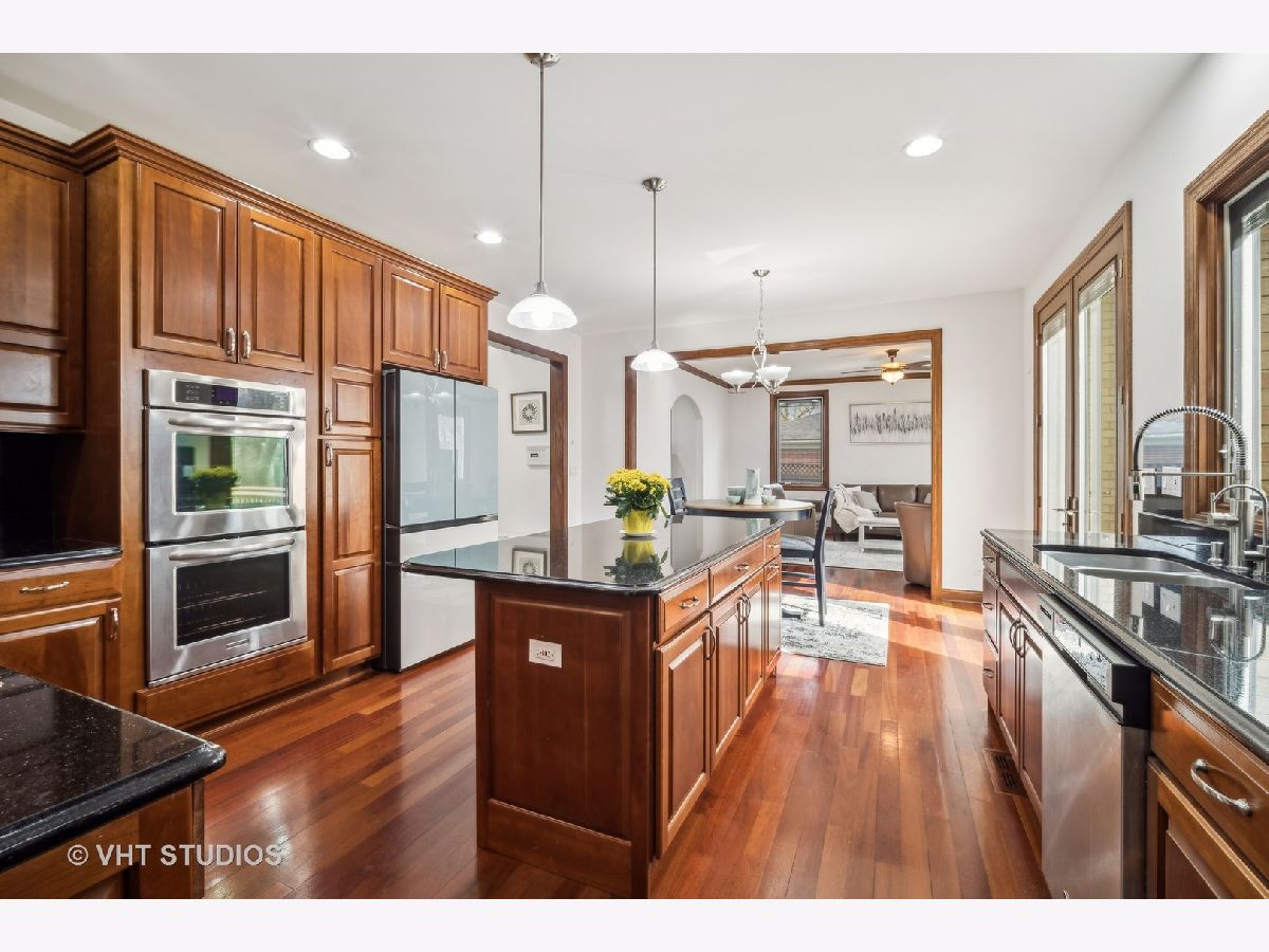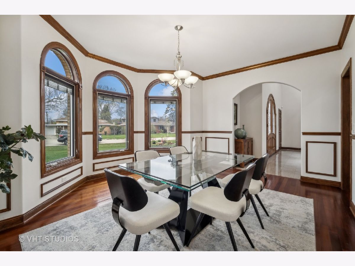 ** MULTIPLE OFFERS RECEIVED -- HIGHEST/BEST 4/22 @10:00 AM ** Welcome to this spacious 6-bedroom, 5 1/2 bath home located on a quiet street in a wonderful Glenview Location! Gorgeous custom-built, all-brick home with expansive floor plan flooded with natural light! Grand 2-story foyer with crystal chandelier that can be lowered for cleaning/bulb changes. So much attention to detail here ~ high ceilings, crown moldings, & Brazillian cherry hardwood floors throughout. Formal living room with wood burning fireplace. Separate formal dining room w/bay windows. 1st floor family room and eat-in kitchen make this the perfect home for entertaining! The gourmet kitchen is a focal point of the home, boasting top-of-the-line stainless steel appliances, custom cabinetry, granite countertops, a center island with seating, loads of cabinets for storage and an eating area which overlooks the backyard, providing a serene spot for enjoying your morning coffee. Main level offers 5th bedroom/office with private full bath plus a powder room. Large laundry room off garage with new washer/dryer (2023) and utility tub. The open floor plan seamlessly connects the living spaces, creating an ideal setting for entertaining and family gatherings. The primary suite is a luxurious retreat, complete with a spa-like ensuite bathroom featuring a soaker-jacuzzi tub, walk-in shower, and dual-sink vanity. A sizable walk-in closet provides plenty of storage for clothing and accessories. Three additional bedrooms and two full baths on the second level. The finished basement offers an extended family living situation with large recreation room w/wood-burning fireplace, gym area, 6th bedroom, full bathroom w/jacuzzi tub and a 2nd kitchen. There are stairs from the basement leading to the 3 car attached garage. Many egress windows for safety. Solid Brick construction with two zone heat and air, whole-house generator, sprinkler system and central vacuum. High ceilings on all 3 levels. Custom Pella windows w/built-in blinds, all solid 6-panel oak doors throughout. Wide fully-fenced, nicely-landscaped lot. Maintenance-free composite deck off kitchen for your alfresco dining. Tear-off roof in 2023. Conveniently located just minutes from top-rated Glenview schools, parks, shopping, and dining options. Just 2 miles to Metra. Enjoy all that Flick Park has to offer ~ just a few blocks away!! Overall, this newer construction home, combines luxury, functionality, and modern design, providing an exceptional living experience in a highly desirable school district!