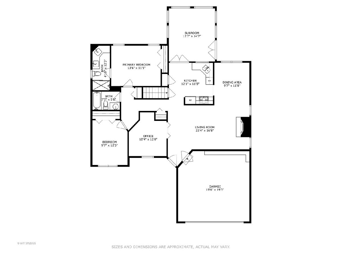 Beautiful move-in ready ranch home in desirable Sparrow Ridge subdivision! Bright and open floor plan w/vaulted ceilings throughout. Large living room/dining room combination w/fireplace. Sunny kitchen w/SS appliances, plenty of cabinet space, tiled flooring and eating area. Huge sun room addition w/vaulted ceilings, skylights, tiled flooring and doors that lead to your private backyard w/brick patio. 1st floor primary bedroom w/hardwood flooring, and updated bath w/newer granite counter tops, double vanity, fixtures and separate shower. Updated hall bath w/granite vanity and updated tile. 3 bedrooms on main level. Finished basement w/4th bedroom (or office) and utility room w/plenty of storage. Fantastic location close to shopping, schools, Cuba Marsh walking trail, and restaurants. Come see!