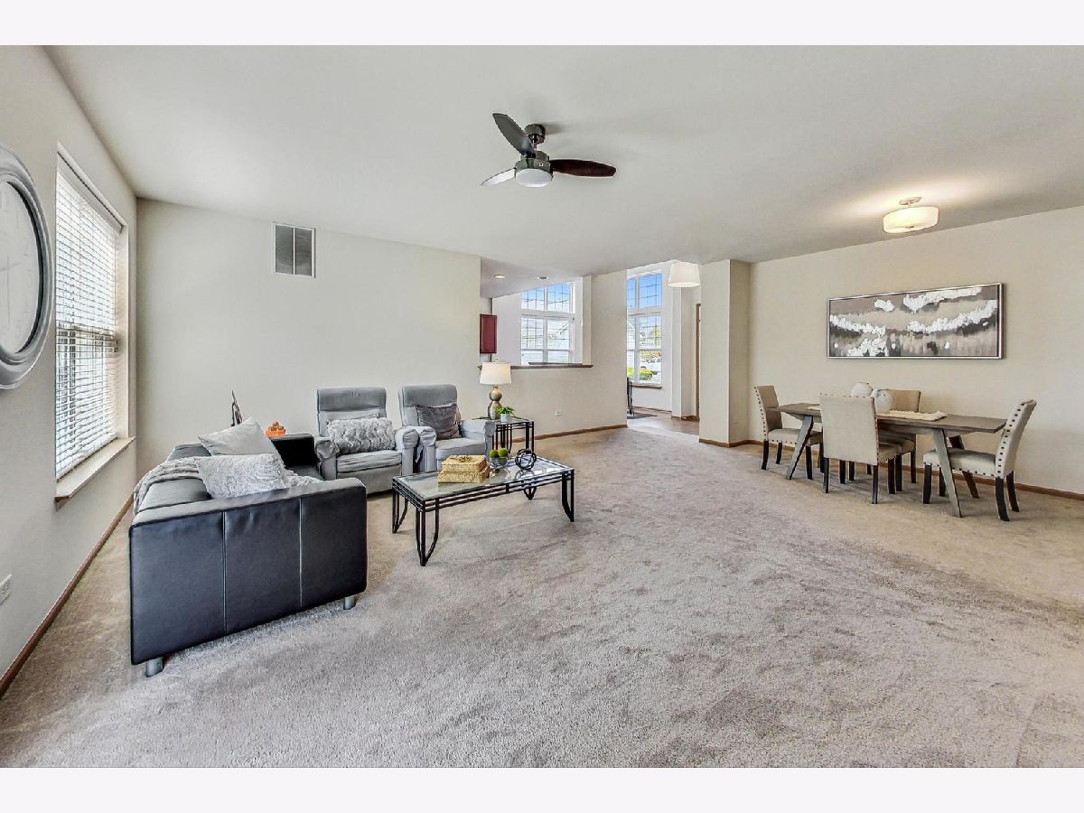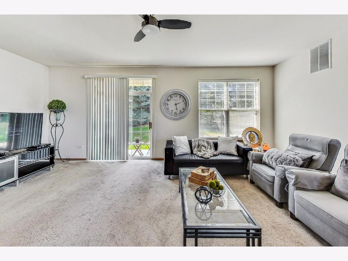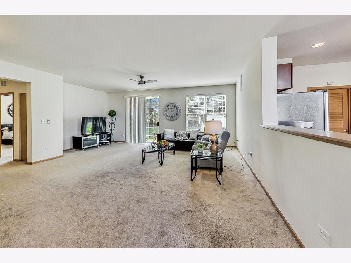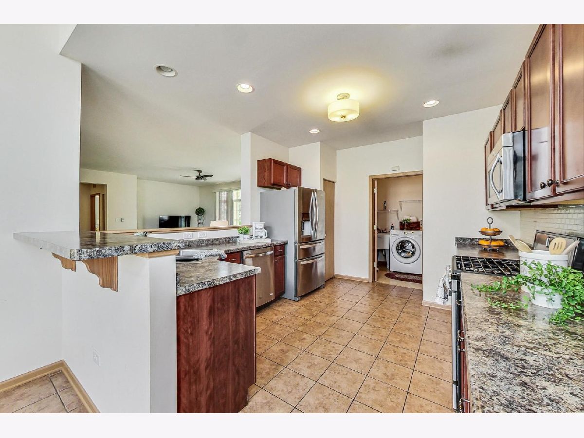 Welcome Home to this Desirable First Floor Ranch in the highly sought after Stonegate West community. This 2 Bedroom, 2 Bath Home offers all of the conveniences and amenities for an Active, Low Maintenance Lifestyle. This open and airy home has Spacious Rooms, an Abundance of Windows and 2 Story Ceilings. The Large Kitchen has 42" Cherry Cabinetry, Newer, Stainless Steel Appliances, Breakfast Bar, Pantry Closet and Recessed Lighting. The Breakfast Room has Stacked Windows and a Two-Story Volume Ceiling. You will Love the Openness of the Living and Dining Room. Great for Entertaining or Relaxing. The Sliding Glass Doors lead out to a Private Patio overlooking the Professional Landscaping and Privacy of the Mature Trees. The Primary Bedroom has a Walk-In Closet and Private Bath with Dual Vanity Sink and Shower. There is also the convenience of a Second Bedroom and Full Bath. The Laundry Room has an Recently Updated Washer & Dryer along with the convenience of a Laundry Sink. All of the Lighting Fixtures, Ceiling Fan and Blinds have recently been Updated. This home is located in the Coveted Stonegate West Community with a Luxury Clubhouse, Pool and Workout Room, just walking distance from this home. It is located within minutes from the Metra Station, I-88 Highway, the Premium Outlet Mall, Route 59 Shopping and Restaurants.