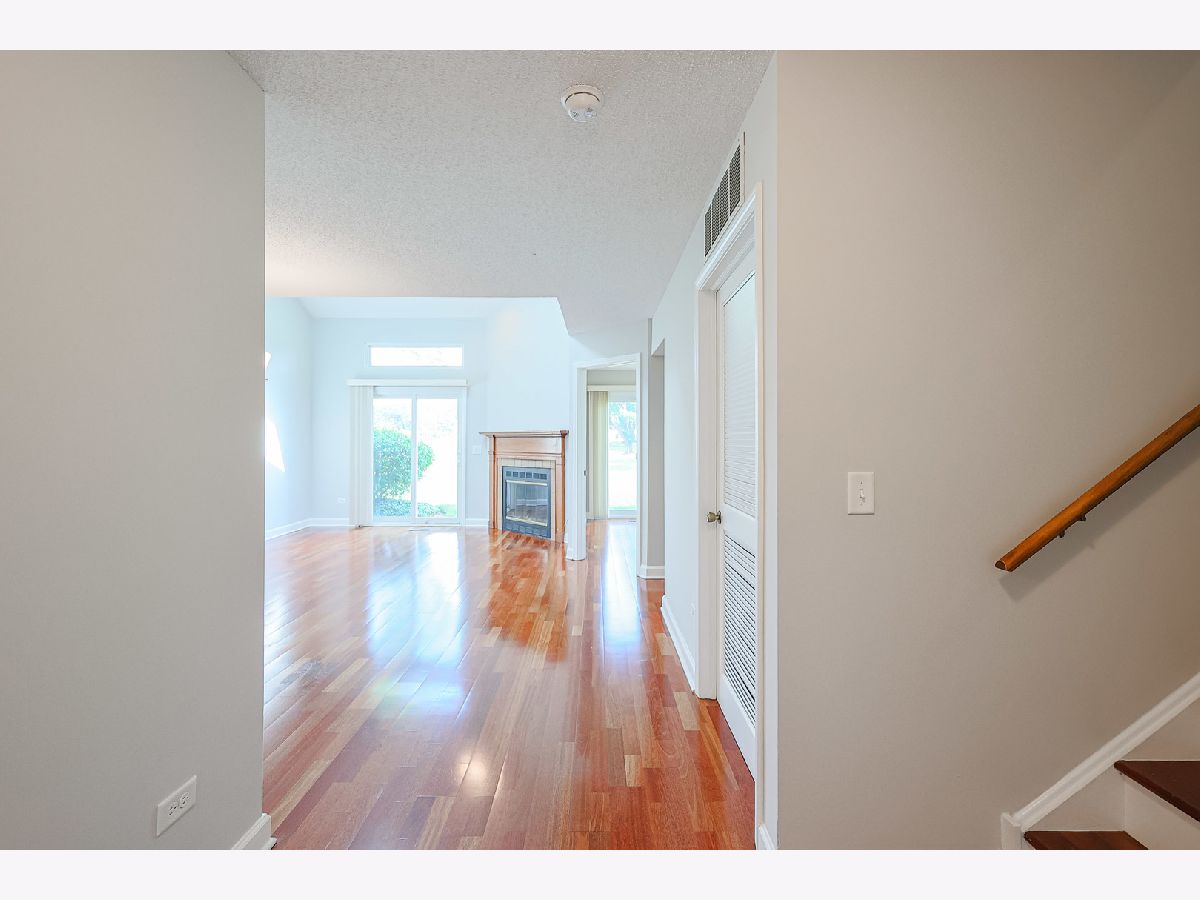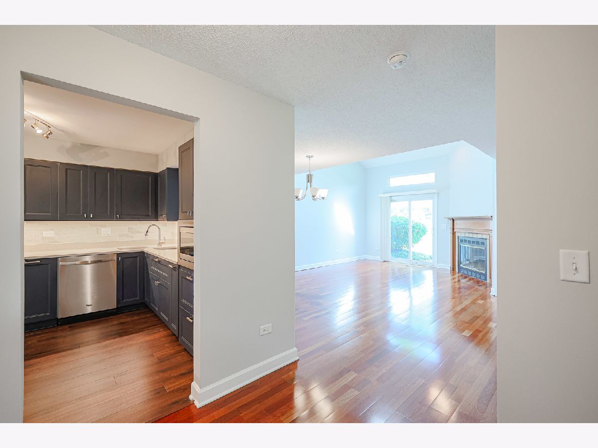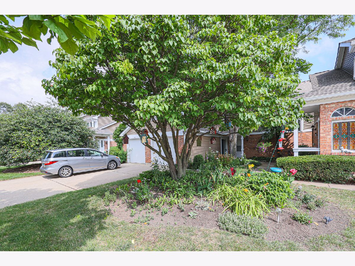 Beautiful Townhome in Prime Buffalo Grove Location. Welcome to this charming and uniquely designed townhome nestled in a highly desirable location of Buffalo Grove. The inviting floorplan features a bright and airy living room with a cozy fireplace, vaulted ceilings, and skylights that fill the space with natural light. Adjacent to the living room is a dedicated dining area-perfect for entertaining. The main level includes a spacious first-floor bedroom with direct access to a private walk-out patio, a convenient half bath, and a laundry/utility room with generous storage space. The eat-in kitchen is well-appointed with stainless steel appliances, ample cabinetry, and upgraded kitchen cabinets with convenient pull-out drawers, combining style and functionality. Upstairs, the primary suite offers access to a private balcony overlooking a lush green expanse-an ideal retreat. The second upstairs bedroom also includes its own en-suite bathroom, providing comfort and privacy. This unit boasts a lovely courtyard in the front, perfect for gardening enthusiasts to create their own outdoor oasis. Located within the award-winning Stevenson High School District, this home also backs to a spectacular and expansive park-perfect for recreation and relaxation. Don't miss this wonderful opportunity to live in a sought-after community with exceptional features and prime location.