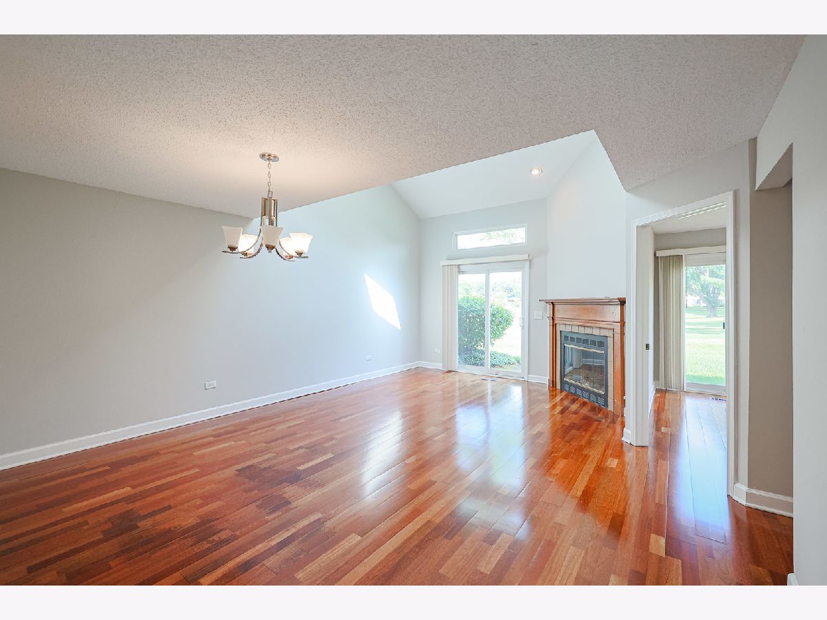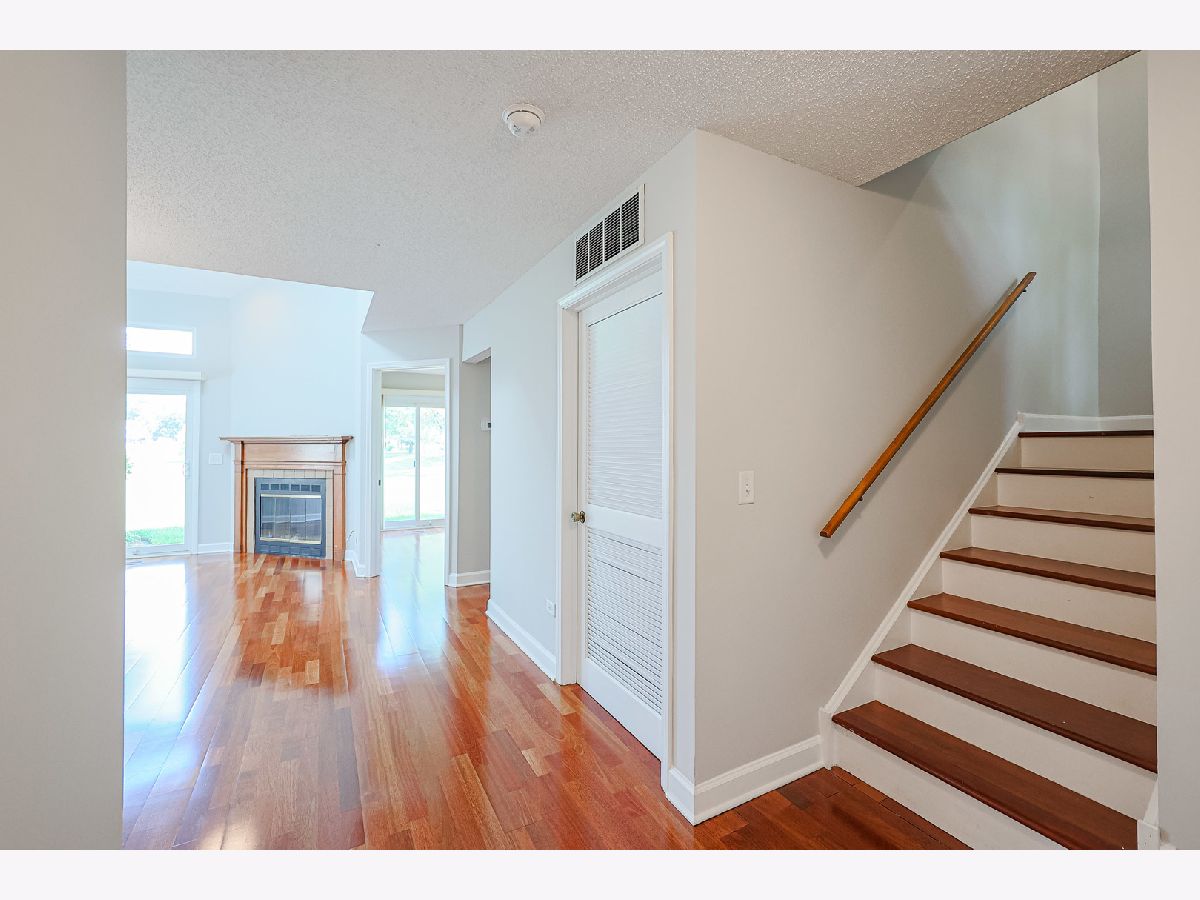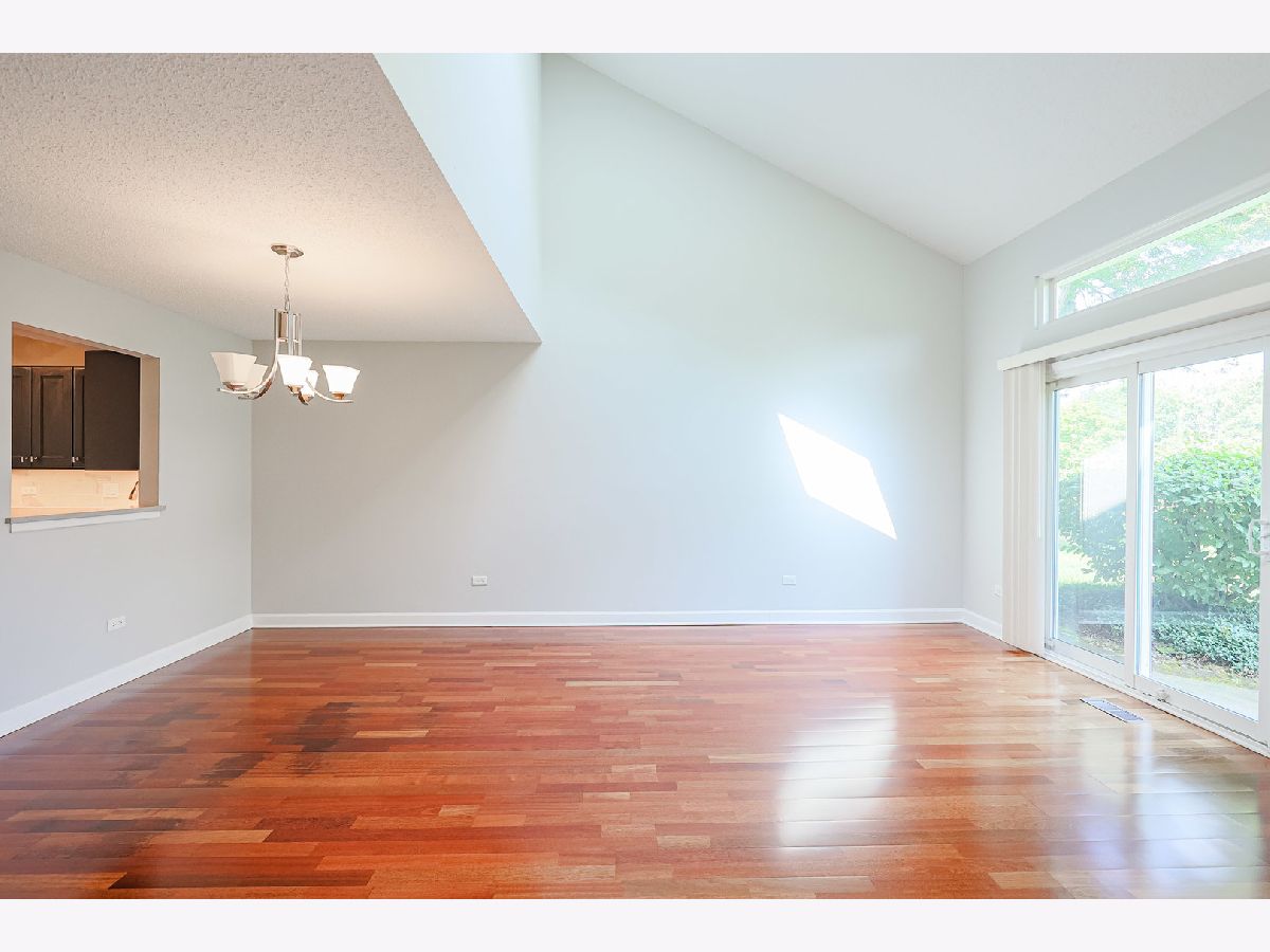 Beautiful Townhome in Prime Buffalo Grove Location. Welcome to this charming and uniquely designed townhome nestled in a highly desirable location of Buffalo Grove. The inviting floorplan features a bright and airy living room with a cozy fireplace, vaulted ceilings, and skylights that fill the space with natural light. Adjacent to the living room is a dedicated dining area-perfect for entertaining. The main level includes a spacious first-floor bedroom with direct access to a private walk-out patio, a convenient half bath, and a laundry/utility room with generous storage space. The eat-in kitchen is well-appointed with stainless steel appliances, ample cabinetry, and upgraded kitchen cabinets with convenient pull-out drawers, combining style and functionality. Upstairs, the primary suite offers access to a private balcony overlooking a lush green expanse-an ideal retreat. The second upstairs bedroom also includes its own en-suite bathroom, providing comfort and privacy. This unit boasts a lovely courtyard in the front, perfect for gardening enthusiasts to create their own outdoor oasis. Located within the award-winning Stevenson High School District, this home also backs to a spectacular and expansive park-perfect for recreation and relaxation. Don't miss this wonderful opportunity to live in a sought-after community with exceptional features and prime location.