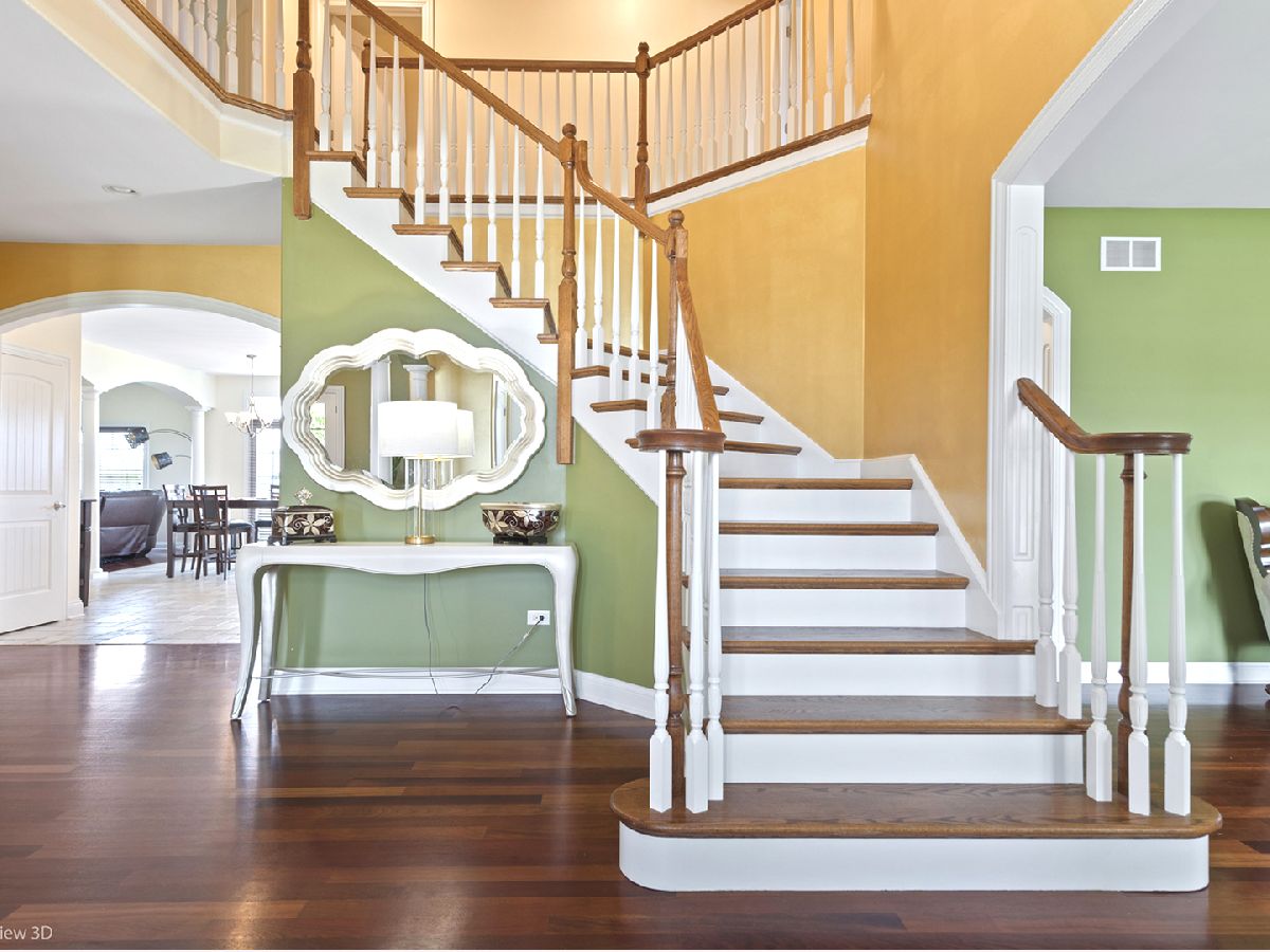 Stunning Custom Home in Five Oaks of Frankfort - Elegance Meets Comfort Located in the highly sought-after Five Oaks of Frankfort, this beautifully designed custom home offers timeless elegance, exceptional craftsmanship, and serene pond views. Situated on an expansive, meticulously landscaped lot with a wrought iron fenced yard, this home is perfect for those seeking space, luxury, and functionality. Inside, you'll find 5 spacious bedrooms, each with its own en-suite bathroom and walk-in closet, plus a total of 3.5 bathrooms. A main-level bedroom provides ideal flexibility for guests or related living. The open-concept gourmet island kitchen features a walk-in pantry , sub-zero refrigeration, double oven, just to detail a few of the many joyfully stocked kitchen amenities. The space flows seamlessly into the sun-filled great room with vaulted ceilings and a fireplace-perfect for entertaining. A formal dining room and formal living room, along with two grand staircases, add to the home's sophisticated layout. The private master suite offers a luxurious retreat with a spa-like en-suite bath and closets galore. A bonus room on the second floor provides extra space for an office, playroom, or media area. Convenient second-floor laundry adds to the home's thoughtful design. The full English basement includes look-out windows, a fireplace, roughed-in plumbing for a future bathroom, and is prepped for a radiant heat system, the 3+ car side-mounted garage, with roughed radiant heat! Professionally landscaped fenced yard perfect for a pool! Inground sprinklers! Maintenance free deck! Front porch with lake view! Fluted 2 panel doors! Dual furnace and a/c.