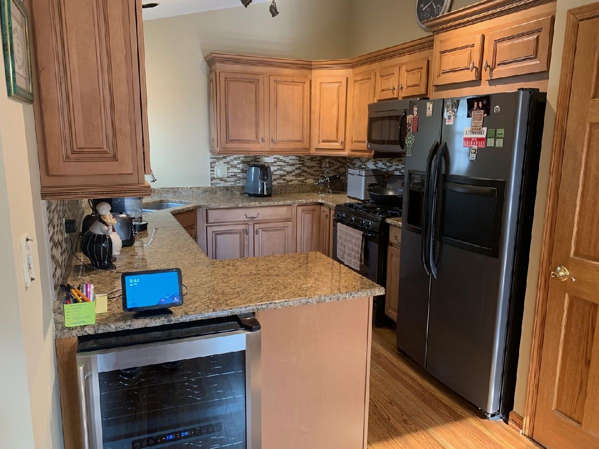 Beautiful townhouse minutes from Downtown Mount Prospect! Take the Metra downtown and come home to this bright 2 bedroom, 1 bath with a wood burning fireplace featuring a drystacked travertine surround and hardwood floors throughout. The large updated bathroom offers a separate shower and modern finishes. The kitchen has newer cabinets, granite counter tops with a stone tile back splash, along with sleek GE appliances and a wine cooler! Enjoy an evening on the balcony with plenty of room to grill! New features include water heater and furnace (within the last 5 years), windows, plantation shutters, and sliding patio door (within the last year)