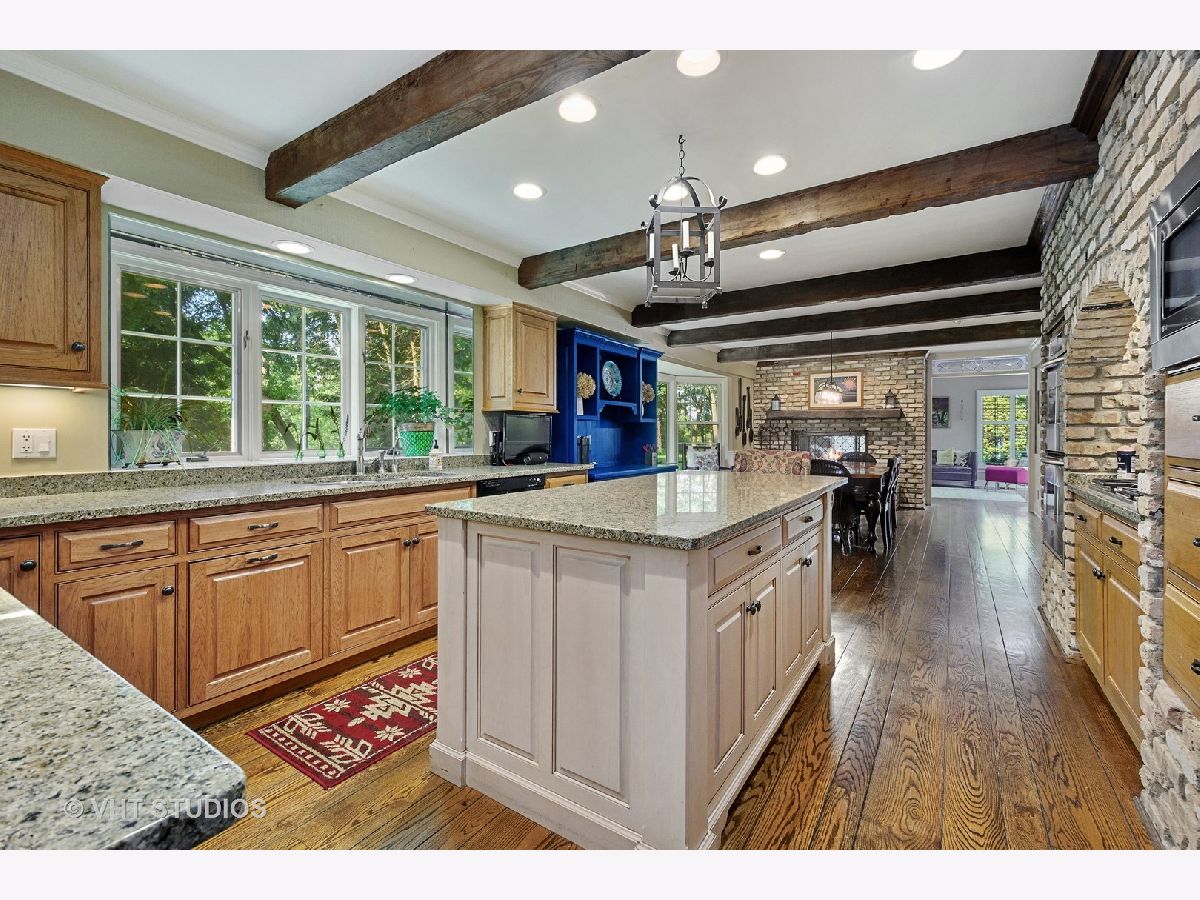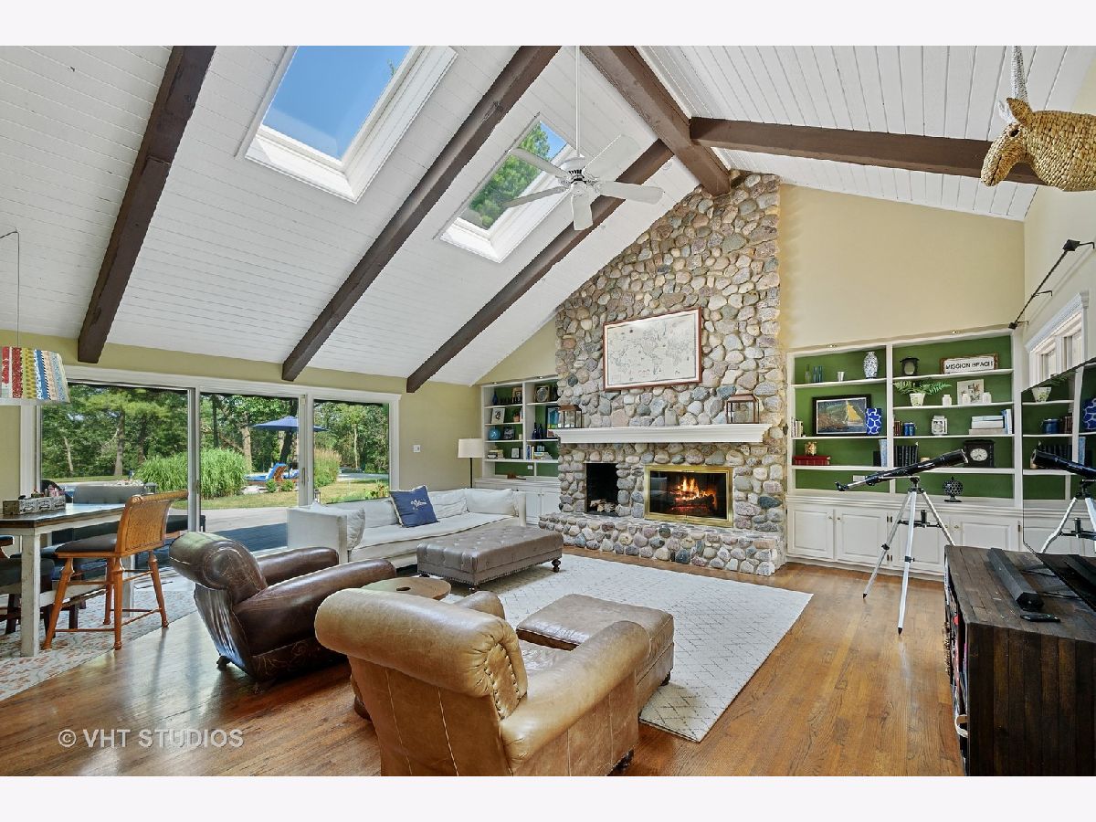 A nature lover's dream! Enjoy a private & peaceful setting on this absolutely breathtaking property. Plenty of room for your future CHICKEN COOP!! This home, set on nearly 3 rolling, wooded acres has been remodeled and updated so beautifully and appropriately top to bottom with a touch of elegance and a feel of endless space! Quarter sawn inset kitchen cabinets, granite countertops, stainless steel appliances, breakfast bar, barn wood beams, reclaimed old Chicago brick accents and eating area with fireplace help to make this space an entertainers dream and perfect for family fun and celebrations. This distinctive home oozes charm at every turn from the gorgeous 1st floor library which is perfect for today's much needed private work from home trend, to the two story great room with custom fireplace and wet bar. Vaulted ceilings, custom built-ins, large rooms, hardwood floors and Plantation Shutters help to make this one stand out! This home exudes quality, starting with the copper gutters, downspouts & cedar roof. Private primary bedroom features a spa-like bathroom where you can relax in luxury with a steam shower, sauna, jetted tub, double sinks and his and hers walk in closets! The newly remodeled full, finished lower level has been done to perfection with a fun rec room with bar, bedroom and full bath with another steam shower. The outdoor spaces include a gorgeous patio, in-ground pool, hot tub and outdoor shower ! The fire pit and giant wood storage rack ensure you'll be able to store enough wood for the cool fall evenings. The 3.5 car side load garage has a permanent staircase up to 2nd floor storage space. This home is in pristine condition and a short walk to Honey Lake! HVAC 6yrs old, new electrical panel, sump pump and new pool heater, vacuum and filter. This one checks all the boxes!