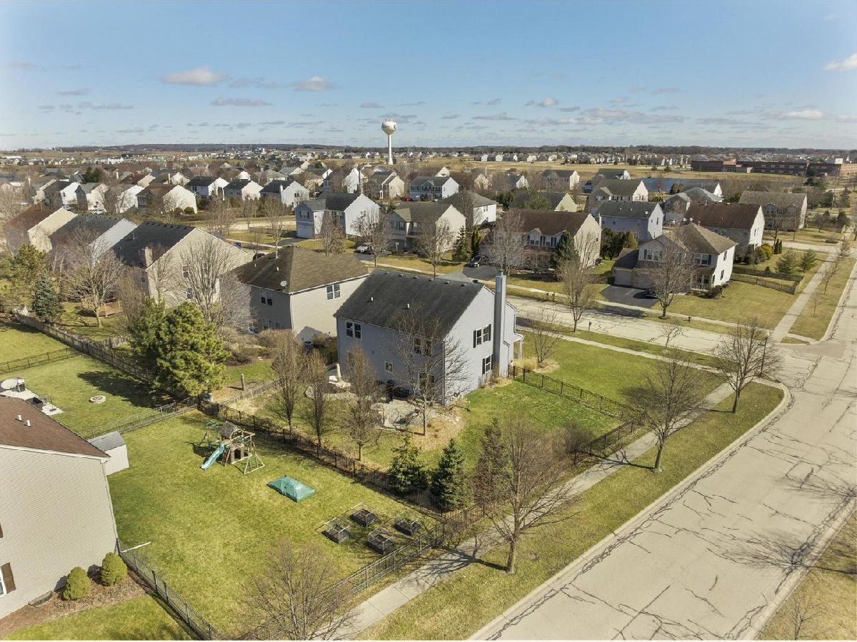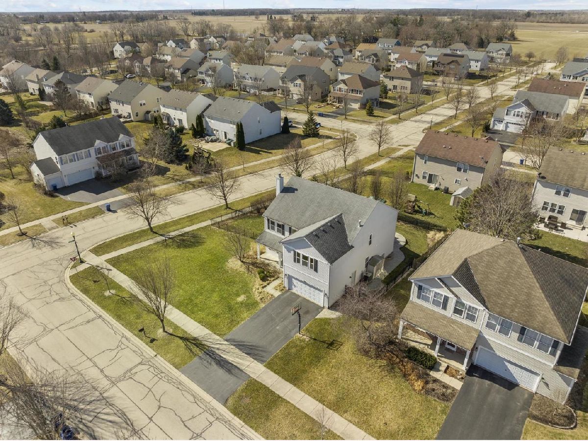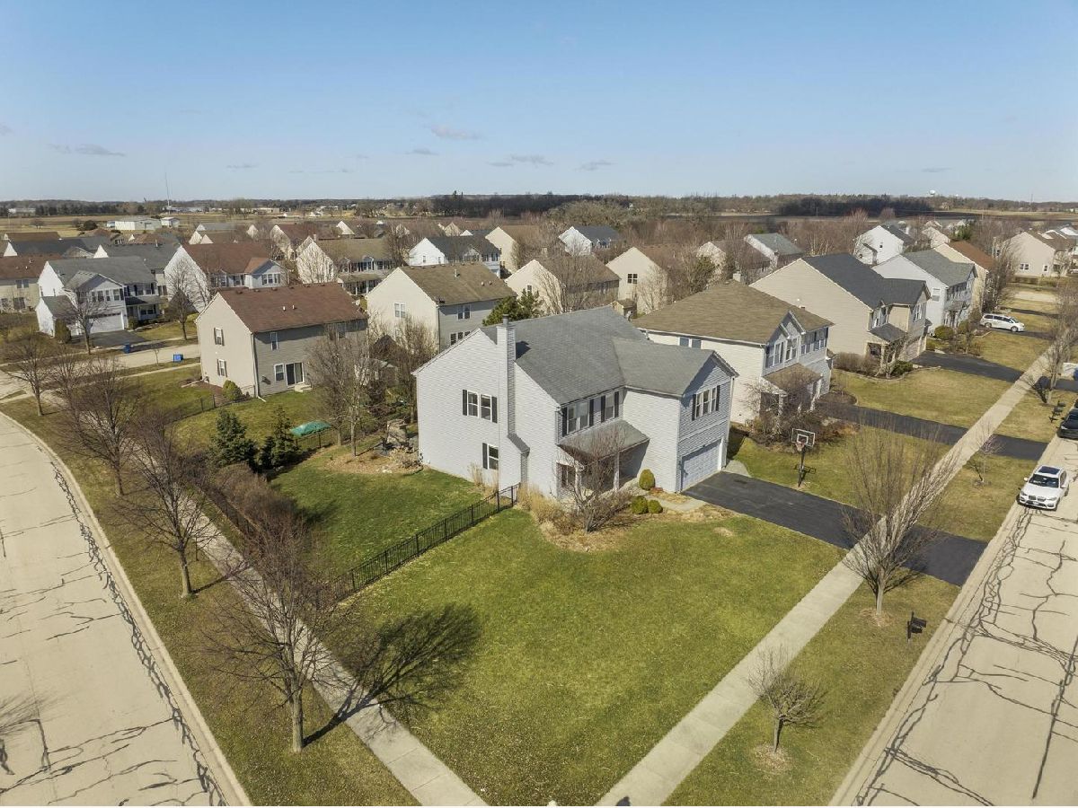 With nearly 3,000 square feet on a 1/4 acre fenced corner lot this home can't be missed! 5 bedrooms, one conveniently located on the first floor, accompanied by 3 full bathrooms and a spacious loft area. When you pull up its charming front porch and well-maintained landscaping immediately catch the eye. Inside, an open-concept living space welcomes you, adorned with elegant crown molding throughout. The family room offers a cozy retreat with its fireplace featuring a tile surround, while the chef-inspired kitchen delights with full-height cabinets, corian countertops, a large island, and modern appliances. The first floor also includes a full bathroom and a bedroom, alongside a sprawling mud/laundry room with ample folding space and storage. Upstairs, a comfortable loft area awaits, a perfect spot for relaxing or a get away play area for the kids. The primary bedroom is flooded with natural light, with an ensuite bathroom featuring new LVP flooring, dual vanity areas, soaking tub, a separate shower, and a custom closet. Three more additional bedrooms on this level with generous closet space as well. The basement offers potential for customization with a bathroom rough-in, serving as an ideal space for future plans or extensive storage. Outside, the home features a beautiful curved patio and a fully fenced yard on a corner lot. Located in the sought-after neighborhood of Blackberry Creek, residents enjoy the convenience of an onsite elementary school, parks, extensive walking trails, ponds and close proximity to the metro train and interstate access. Enjoy the quaint little town of Elburn or head a few miles east to all the bustling Fox Valley corridor has to offer!