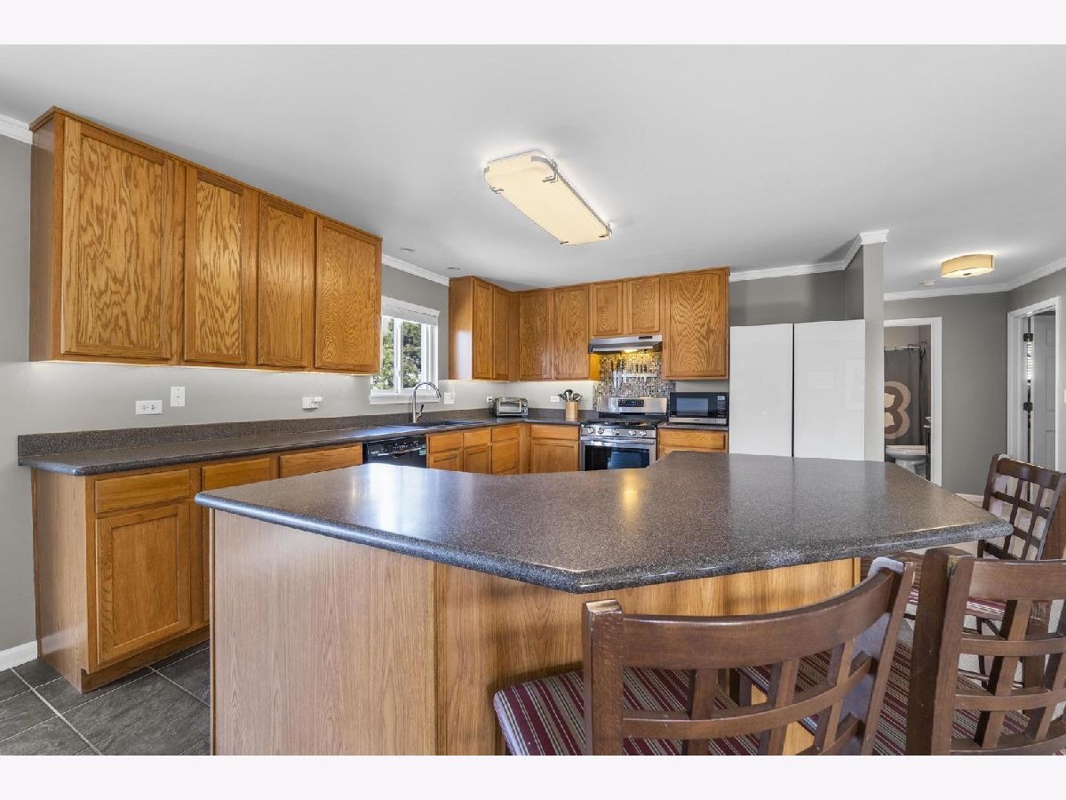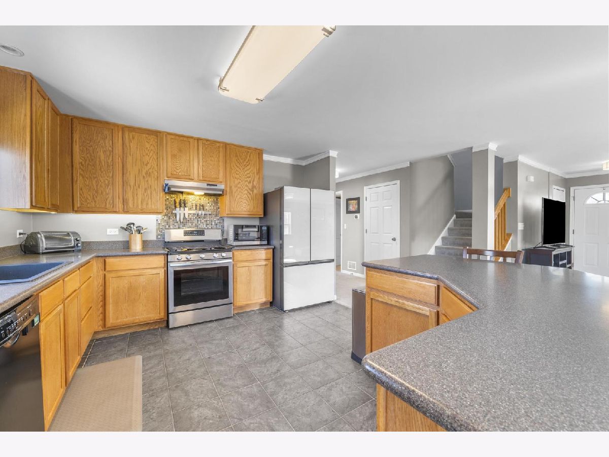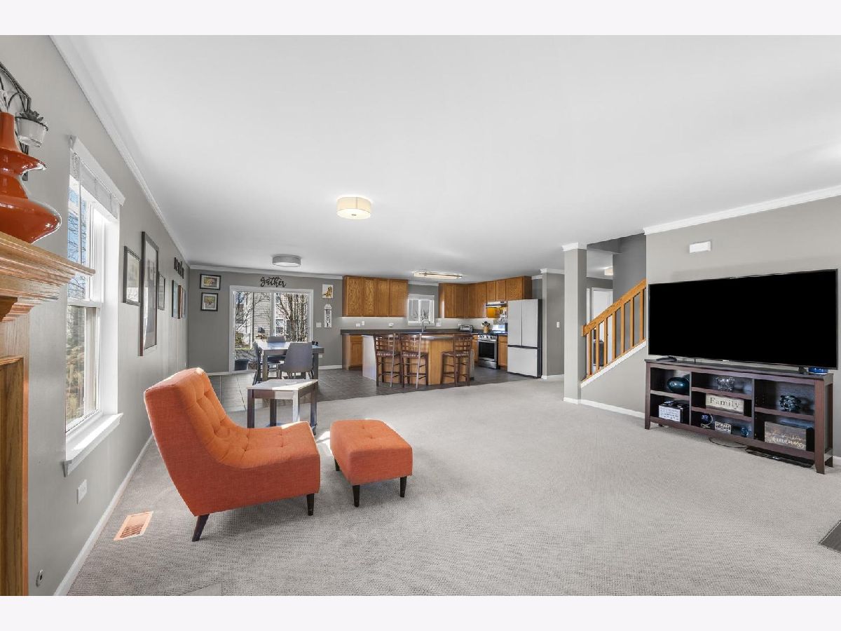 With nearly 3,000 square feet on a 1/4 acre fenced corner lot this home can't be missed! 5 bedrooms, one conveniently located on the first floor, accompanied by 3 full bathrooms and a spacious loft area. When you pull up its charming front porch and well-maintained landscaping immediately catch the eye. Inside, an open-concept living space welcomes you, adorned with elegant crown molding throughout. The family room offers a cozy retreat with its fireplace featuring a tile surround, while the chef-inspired kitchen delights with full-height cabinets, corian countertops, a large island, and modern appliances. The first floor also includes a full bathroom and a bedroom, alongside a sprawling mud/laundry room with ample folding space and storage. Upstairs, a comfortable loft area awaits, a perfect spot for relaxing or a get away play area for the kids. The primary bedroom is flooded with natural light, with an ensuite bathroom featuring new LVP flooring, dual vanity areas, soaking tub, a separate shower, and a custom closet. Three more additional bedrooms on this level with generous closet space as well. The basement offers potential for customization with a bathroom rough-in, serving as an ideal space for future plans or extensive storage. Outside, the home features a beautiful curved patio and a fully fenced yard on a corner lot. Located in the sought-after neighborhood of Blackberry Creek, residents enjoy the convenience of an onsite elementary school, parks, extensive walking trails, ponds and close proximity to the metro train and interstate access. Enjoy the quaint little town of Elburn or head a few miles east to all the bustling Fox Valley corridor has to offer!