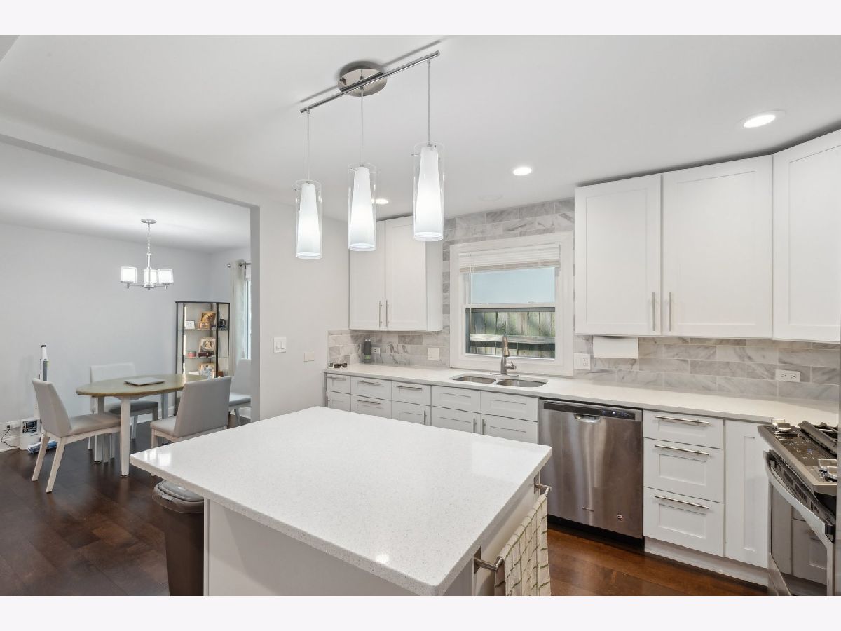 Click the virtual tour link for an immersive 3D walkthrough of this move in ready, ranch with laundry on the main floor. Excellent opportunity for a move in ready home in Evanston with a primary bathroom. Beautifully rehabbed home with espresso floors throughout, stainless steel appliances, white cabinets, solid surface counters and a kitchen island with seating for 2-3. 3 good sized bedrooms with a separate laundry room and open concept living/dining/kitchen gives plenty of space and functionality throughout the space. Spacious primary suite with walk-in closet, gorgeous bathroom with double vanity and an enormous walk in shower. Huge fenced-in back yard, perfect for hosting gatherings or letting the dogs roam free. New 2 car garage off alley. Generous size mudroom/laundry room is located right off the front foyer. Nest thermostat installed. Electrical, plumbing and HVAC including furnace and a/c unit all updated in 2018. Excellent value in desirable Evanston