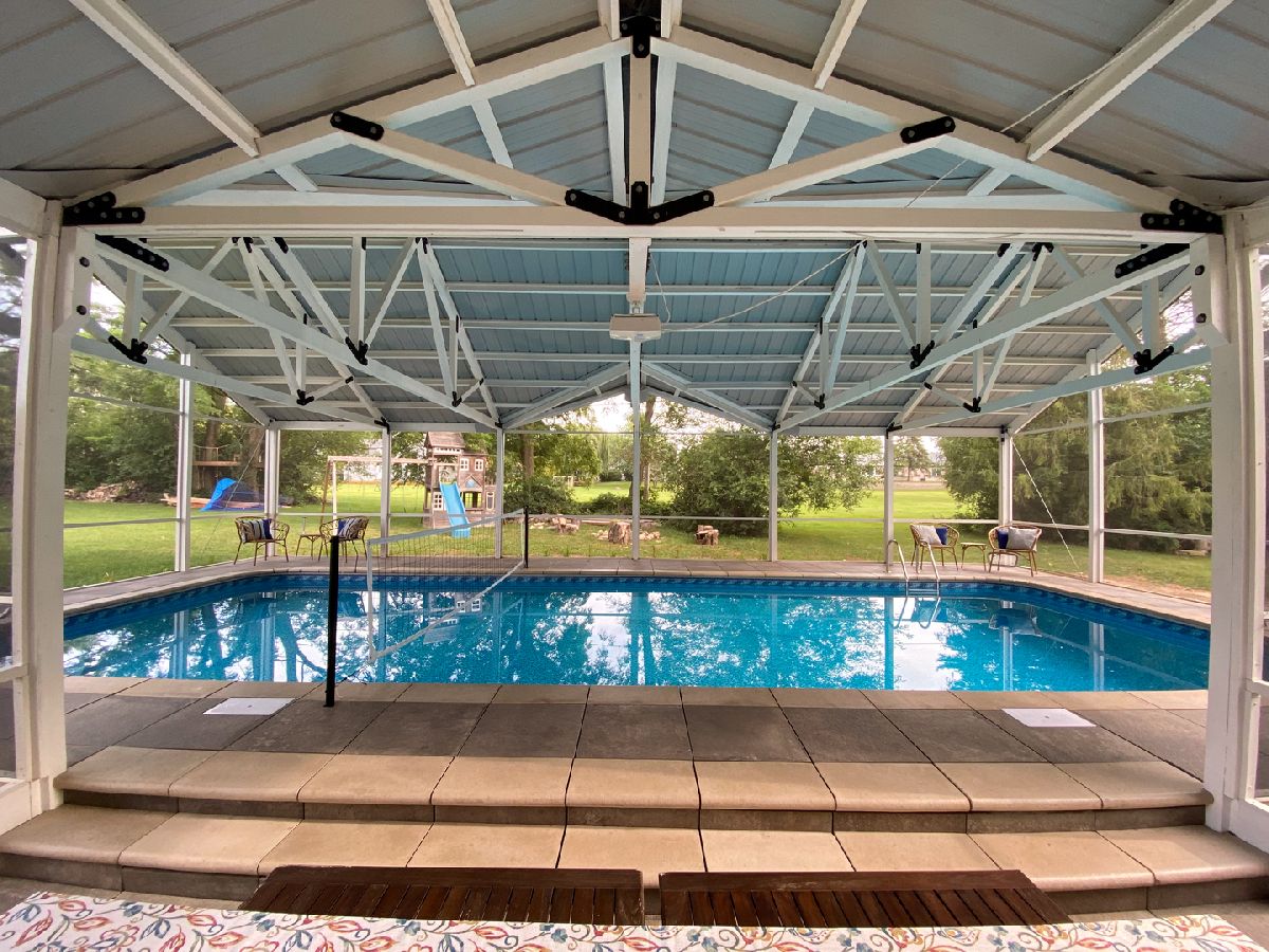 Welcome to this stunning custom-built home by William Ryan Homes (Custom Collections North), completed in 2014. Nestled on a beautiful 1/2-acre lot, professionally landscaped by Pugsley & La Haie, this residence offers luxury, comfort, and convenience with no HOA. With 4,176 SF across the first and second floors, plus an additional 1,200 SF of finished basement space featuring 9-foot ceilings and 697 SF of unfinished storage, there's no shortage of space for both relaxation and entertainment. The heart of the home is the gourmet kitchen, featuring elegant Quartz countertops, stainless steel appliances including a double oven, 42-inch custom cabinets, a butler's pantry, and a large walk-in pantry. Throughout the home, you'll find brand-new luxury vinyl plank flooring, adding both durability and modern style. Two fireplaces, offering both wood-burning and natural gas options, create cozy spaces for family gatherings or quiet evenings. The windows are upgraded Anderson 200 Series wood/vinyl models with full casings, ensuring energy efficiency and timeless beauty. Entertainment options are endless in this home. The professionally designed home theater features three tiers of leather recliners, bar seating, a built-in microwave and refrigerator, and a massive 172-inch screen. With a 10-foot ceiling, professional acoustic treatments, and fully calibrated audio and video equipment included, it's the ultimate movie-watching experience. Through the two sets of French doors in the family room, you'll find a 16' x 40' heated pool enclosed within a 1,644-square-foot structure, complete with an outdoor theater and surround sound system. Car enthusiasts will appreciate the expansive 31/2-car garage, insulated with a 220v heater for cold-weather projects, and a built-in engine hoist. The enormous concrete driveway offers space to park more than 15 vehicles, making it ideal for hosting events or accommodating guests. Living in the Lake Zurich Heights neighborhood offers exclusive access to the West Lake Club. Membership includes entry to a private beach on Lake Zurich, storage space for your kayak or canoe, a boat launch, and the opportunity to rent a dock slip for your boat. The property also backs up to the Zurites Park, with a renovated playground and the practice field for the Lake Zurich Flames football program. The location provides easy access to Paulus Park, where residents can enjoy the 4th of July Fireworks, a weekly Farmers Market, the annual Taste of the Towns festival, and seasonal events like Jack O'Lantern World. Families will appreciate being part of the highly regarded Lake Zurich District 95 school system, known for its exemplary academic programs. This meticulously maintained property offers unmatched value in an unbeatable location. With its combination of modern amenities, spacious living areas, and exclusive access to lakeside activities, this home provides the ultimate blend of luxury and lifestyle. Schedule your private showing today-this exceptional home won't be available for long!