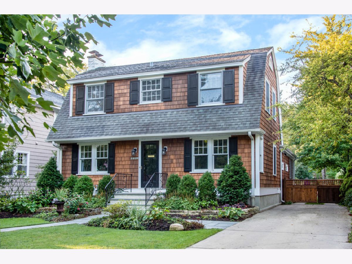 Cedar Shake Dutch colonial in coveted Crow Island school neighborhood. The front walk has recently been redone with bluestone/limestone hardscape and beautiful plantings that are lush in all seasons. Top of the line Marvin windows were used throughout to update and expand this home. The sunny living room has hardwood floors and a wood-burning fireplace that flows easily into a home office with built-ins and shelving. The dining room is formal with a butler pantry that has decorative glass doors and spacious storage providing a convenient buffet counter perfect for entertaining. All white kitchen with newer stainless appliances is a true cooks kitchen, extensive counter space, cabinetry, and bar height counter. The family room has a wood-burning fireplace, cottage-style windows, and cabinetry with loads of storage. French doors and sidelight windows surround the family room and eating area. The mudroom is off the back entry and along the driveway for easy access. The living spaces open to the back deck and bluestone patio. Gorgeous deep back lawn has been meticulously landscaped with a gardener's eye. Second-floor owners suite with walk-in closet, glassed door shower, tub with tile surround, and marble vanity. Dreamy and spacious with seating area and deck overlooking the backyard. Three family bedrooms are light-filled and airy, the hall bath makes it complete. The finished dry basement, for the last 26 years, is detailed with wainscot and new powder room, office & laundry alongside utility area. 3 car garage with attic storage and basketball court. The owner installed Solar panels to offset the electrical cost. Extensive updates!