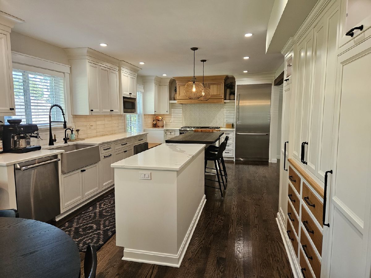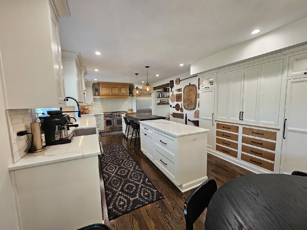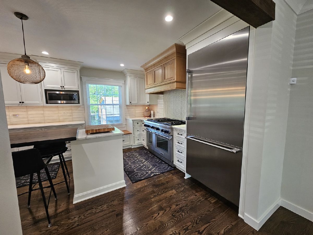 Nestled in a serene cul-de-sac, this private oasis is a must-see gem. Impeccably updated and modernized, it offers the perfect blend of comfort and sophistication. Key Features include: Gourmet Kitchen - The custom-built kitchen boasts quartz countertops, high-end Thermador appliances (including a six-burner, dual-oven professional stove), and ample custom cabinetry. Enjoy the convenience of a warming drawer and instant hot water. Inviting Family Room: Entertain in style with a custom wet bar, built-in beverage refrigerator, elegant cabinets and gas fireplace. Luxurious Bathrooms: All bathrooms have been thoughtfully updated, with the primary bathroom resembling a spa retreat. Stunning Hardwood Flooring: New hardwood floors throughout, complemented by fresh trim and wainscoting. Elegant Lighting: Every room shines with brand-new lighting fixtures. Peace of Mind: Major upgrades include newer siding, HVAC system, and a Generac whole-house generator. The roof was replaced in 2017. Outdoor Bliss: Step onto the newer concrete patio with a built-in fire pit, explore the walkway, and admire the front porch. Unfinished basement has roughed in plumbing for a future bathroom.