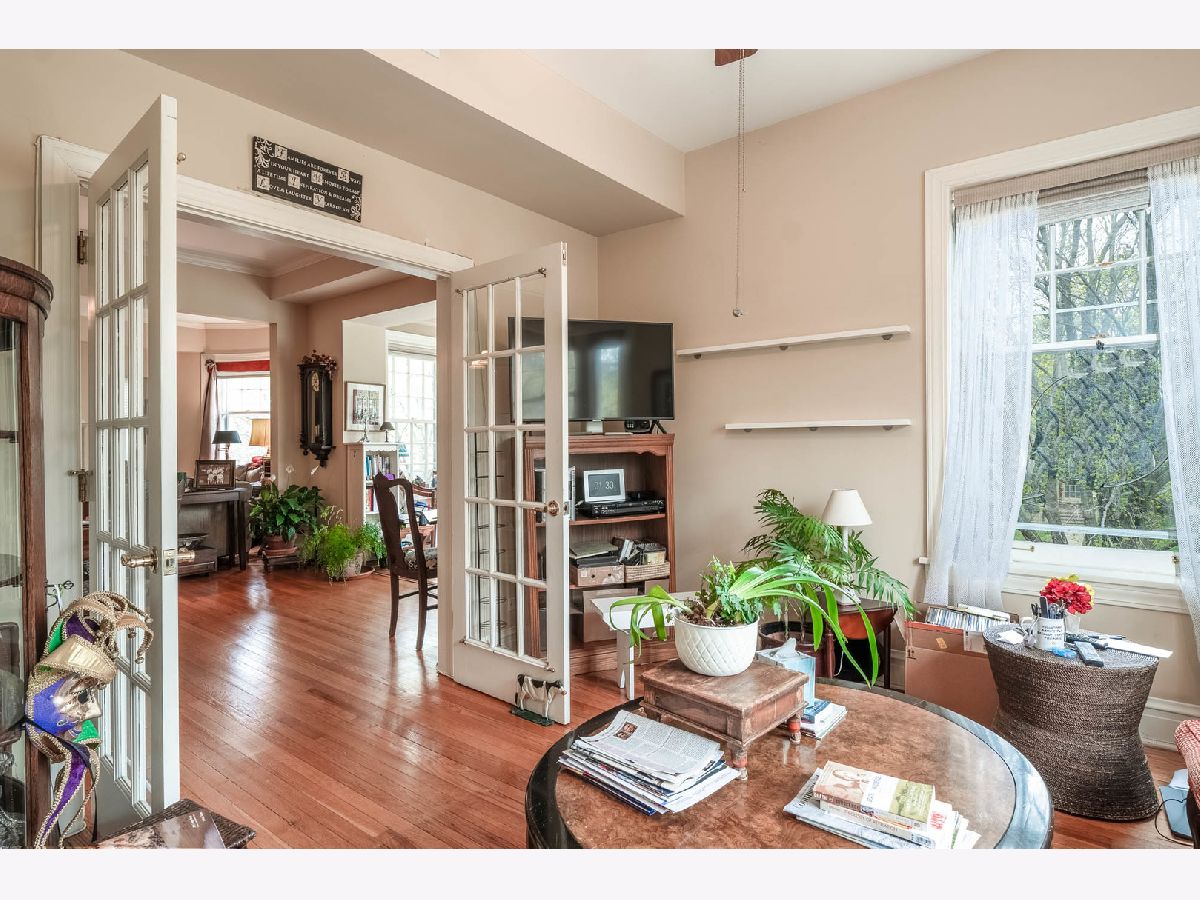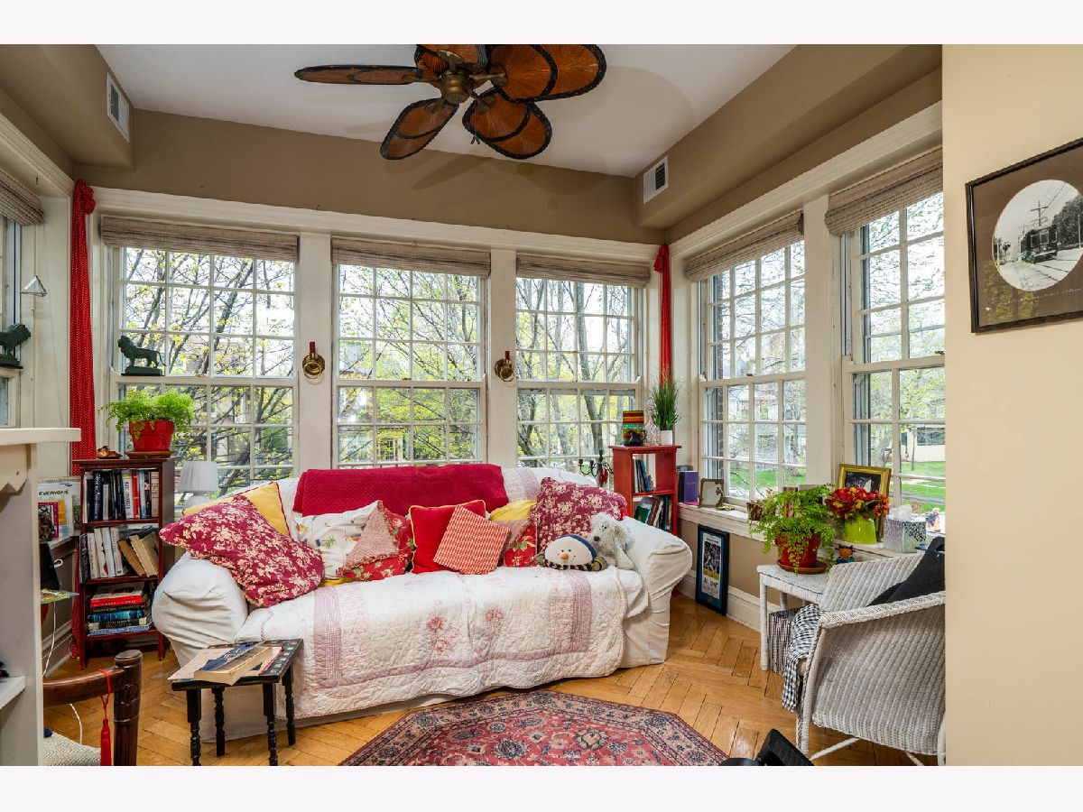 Prime corner vintage beauty with a fantastic floor plan! This condo lives like a single-family home featuring two fireplaces, a cozy front office, a to-die-for sun porch surrounded by windows and trees, a handsome living room that flows into a large dining area, and a French door den/3rd bedroom beyond. There are so many rooms to explore from the minute one steps into the space. The large kitchen has a built-in counter with space for seating, stainless steel appliances, granite counters, and a back door that leads to a large private deck with room for a grill, table, and chairs. Enjoy the comfort of an individual gas forced air furnace/AC, and an in-unit washer and dryer. A fantastic location! The Hamilton Club condos are surrounded by lovely single-family homes and are close to shopping, restaurants, the Metra, CTA, and the lake!