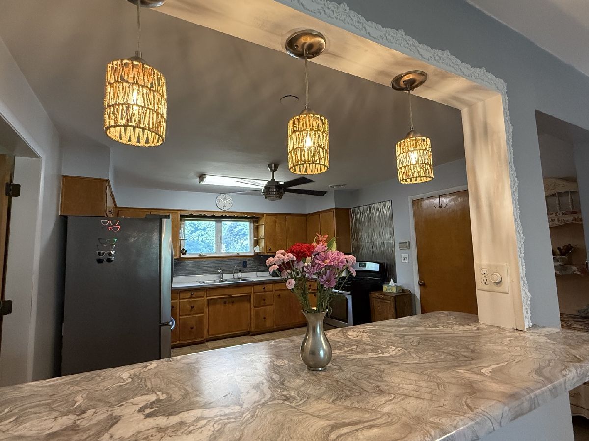 Welcome to this charming ranch-style home in West Kankakee, just a short stroll from Small Memorial Park. With its enchanting architectural front door and skeleton key, this solid residence exudes character. Spanning 1,263 square feet, the layout feels surprisingly spacious, featuring three bedrooms-one currently utilized as a den, offering versatility for your needs. Each bedroom boasts cedar-lined closets, enhancing both storage and appeal. You'll appreciate the original hardwood flooring throughout, with carpet in the main bedroom. The bathroom features a convenient walk-in shower and built-in cabinets. The eat-in kitchen is equipped with an abundance of cabinetry, a glass backsplash, and stainless steel appliances. Enjoy the enclosed patio, or take the festivities outdoors to the spacious fenced backyard, complete with mature trees, a raised garden, and a handy storage shed. Parking is a breeze with an attached garage, a concrete driveway, and an additional side apron. Ceiling recently freshly painted. Vinyl windows and electrical improvements have already all been completed. Attic with pull down stairs. Don't miss the opportunity to make it your own!